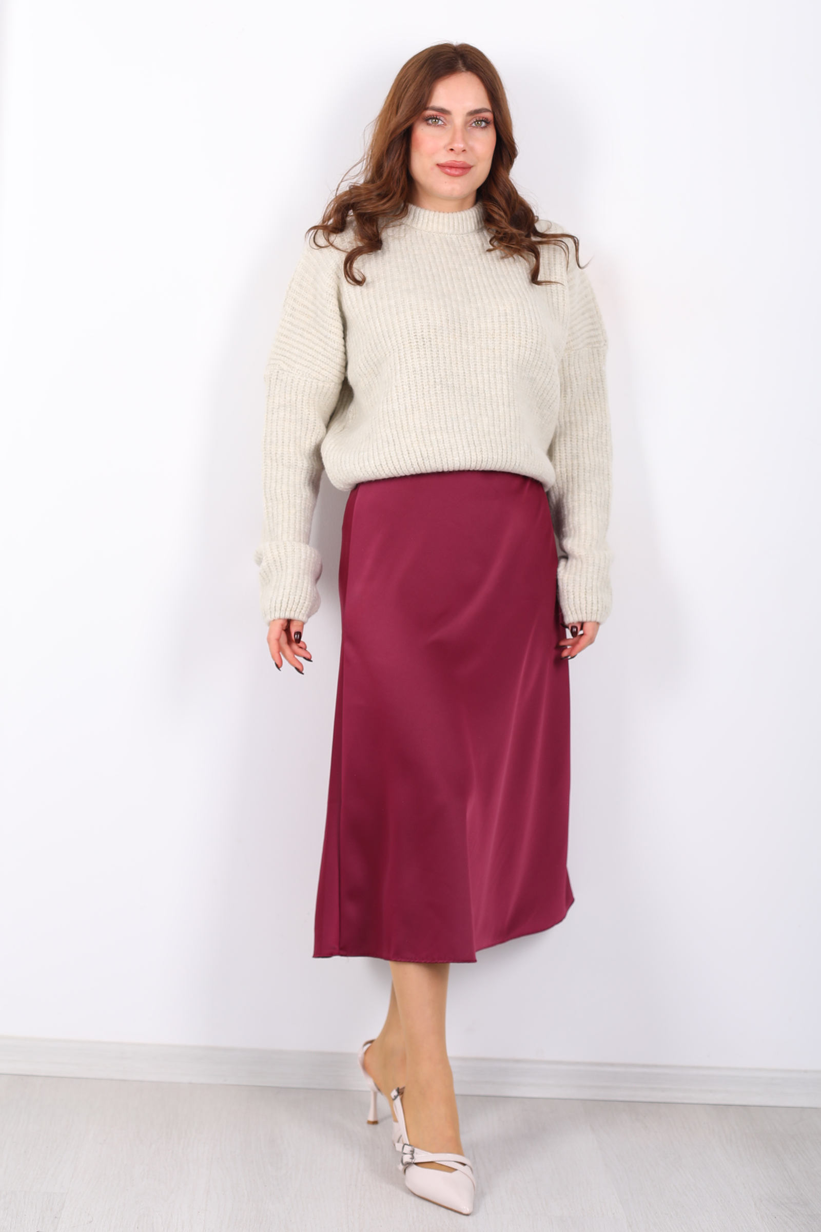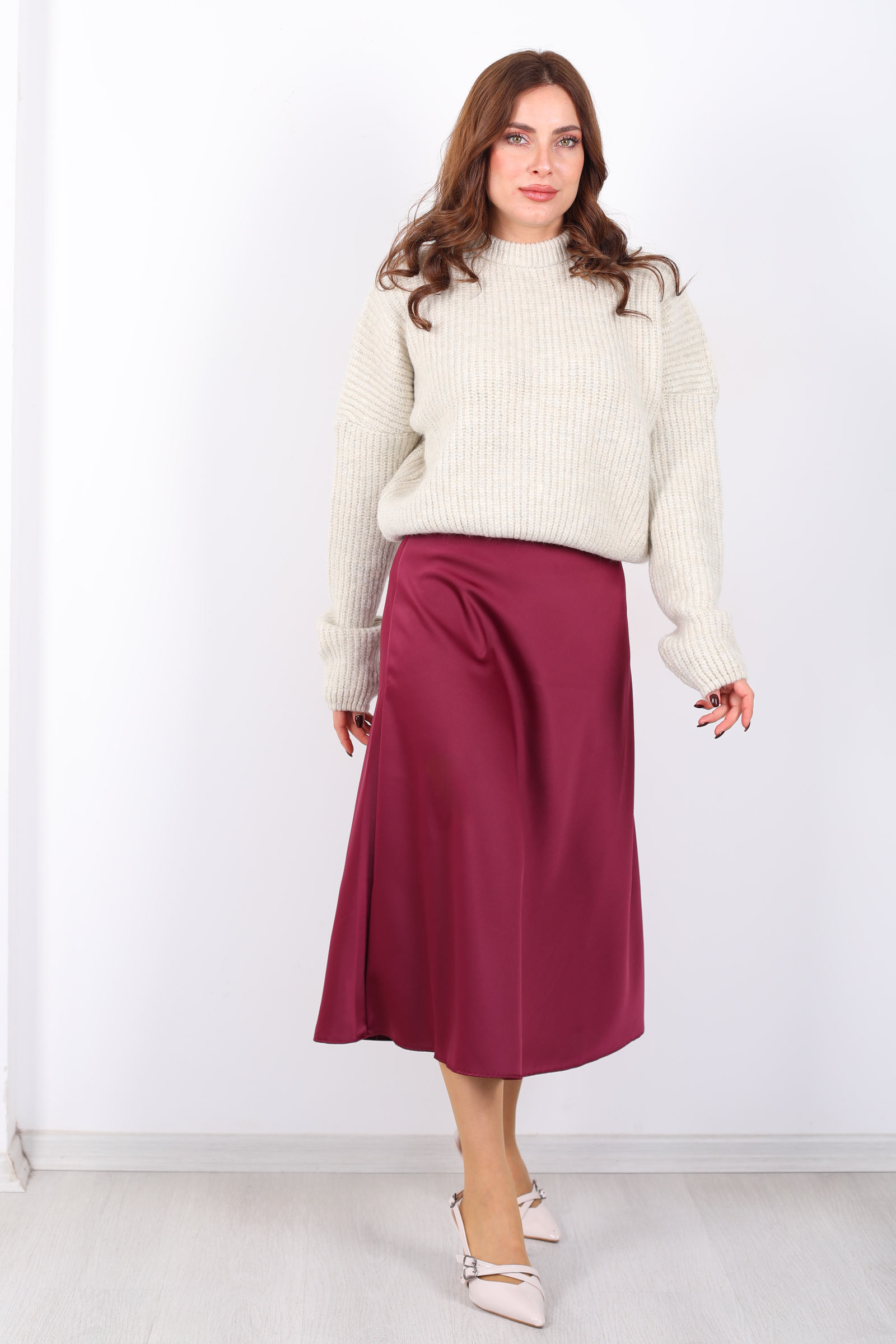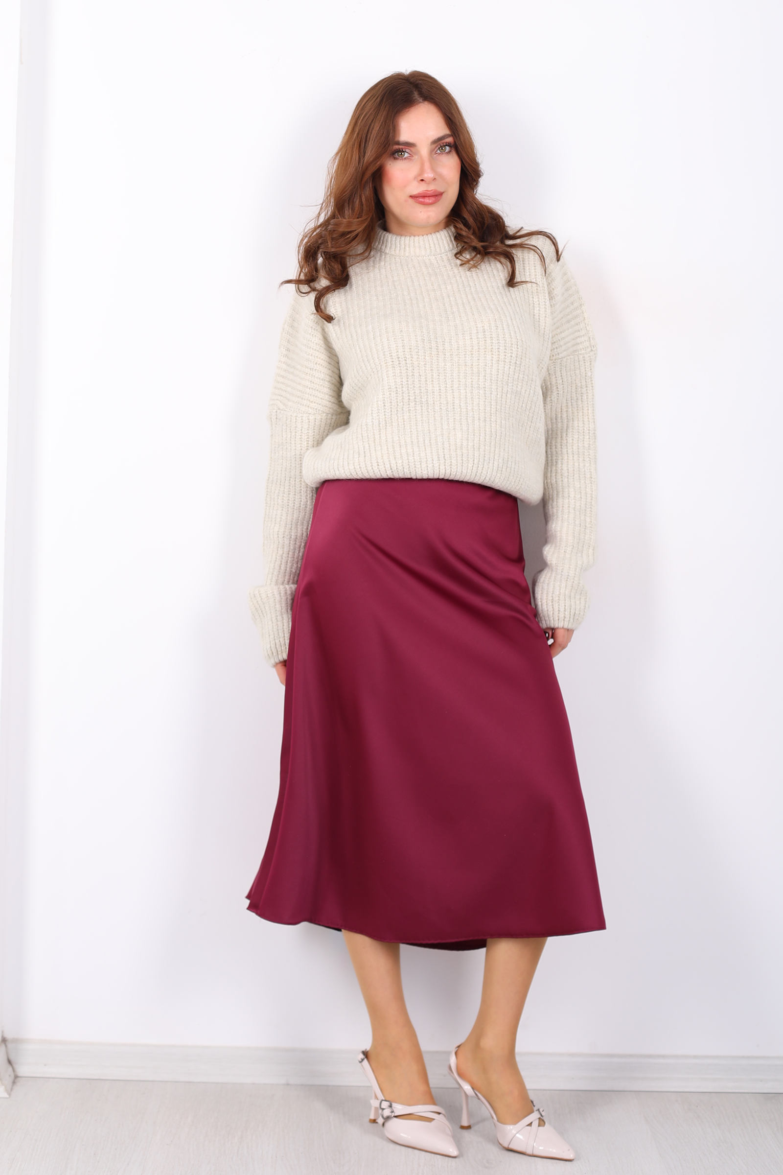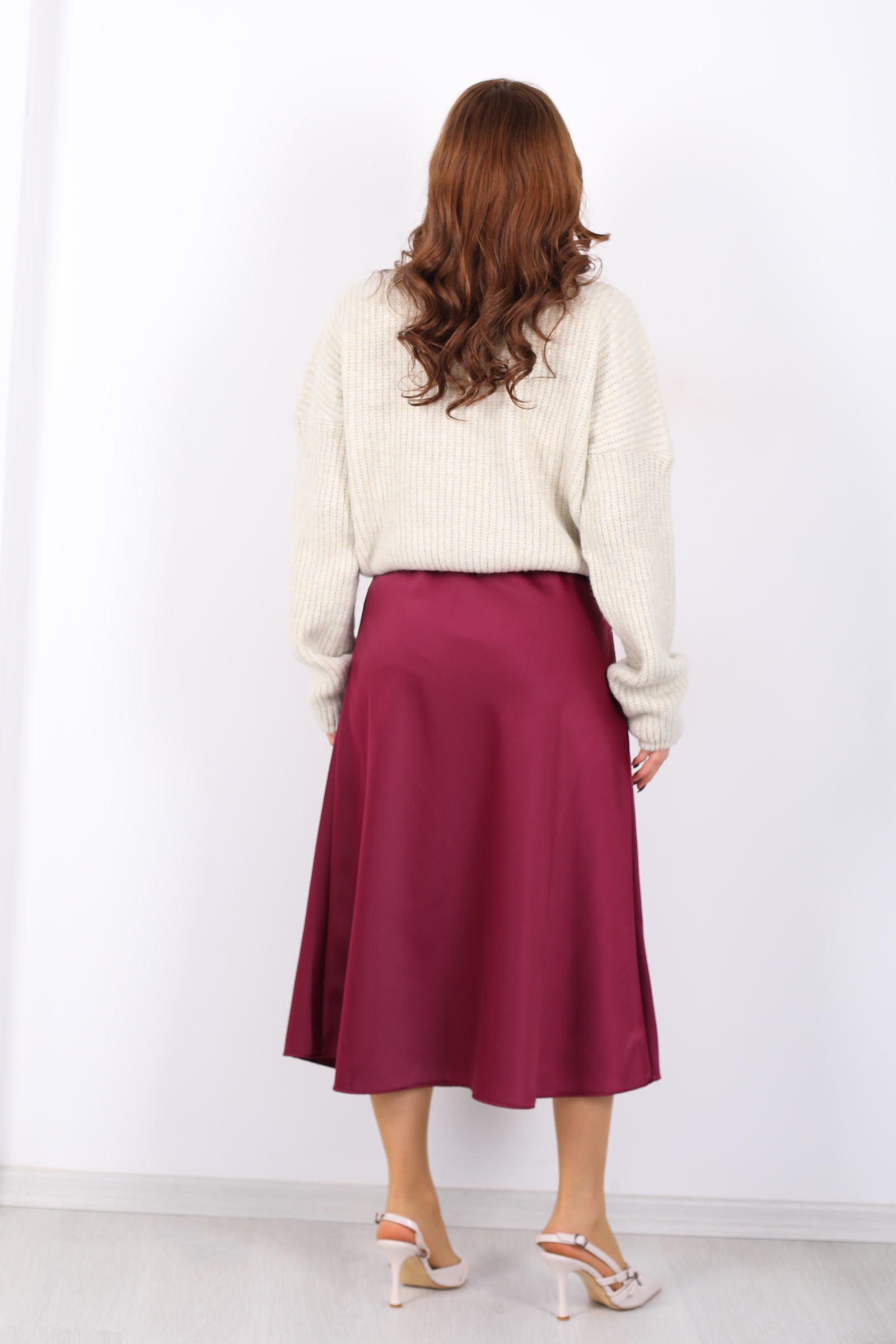Saten Maxi Mürdüm Kadın Kloş Etek