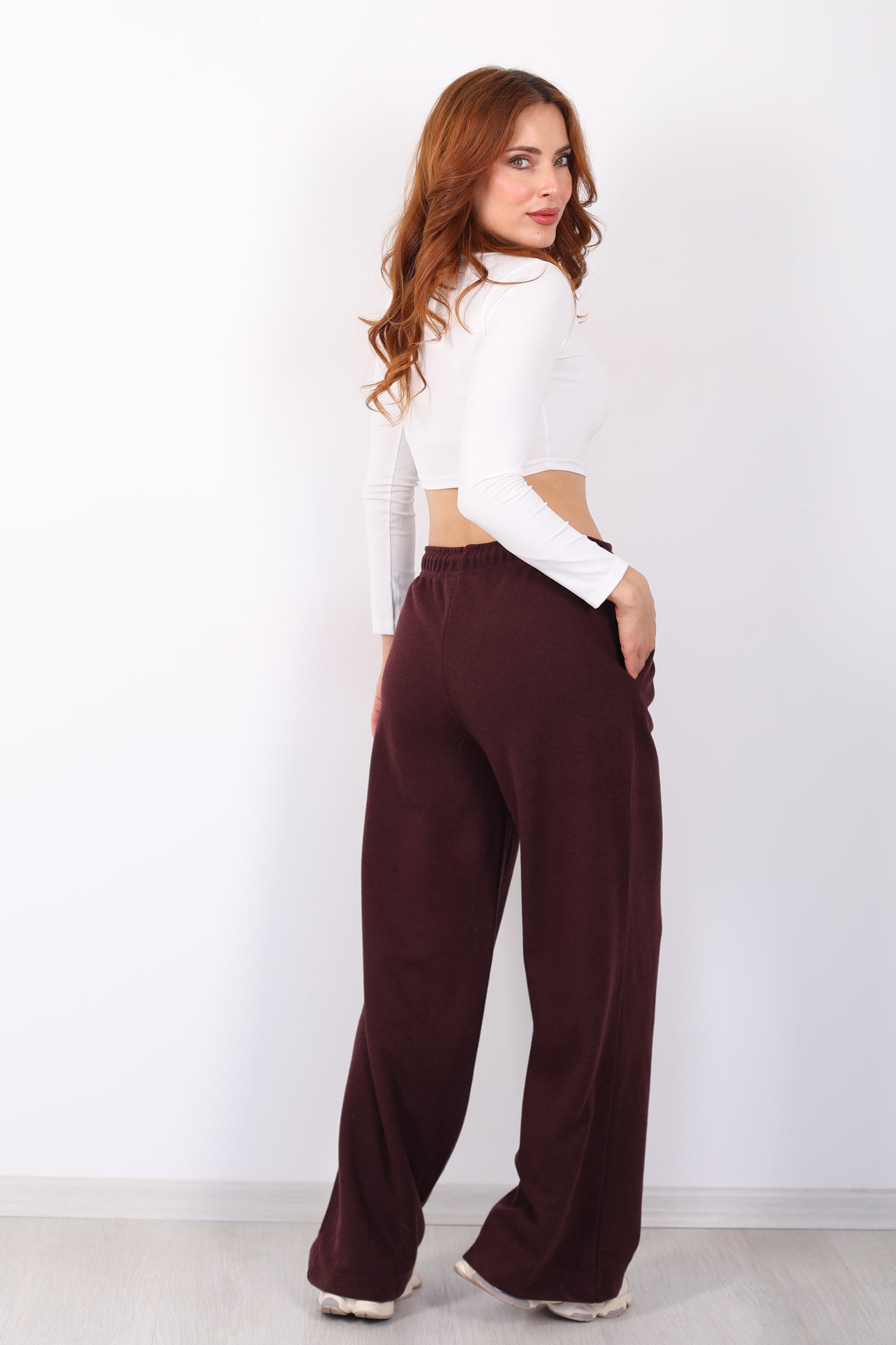 Beli Lastikli Yüksek Bel Acı Kahve Kadın Modal Pantolon
