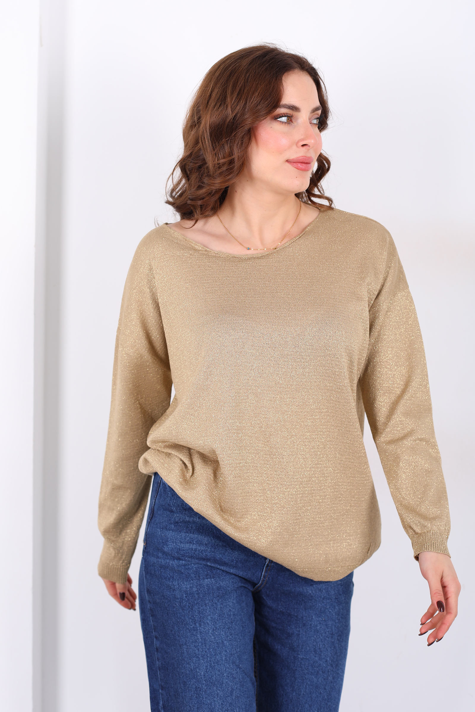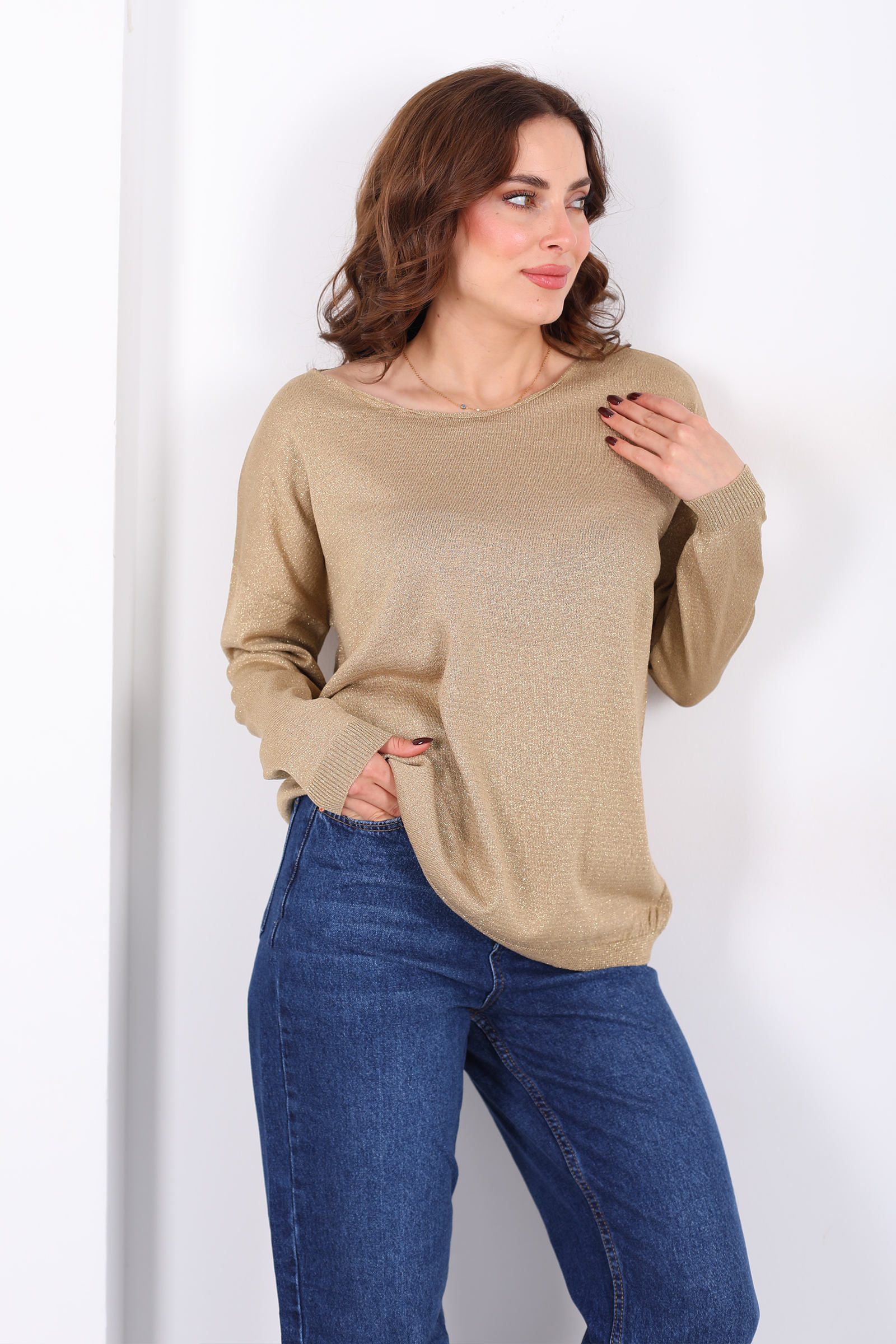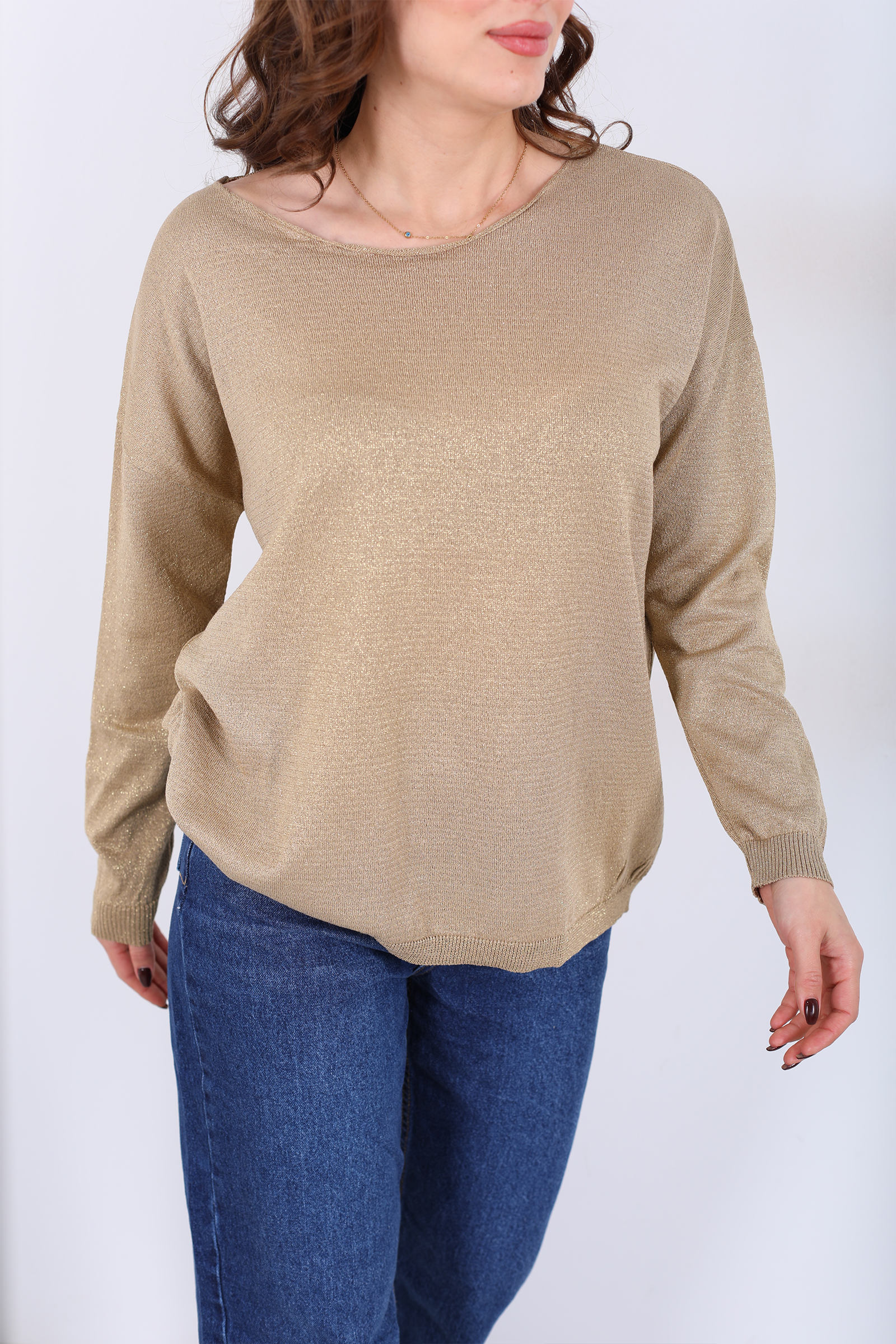 Maddonna Yaka Kısa Kol Fitilli Bej Kadın Triko Kazak