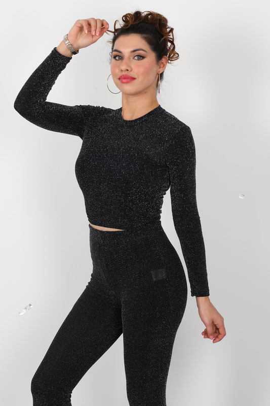 Gecenin büyüsünü üzerinizde taşıyan Sırt Dekolteli Simli Siyah Kadın Crop, ışıltılı bir stil arayan kadınların yeni favorisi. Kalın askılar ve sırt dekoltesindeki zarif kesim, sizi günün her anında güçlü ve çekici bir duruşla tamamlar. İnce buton detayı, sade ama sofistike bir aksesuar etkisi yaratırken, simli kumaş yüzeyi lambalar altında hafif bir parıltıyla ışıldar.