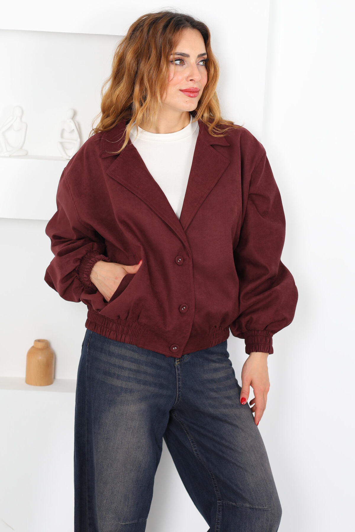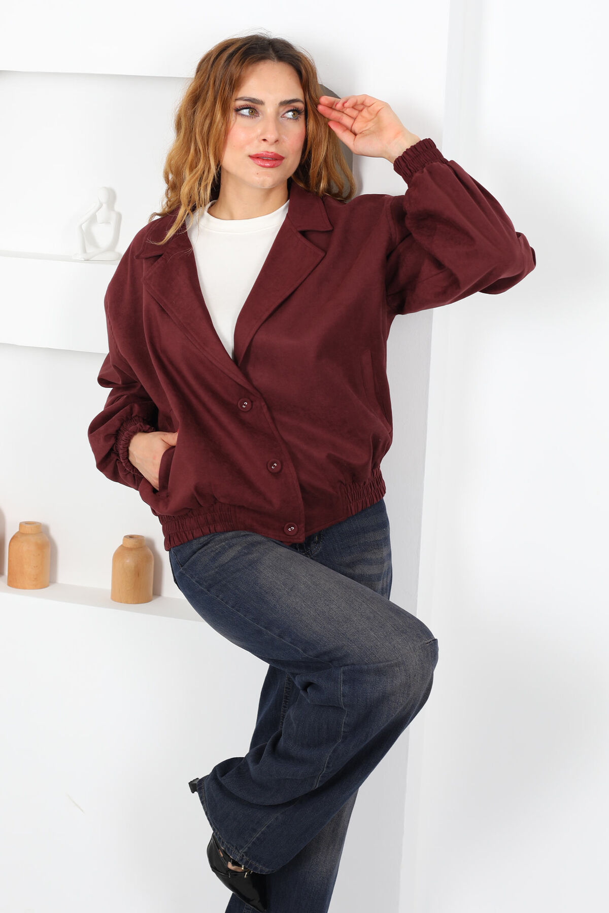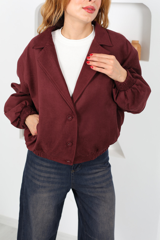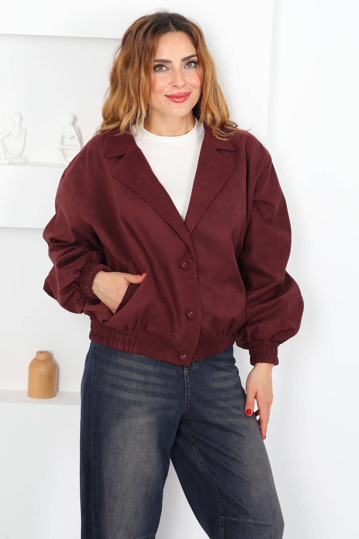 Gardırobunuzun vazgeçilmezi olmaya aday, şıklığı ve sıcaklığı bir arada sunan Suet Bomber Bordo Kadın Ceket ile tanışın! Derin bordo rengi, sonbaharın ve kışın en dikkat çekici tonlarından biri olarak stilinize iddialı bir dokunuş katıyor.Yumuşak süet kumaşın dokusu, her dokunuşta konforu hissettirirken, bomber kesimin enerjik ve modern duruşu sayesinde günlük kombinlerinize hareket katıyor. Elastik manşetleri ve bel bandı, size hem şıklık hem de mükemmel uyum sağlıyor. Hafif astarı ise serin günlerde sıcaklık ve rahatlığı garanti ediyor.