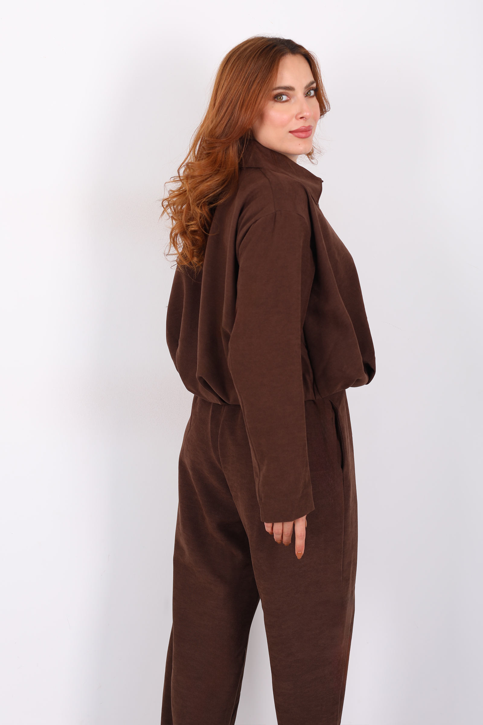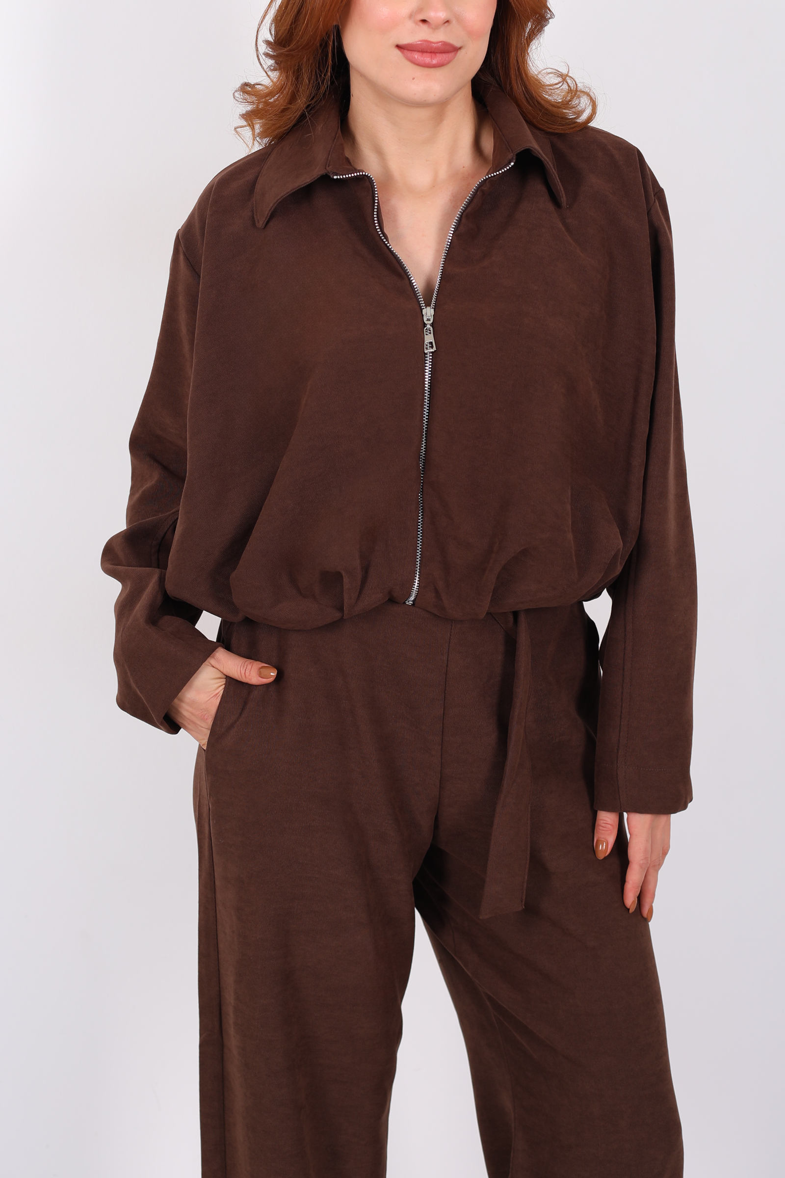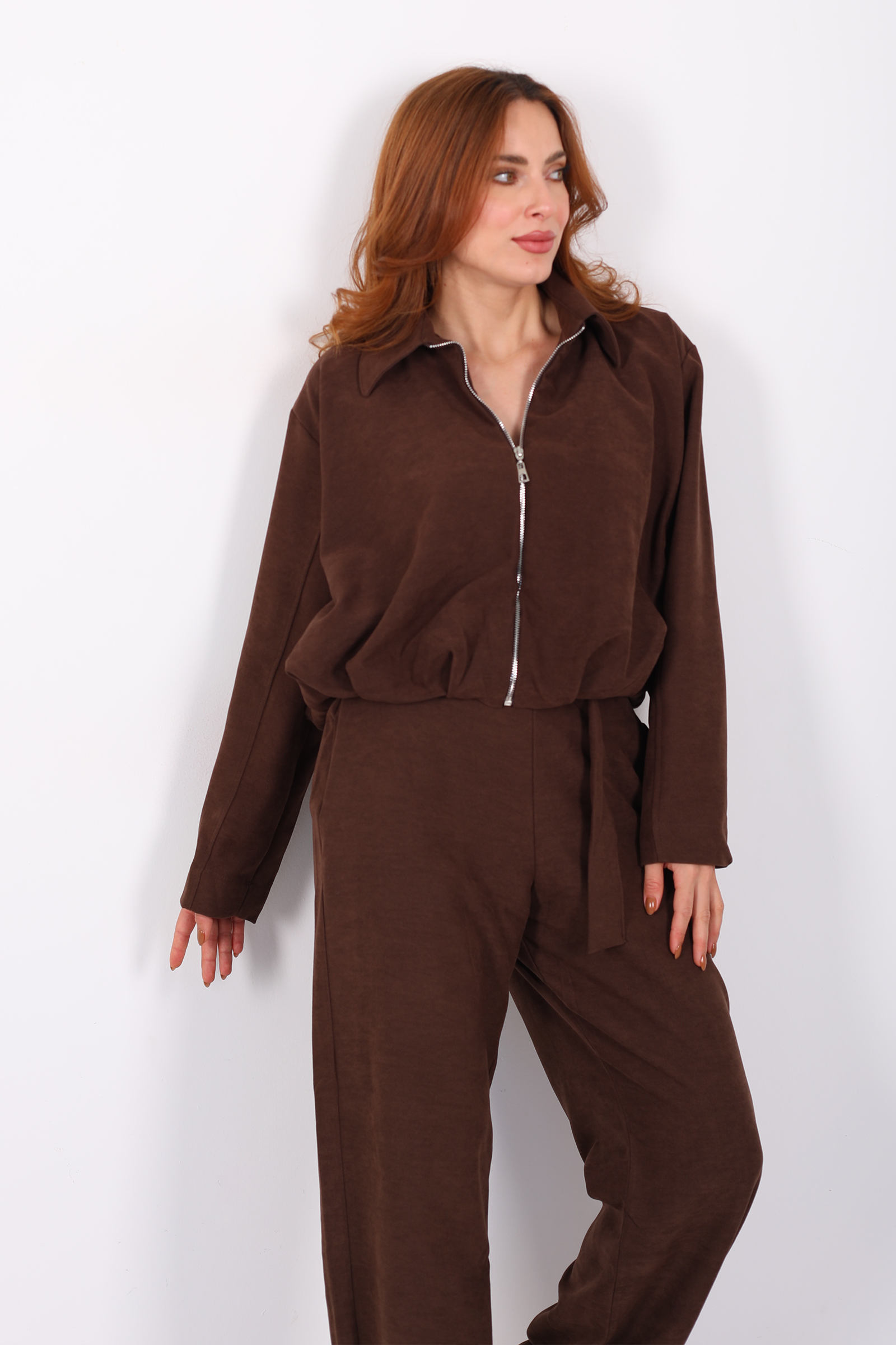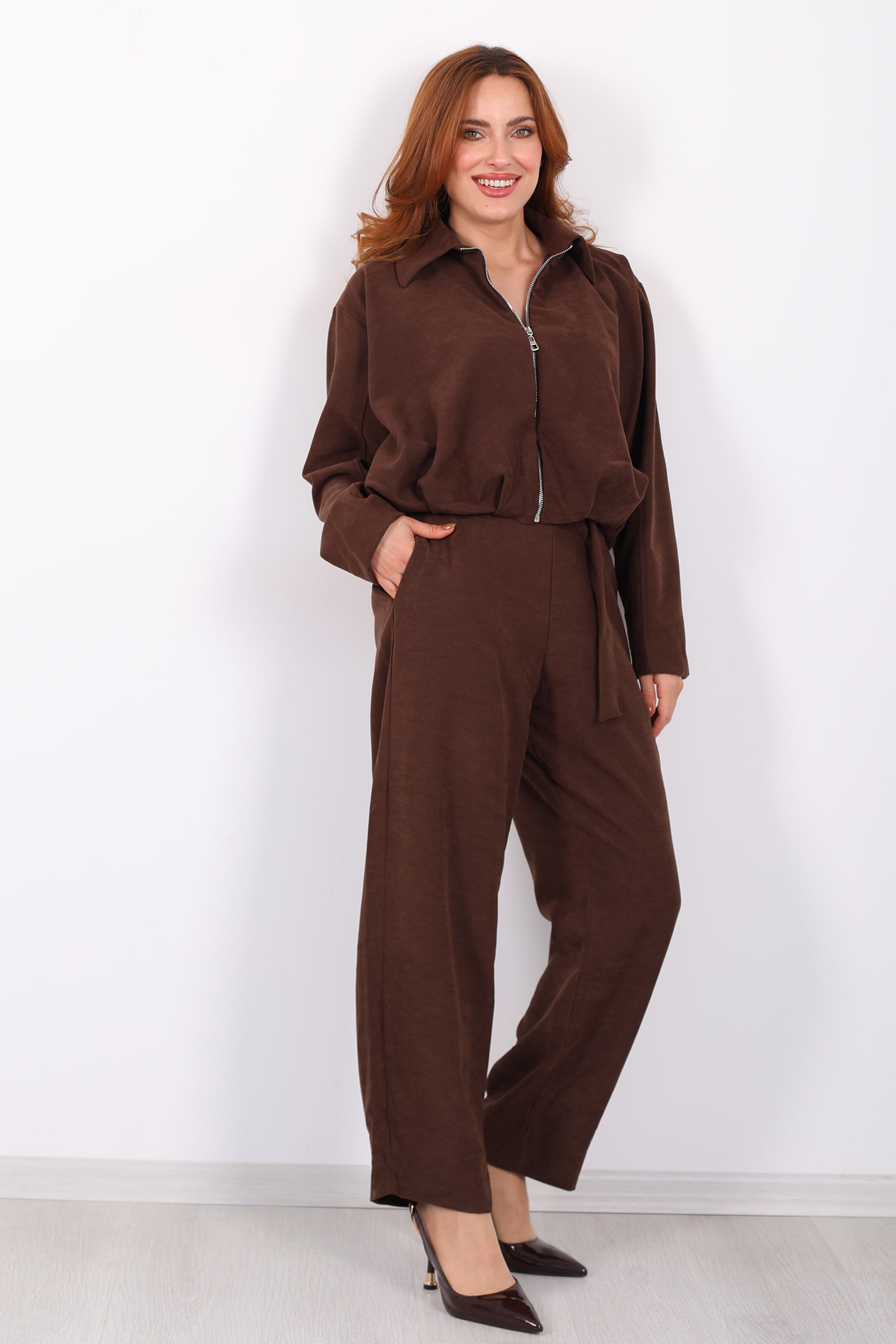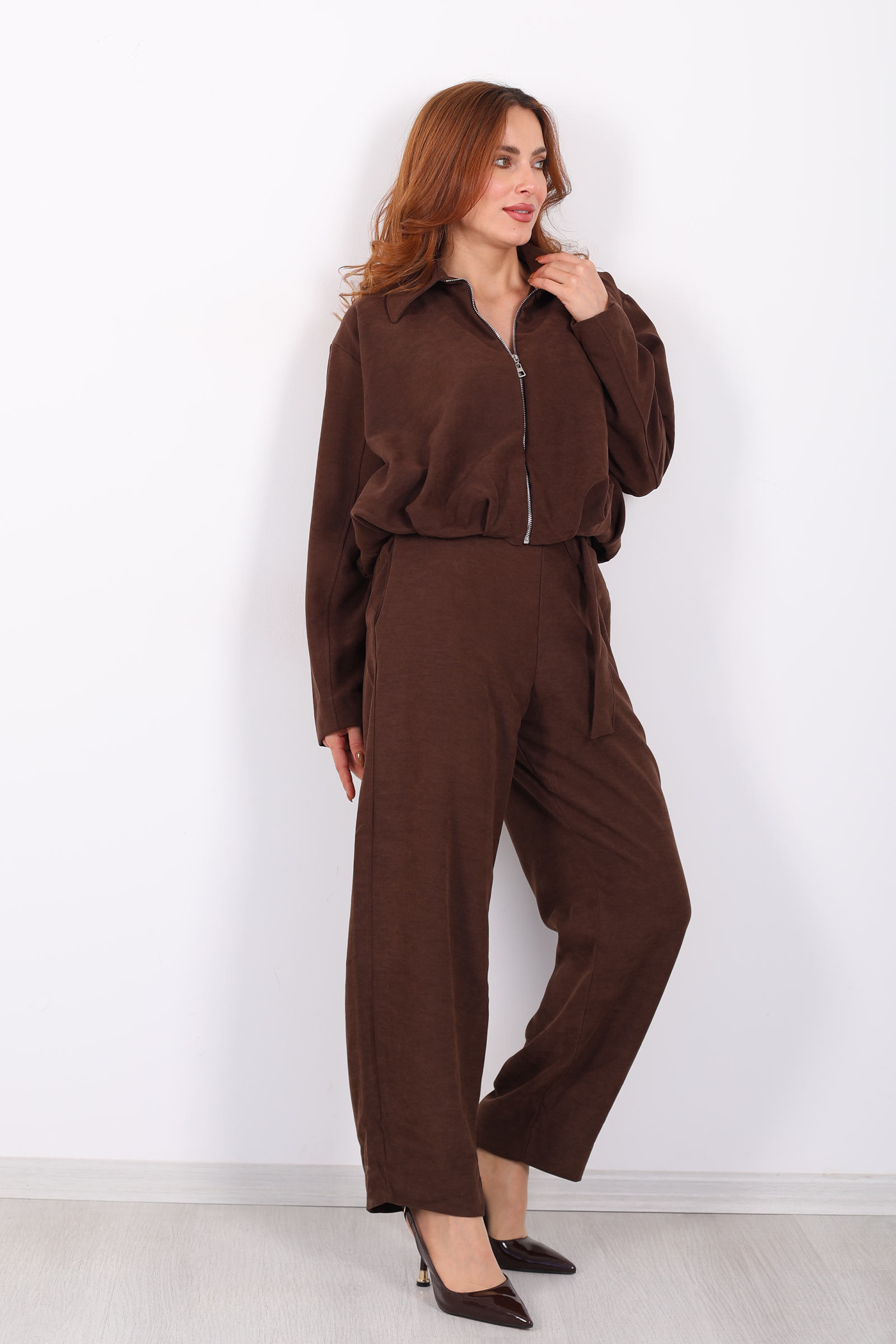 Süet Kadın Kahverengi Ceket Pantolon Takım