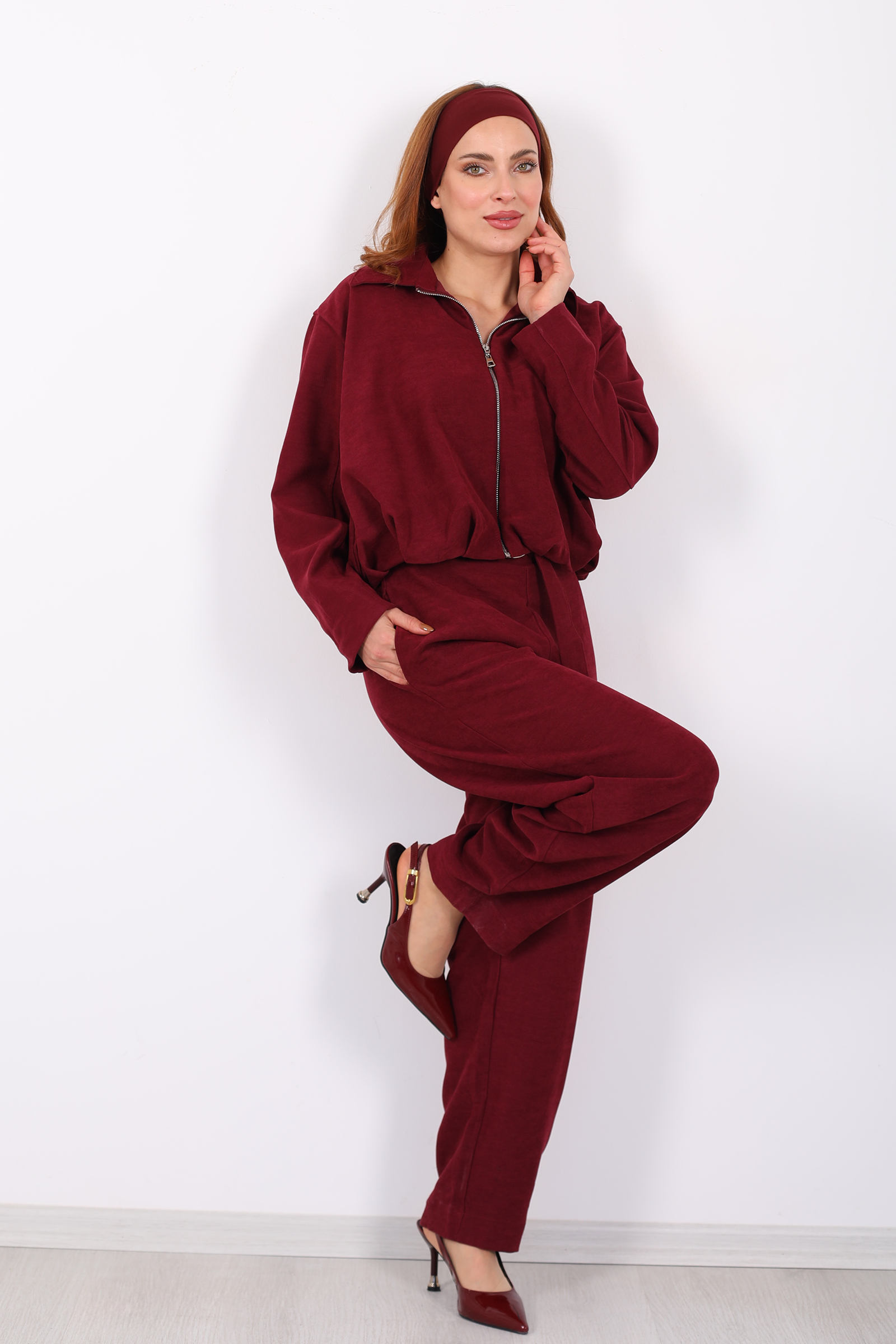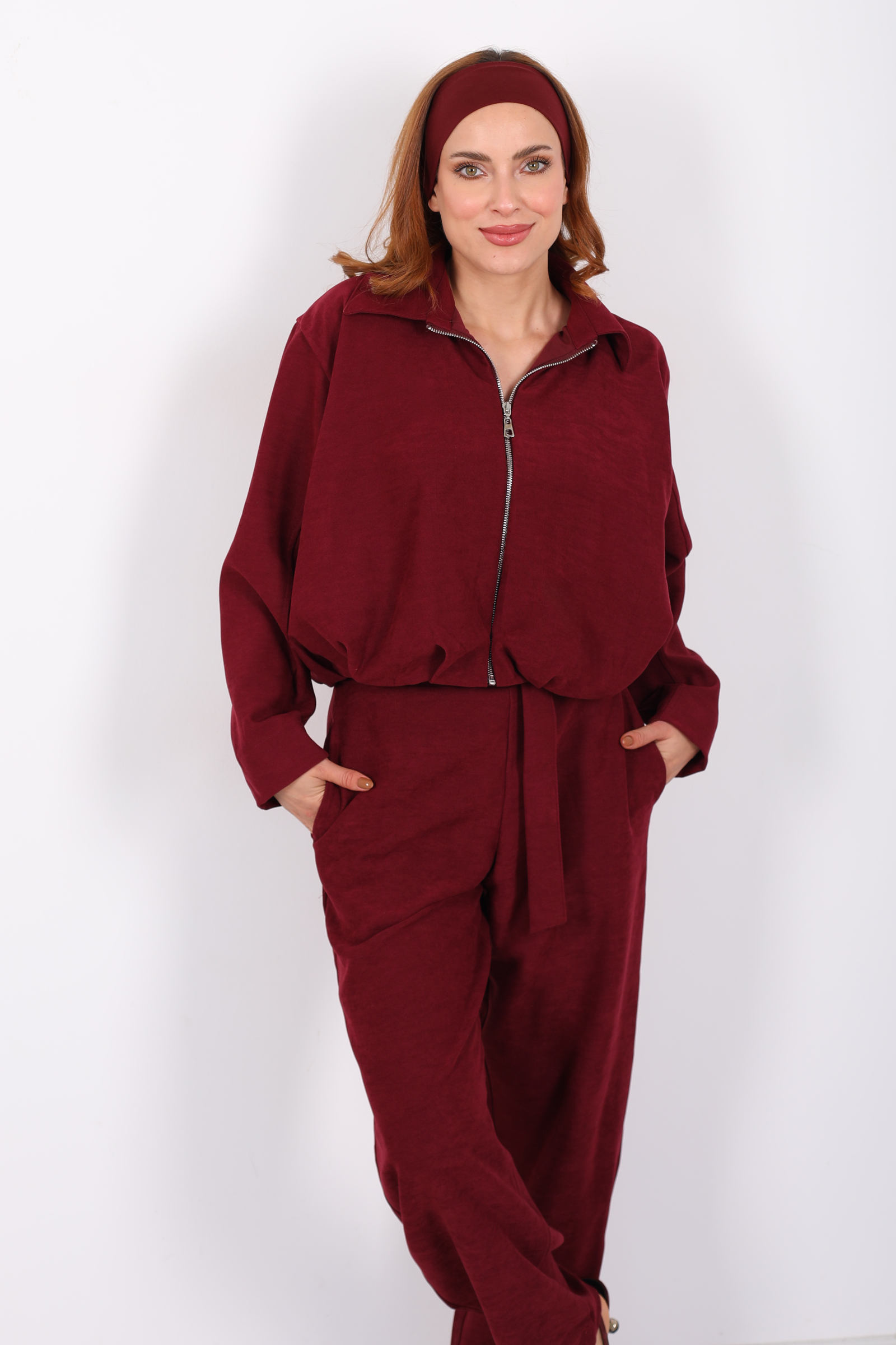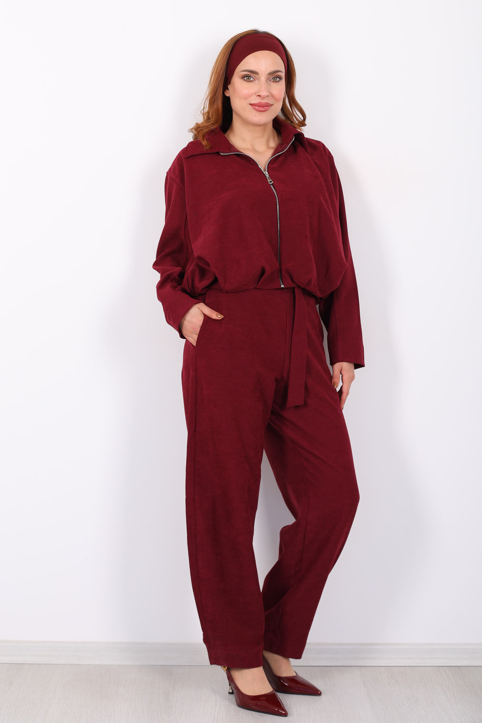 Süet Kadın Mürdüm Ceket Pantolon Takım