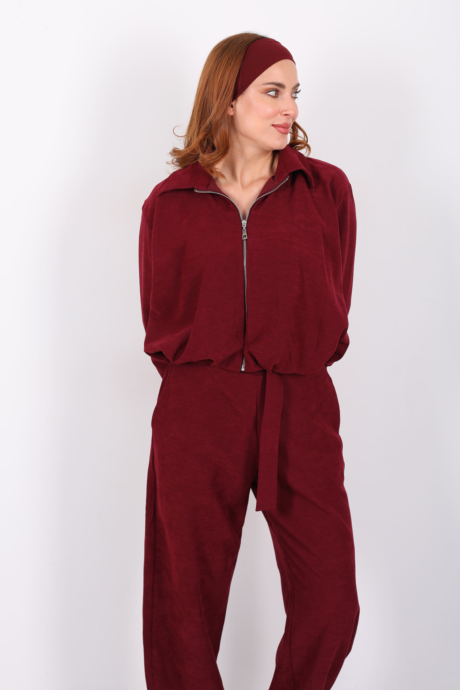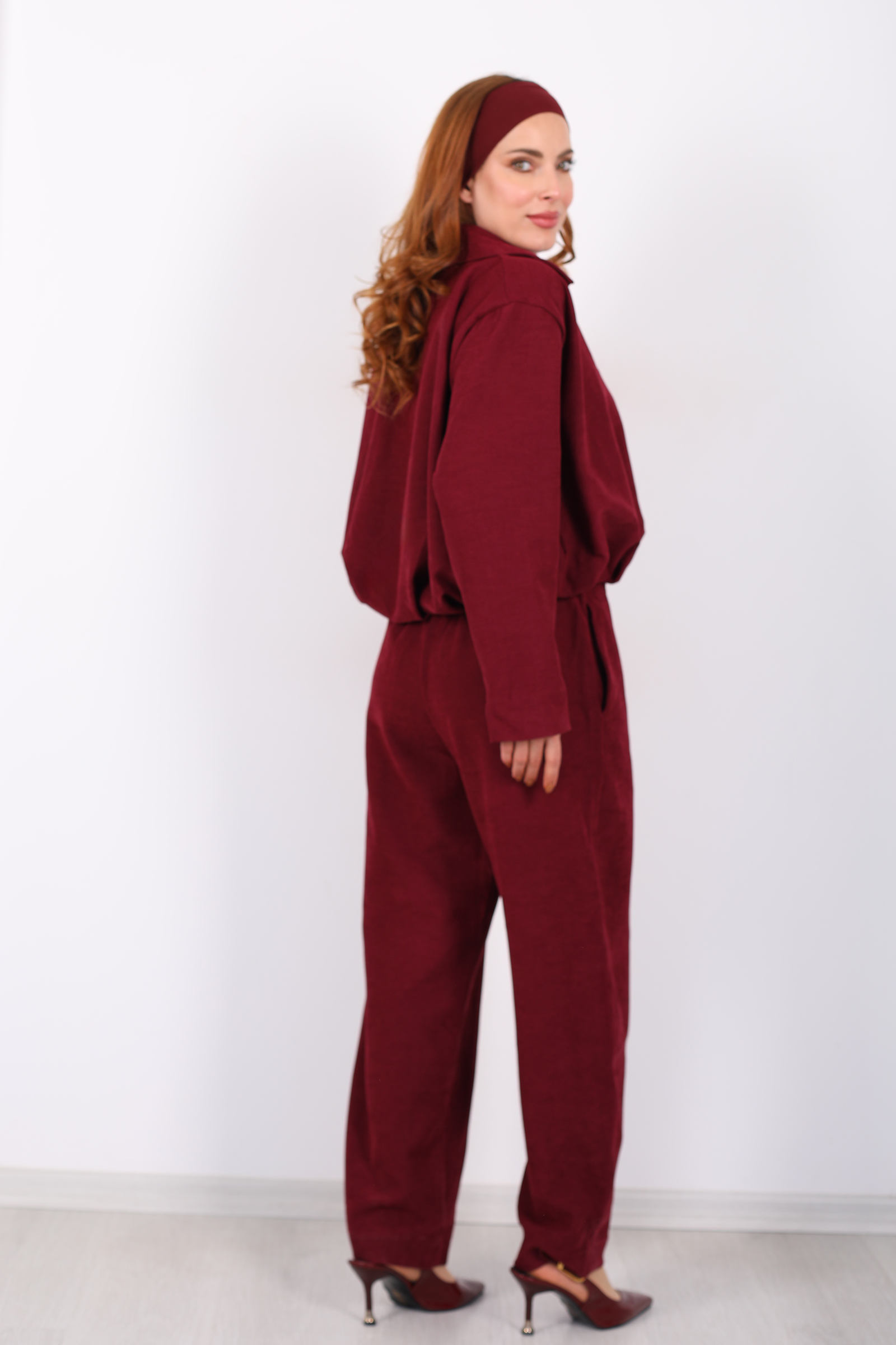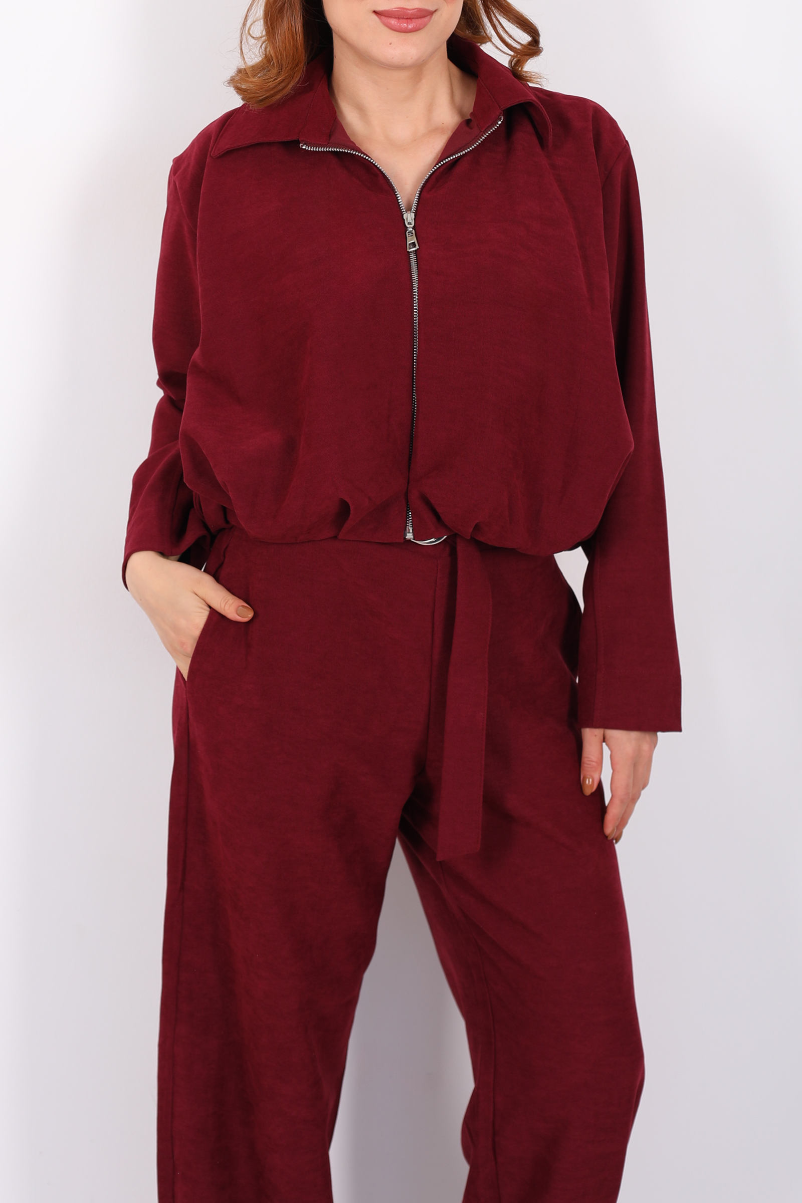 Süet Kadın Mürdüm Ceket Pantolon Takım