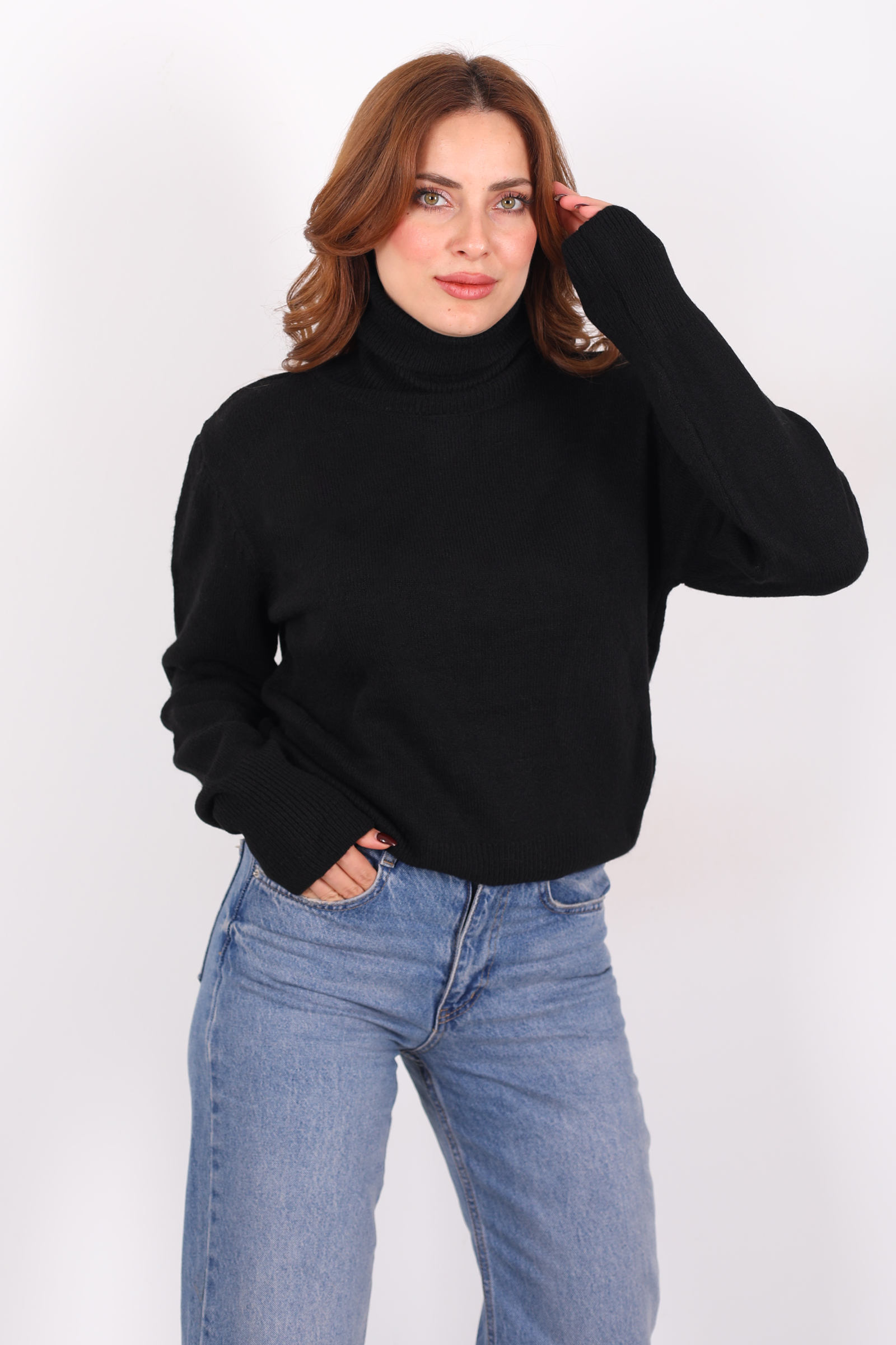 Klasik siyah rengin zamansız cazibesini, tam balıkçı yaka ile buluşturan bu triko kazak, hem soğuk havaların ihtiyacını karşılar hem de stilinizi net bir şekilde ortaya koyar. Balıkçı yaka tasarımı boyun hattını sarar ve üst gövdenizde minimal ama güçlü bir siluet yaratır. Kazanın örgü dokusu yumuşak ama dayanıklıdır; gün boyu konfor sağlar ve günlük giyimde vazgeçilmez bir temel parçaya dönüşür.
