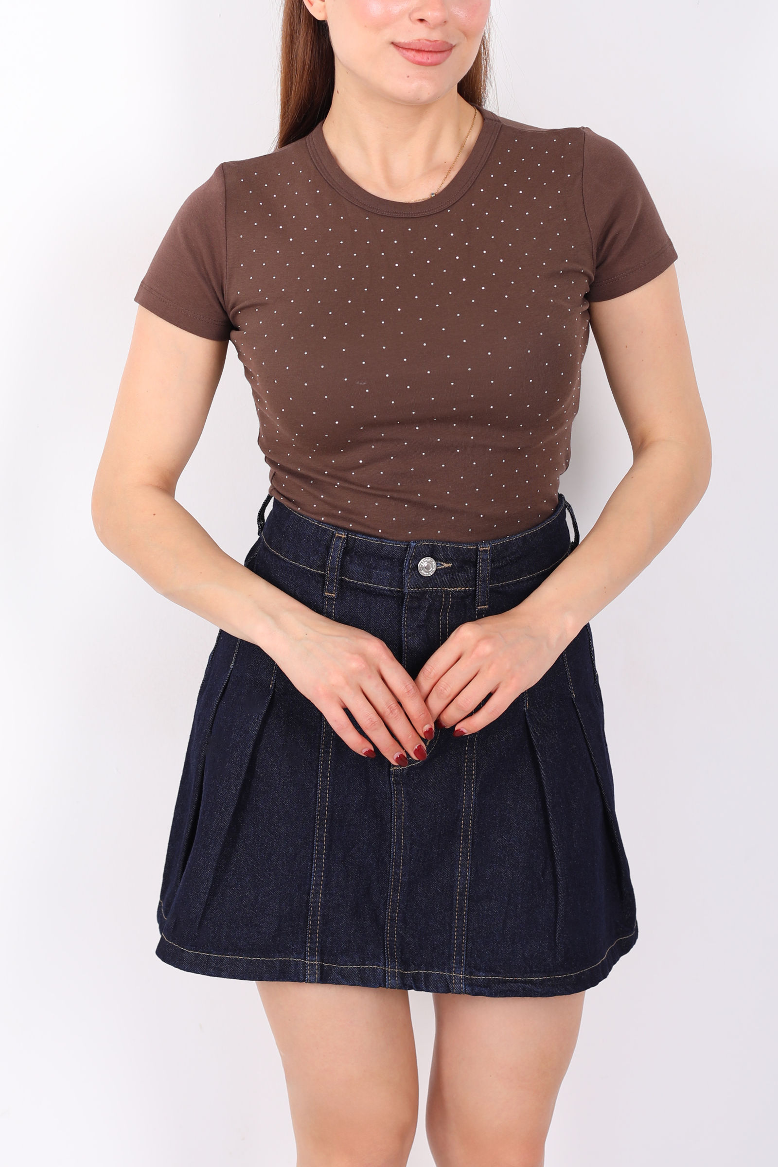 Taş Serpme Bisiklet Yaka Kahverengi Kadın Basic Body