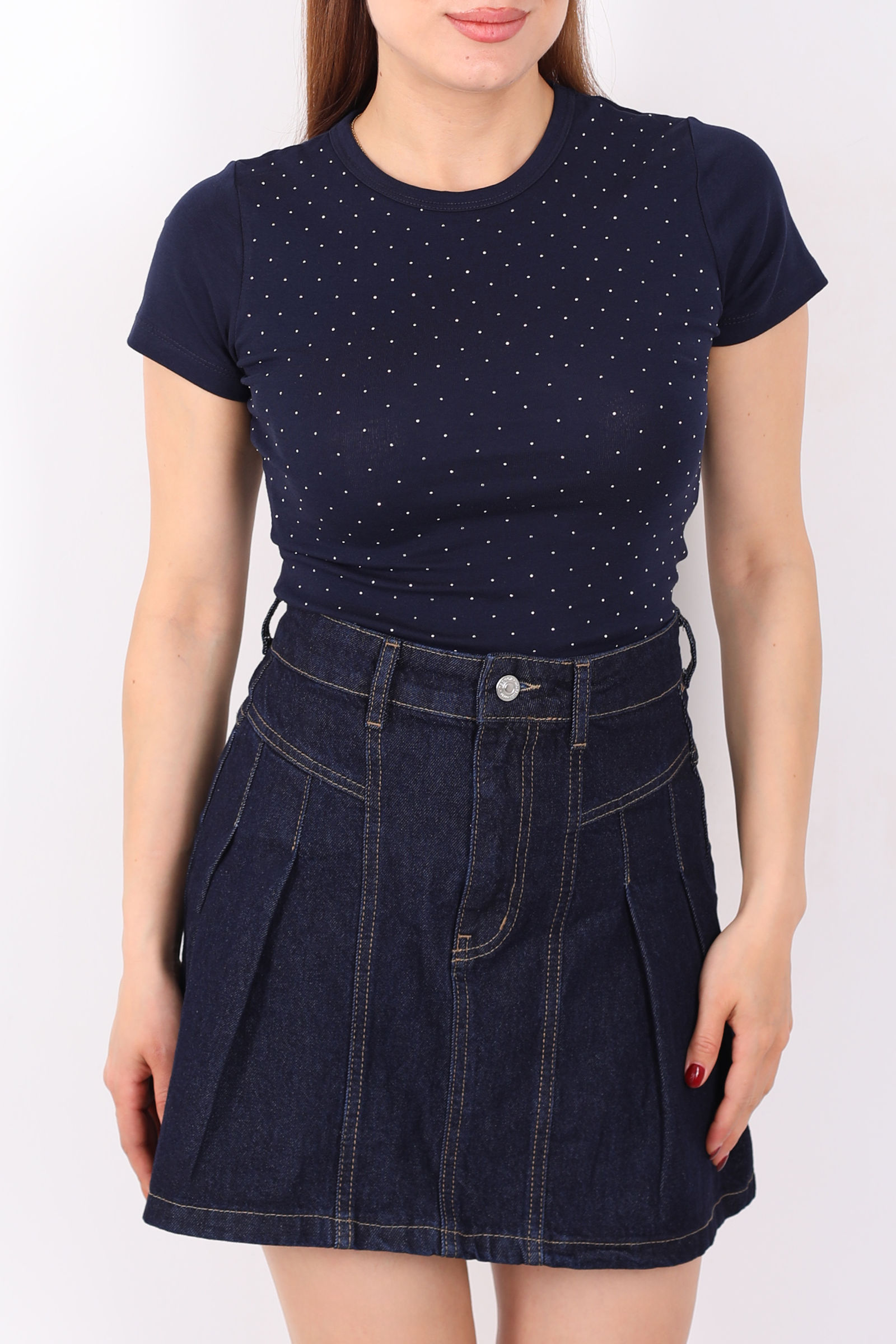 Taş Serpme Bisiklet Yaka Lacivert Kadın Basic Body