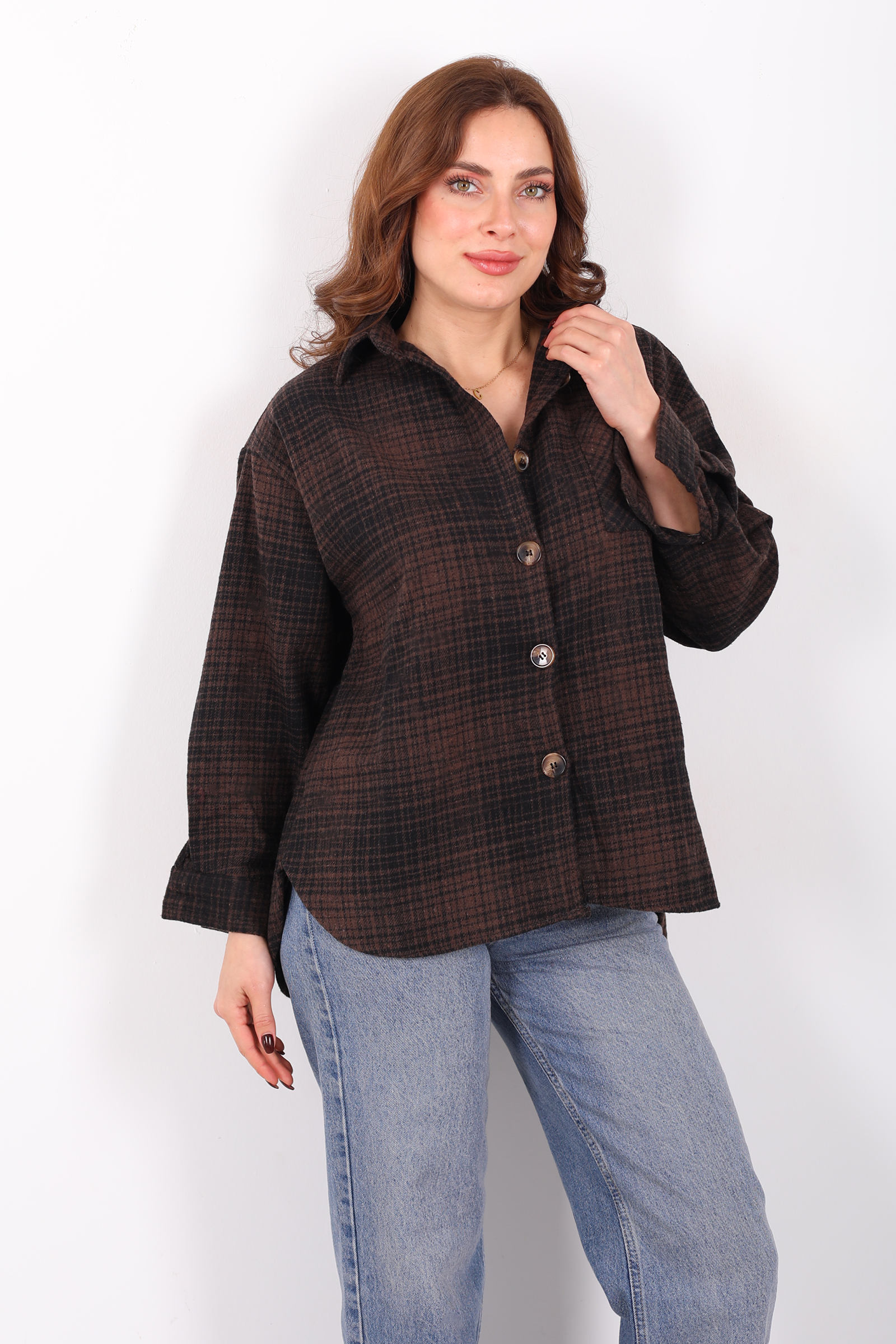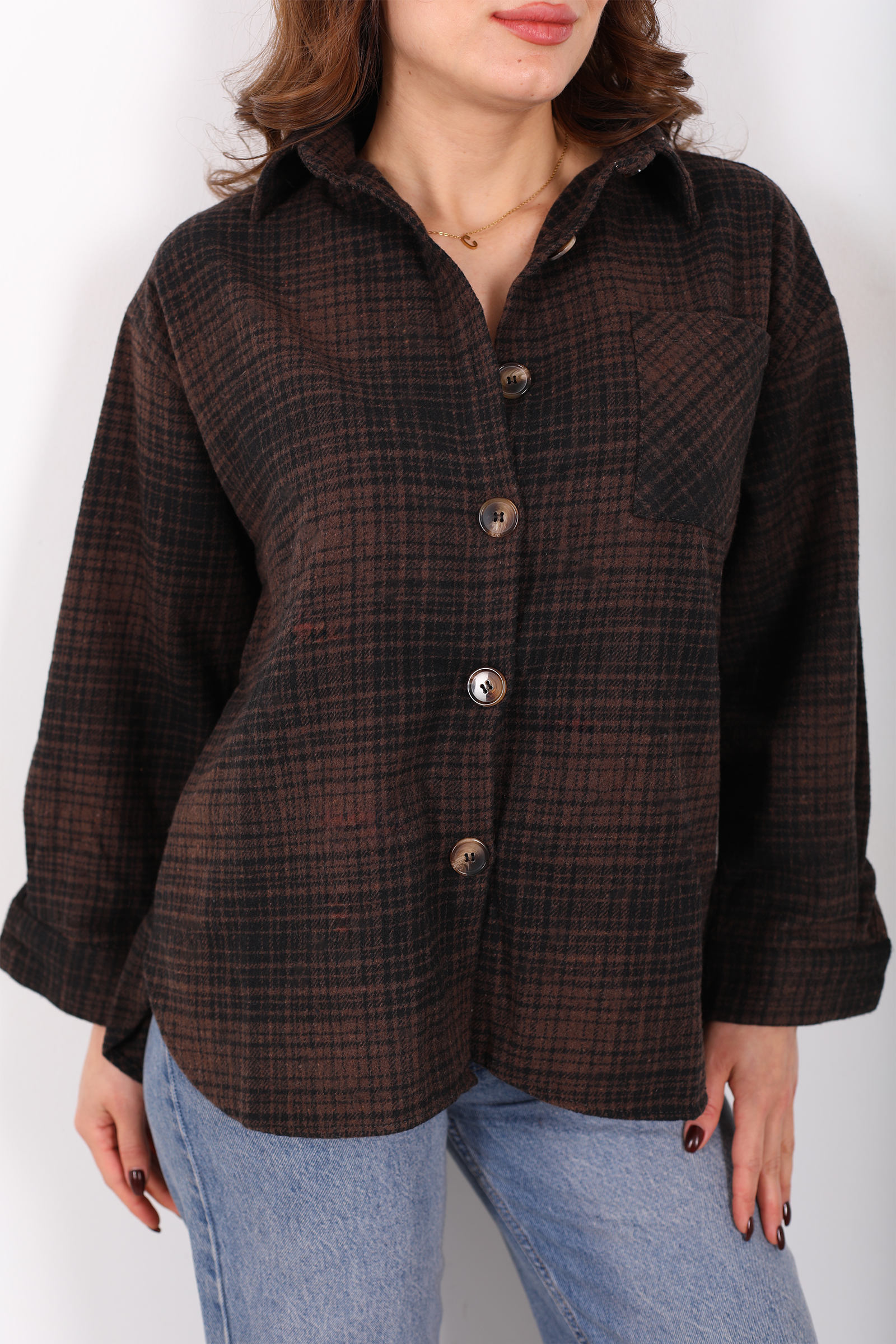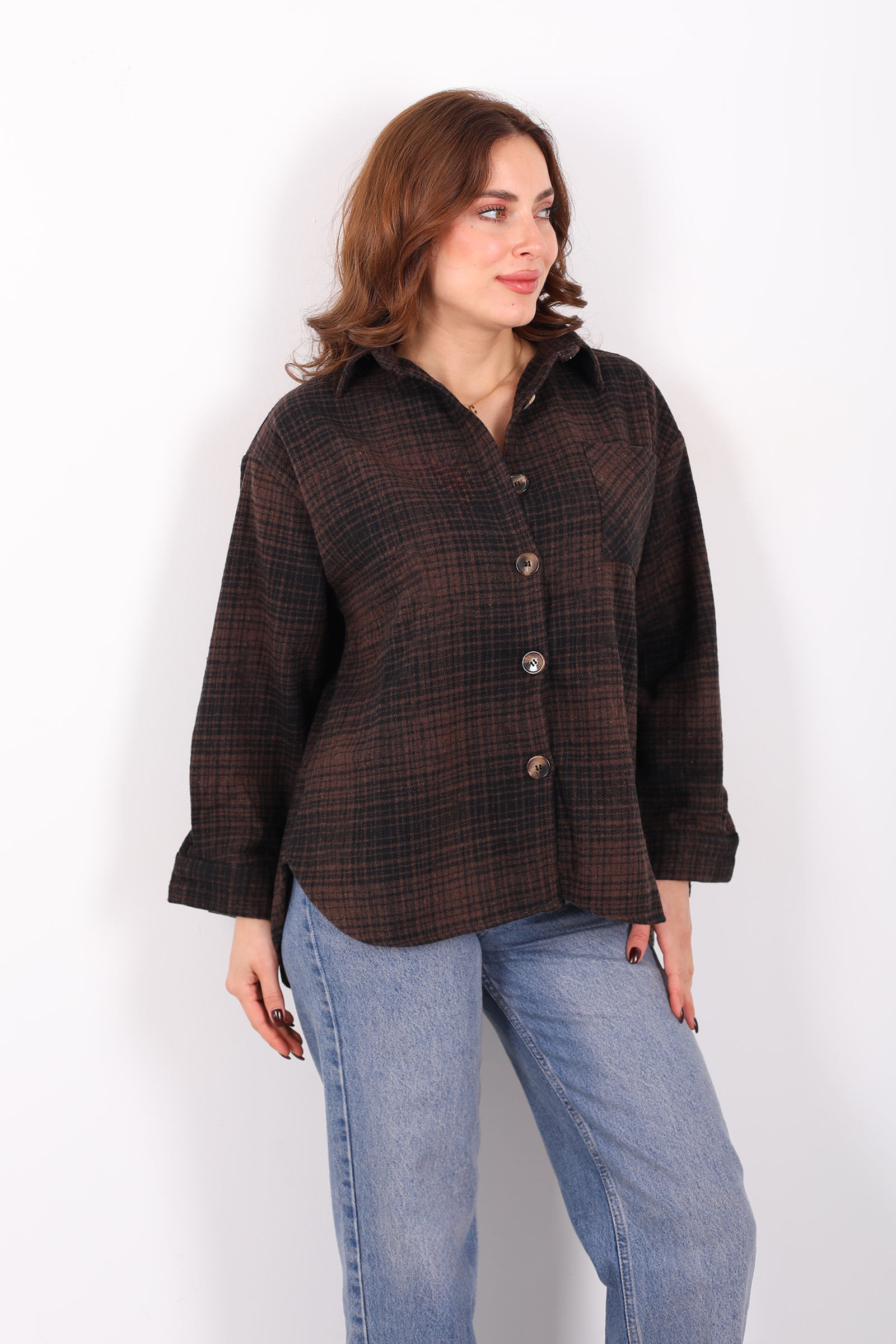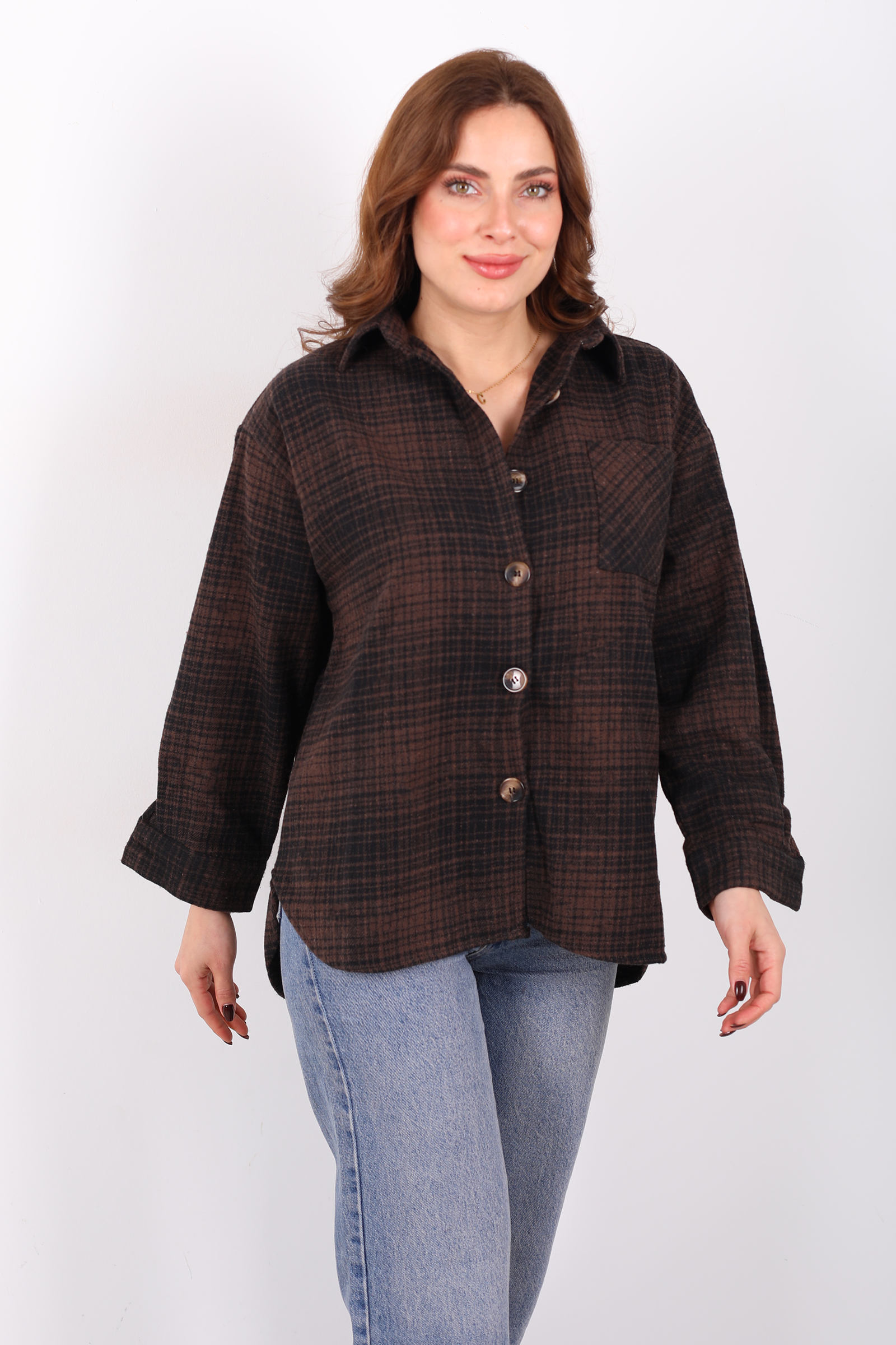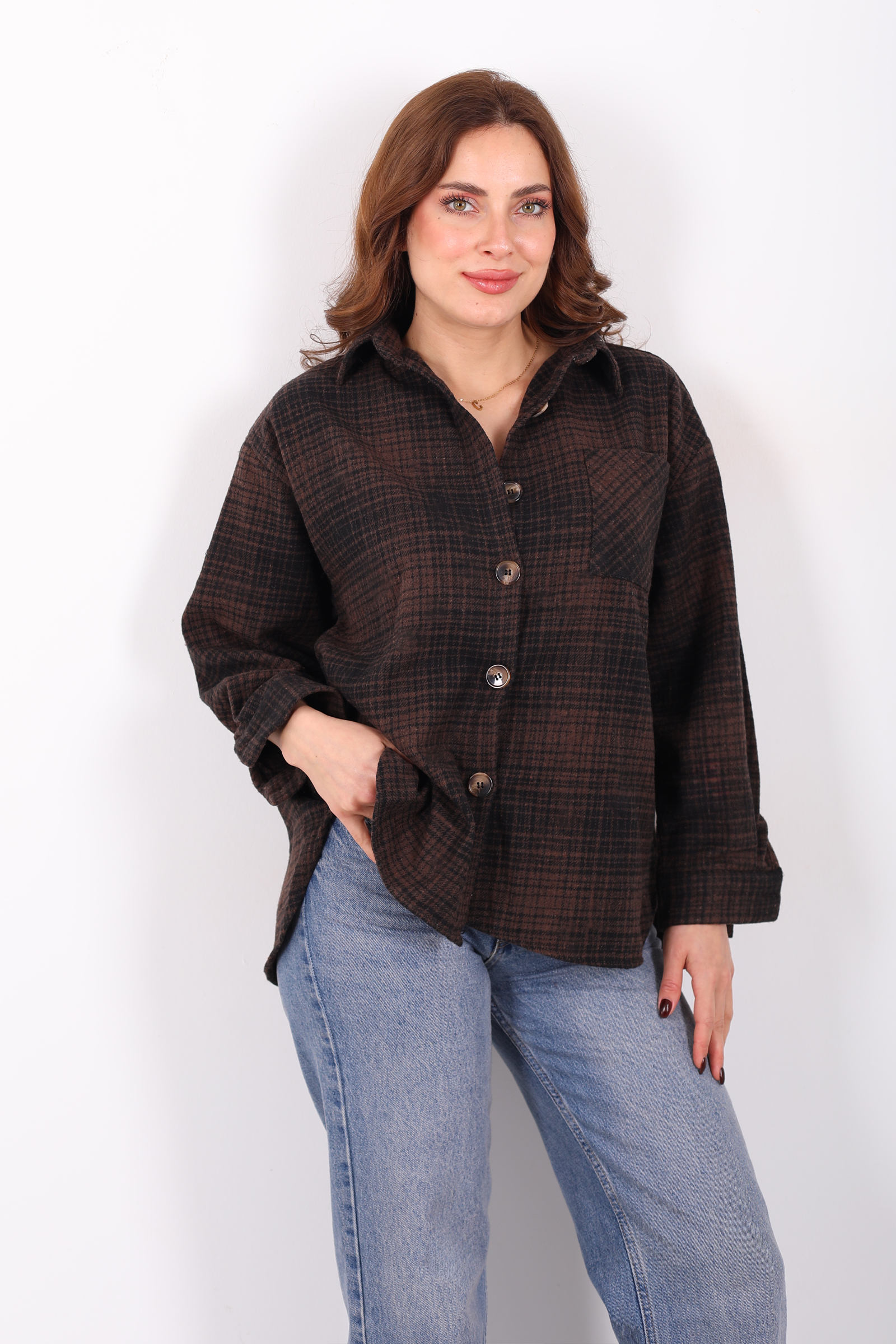 Tek Cepli Ekose Acı Kahve Kadın Oduncu Gömlek