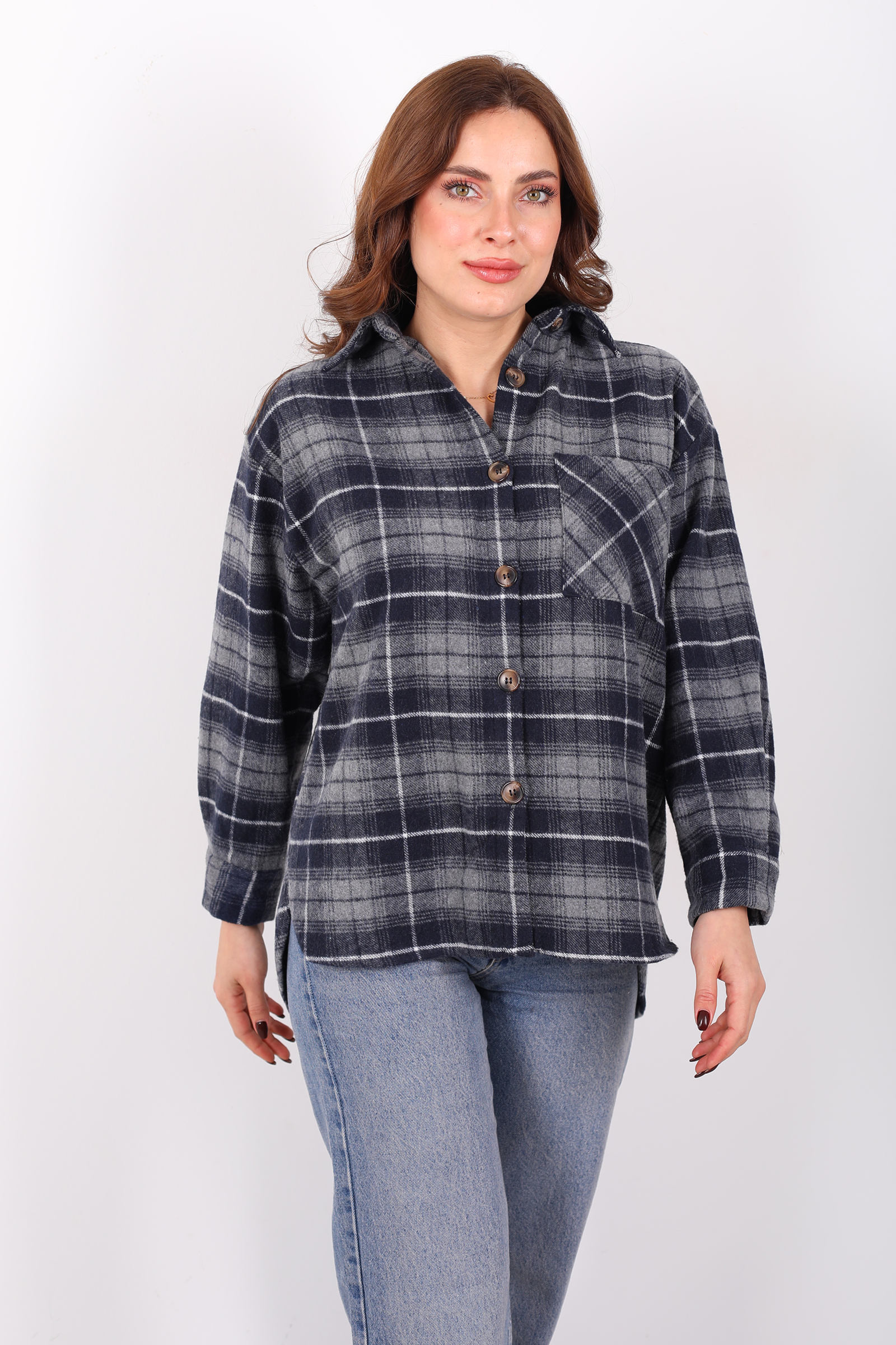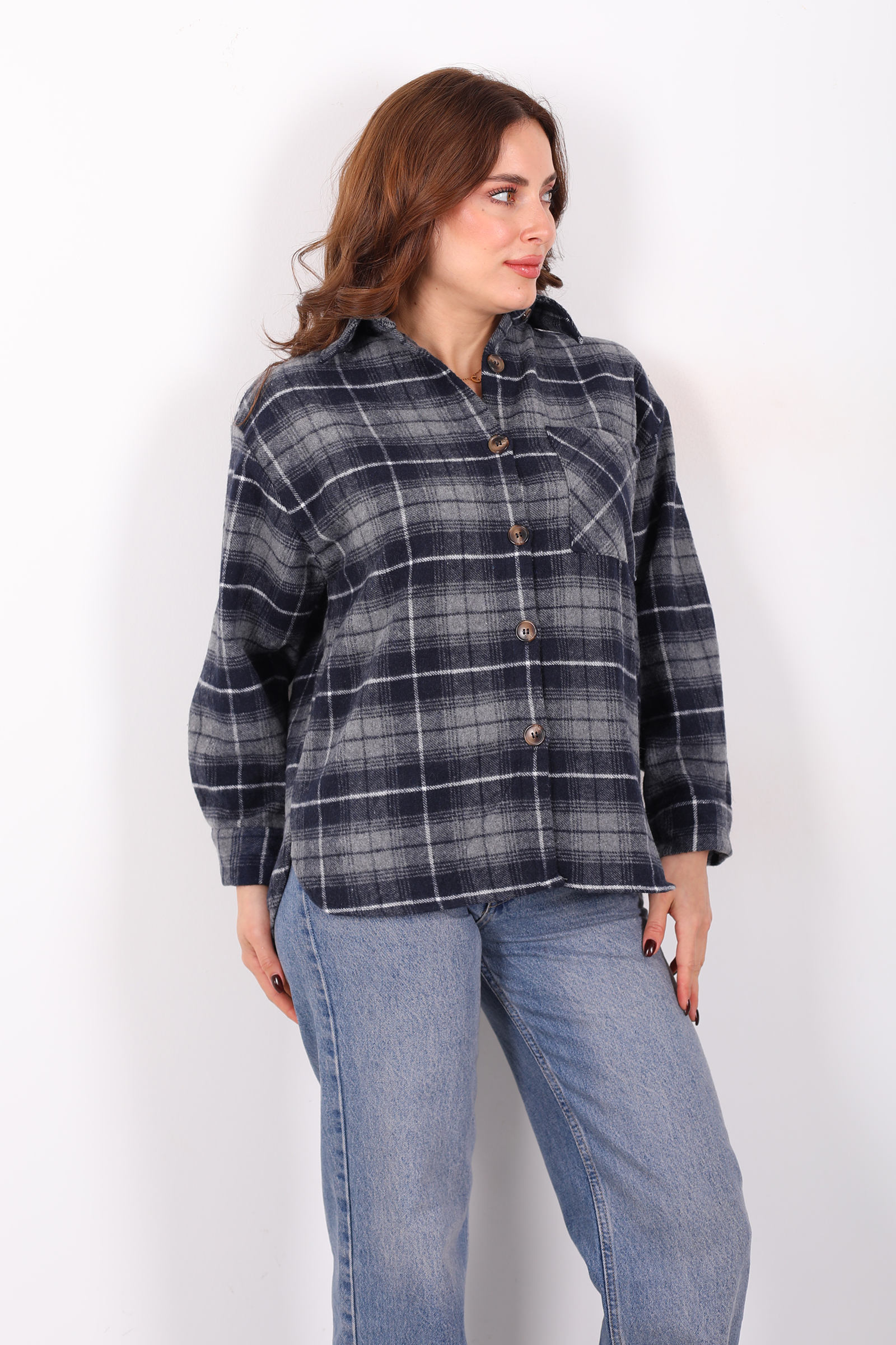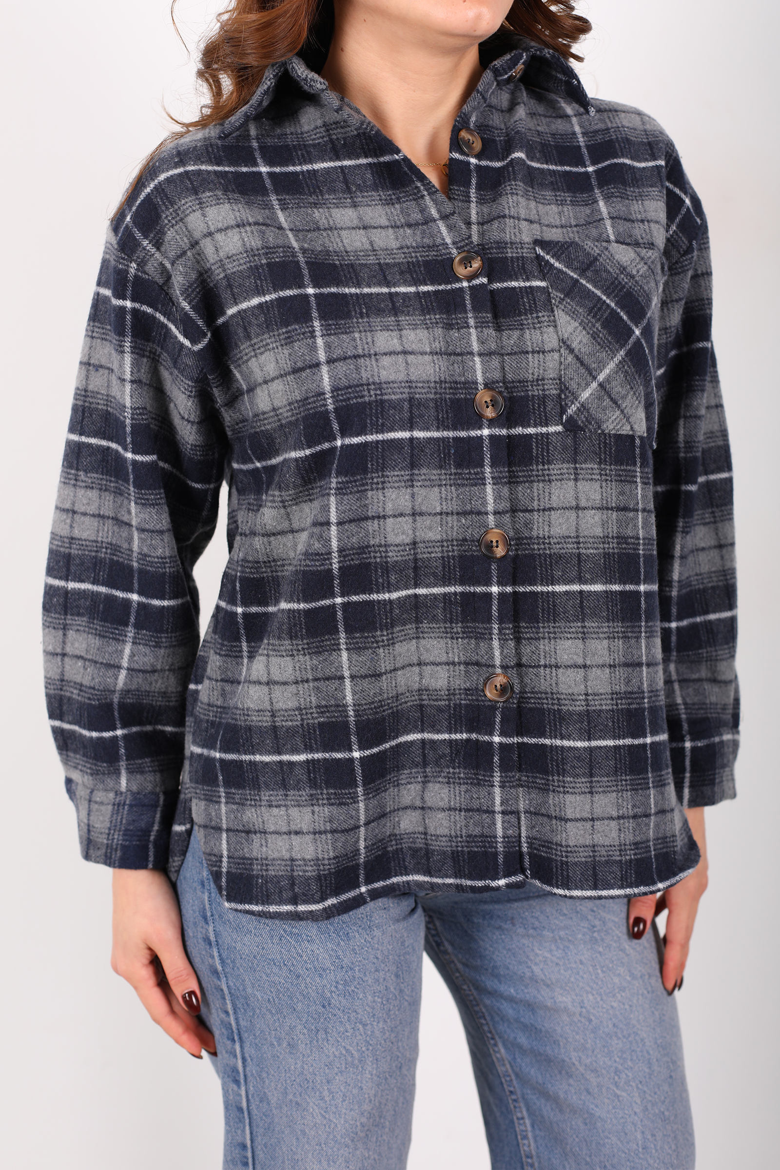 Tek Cepli Ekose Füme Kadın Oduncu Gömlek