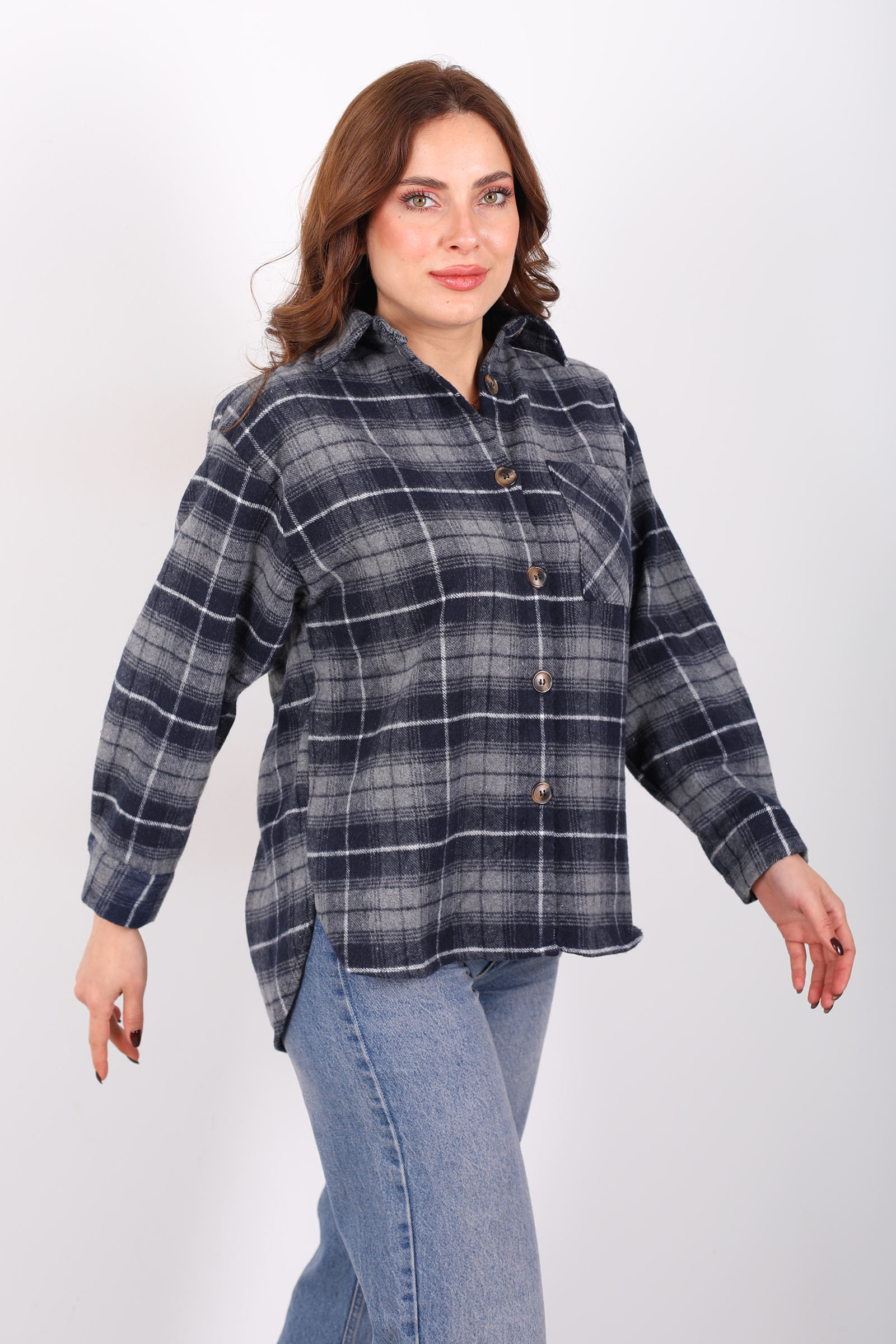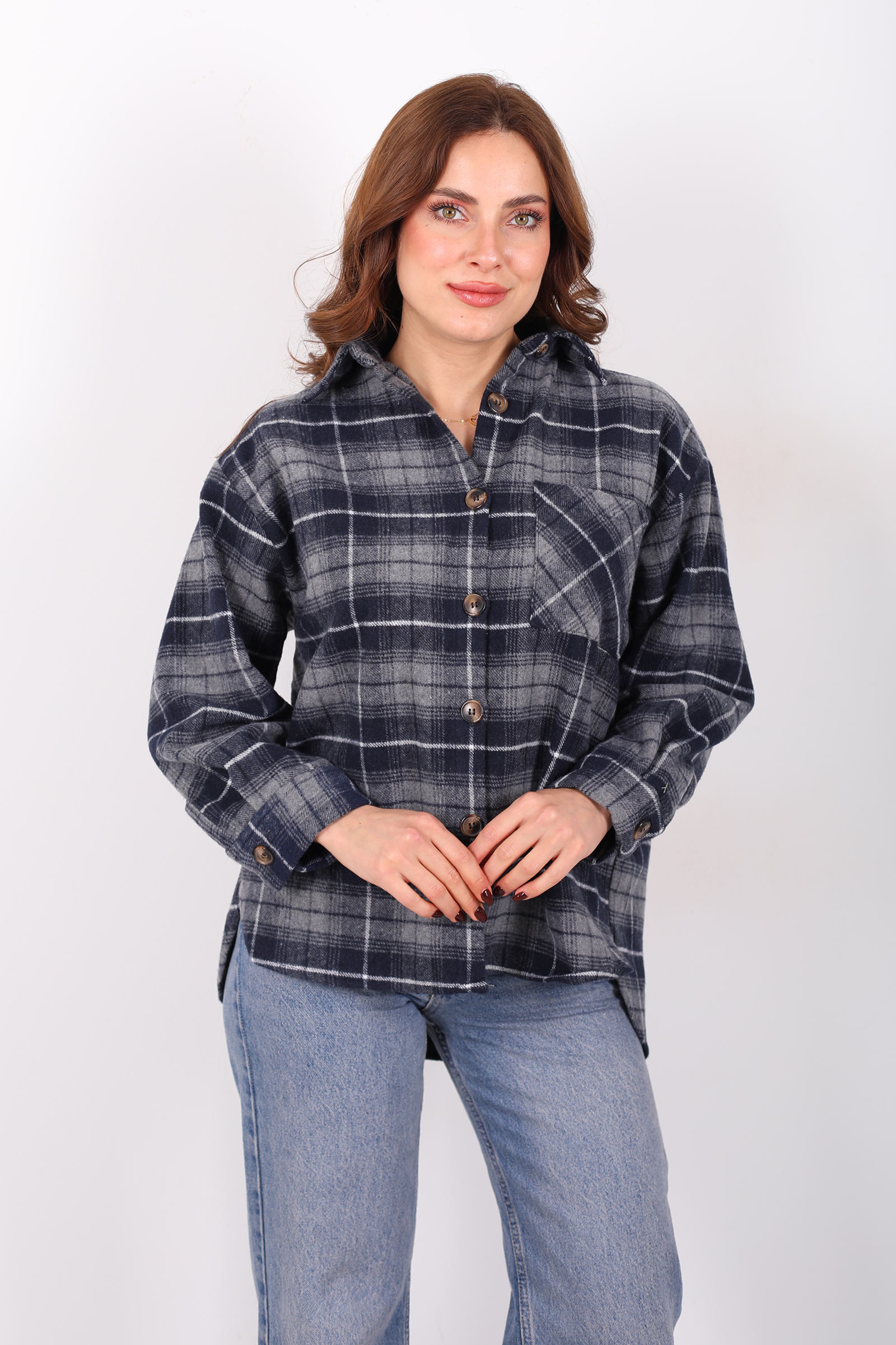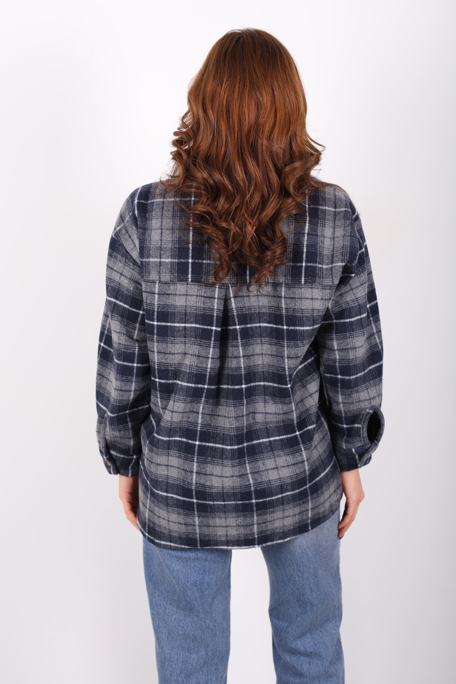 Tek Cepli Ekose Füme Kadın Oduncu Gömlek
