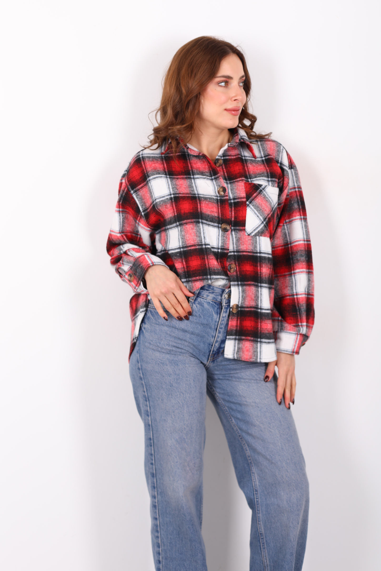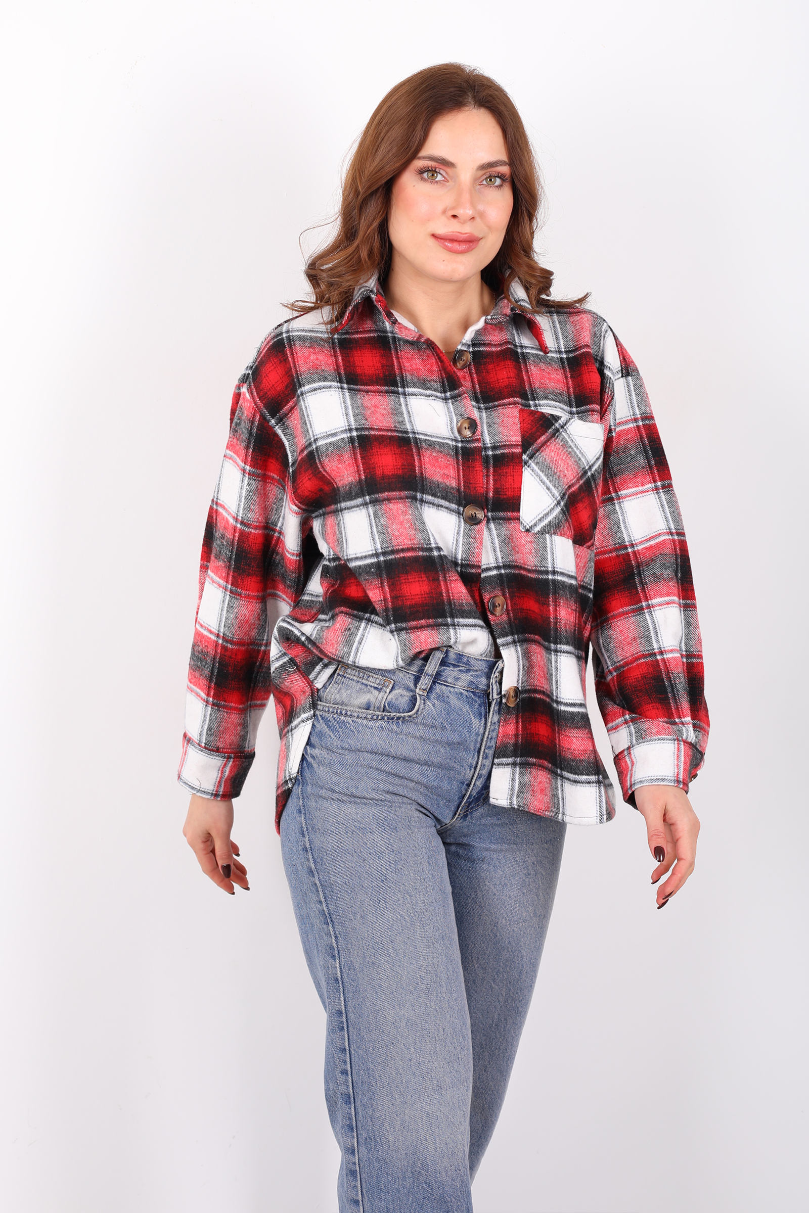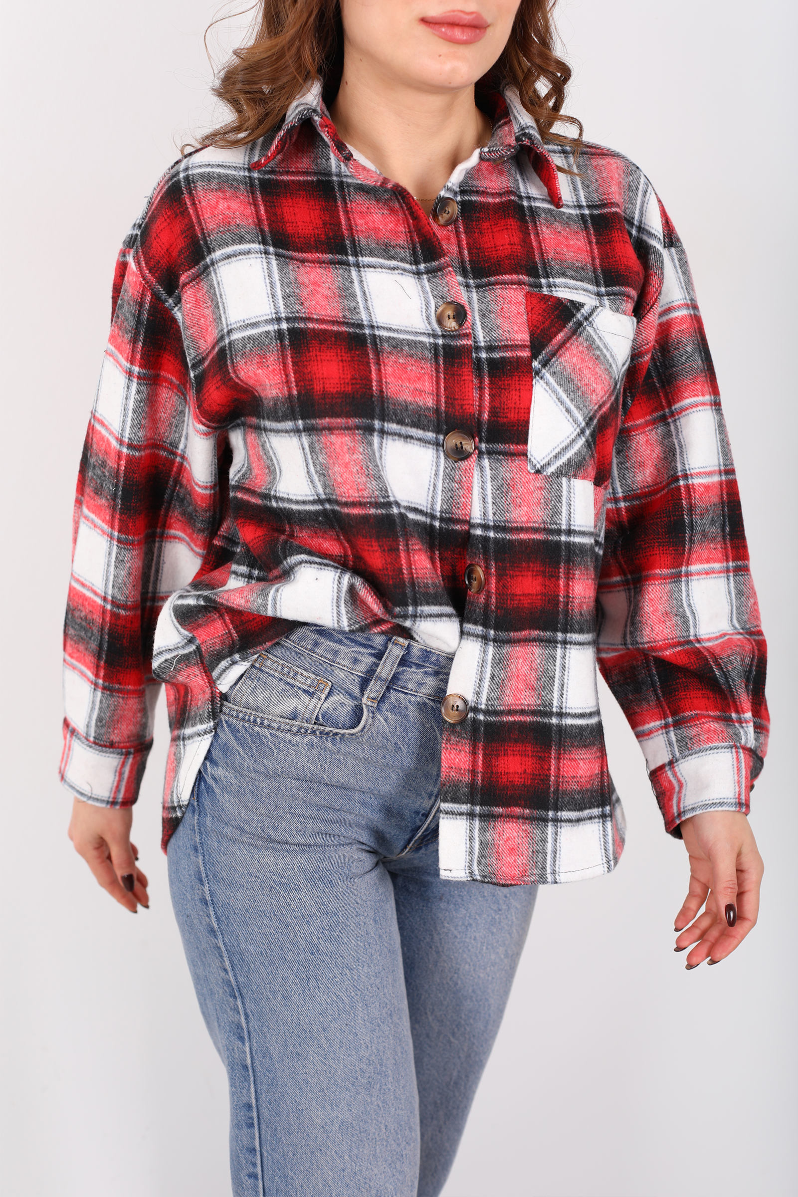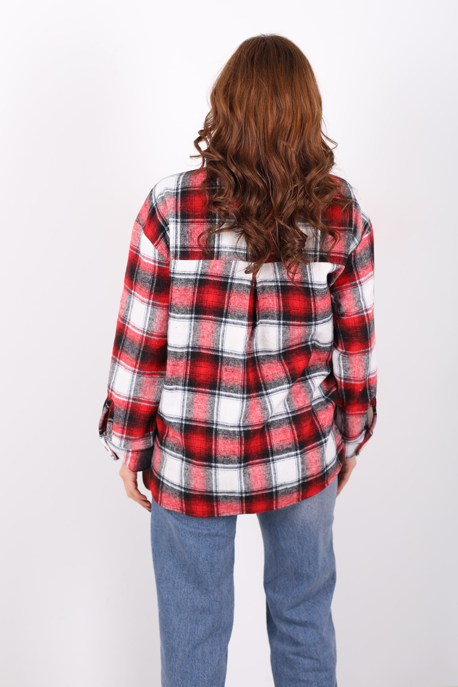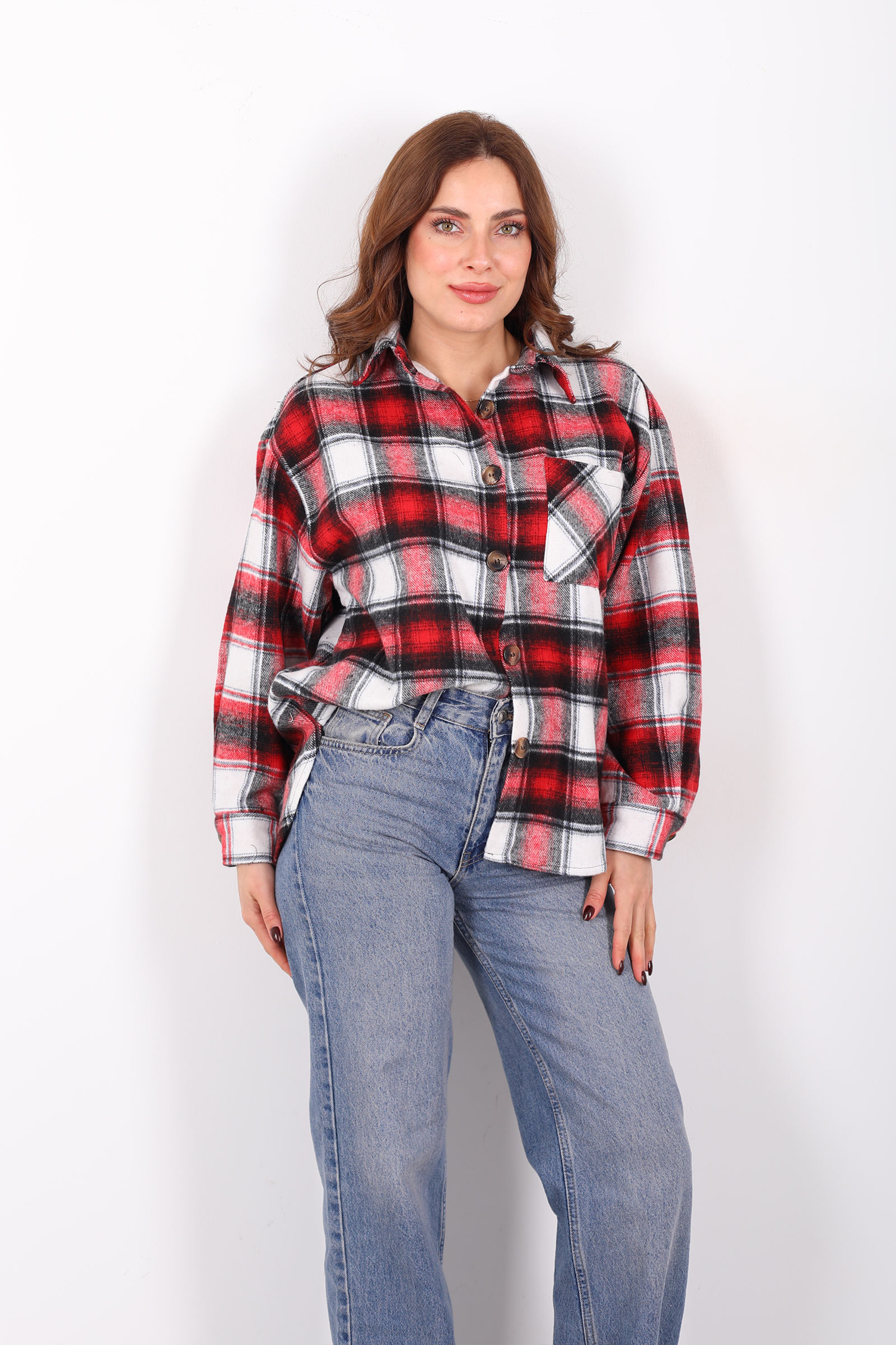 Tek Cepli Ekose Kırmızı Kadın Oduncu Gömlek