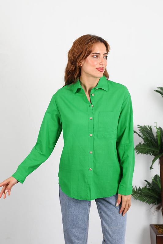 Zümrüt yeşilinin eşsiz tonuyla öne çıkan Tek Cepli Kadın Filam Keten Gömlek, %100 doğal keten kumaşı sayesinde sıcak havalarda serin ve rahat kalmanızı sağlar. Bol kesimi, gün boyu konforlu hareket etmenize olanak tanırken, tek cep detayı gömleğe zarif ve modern bir dokunuş ekler. Nefes alabilen yapısı sayesinde hem şıklığı hem de rahatlığı bir arada sunan bu gömlek, kaliteli yerli üretimiyle uzun süre gardırobunuzda yerini koruyacak. Hem günlük kombinlerinizde hem özel anlarınızda stilinizi tamamlayacak ideal bir parça.