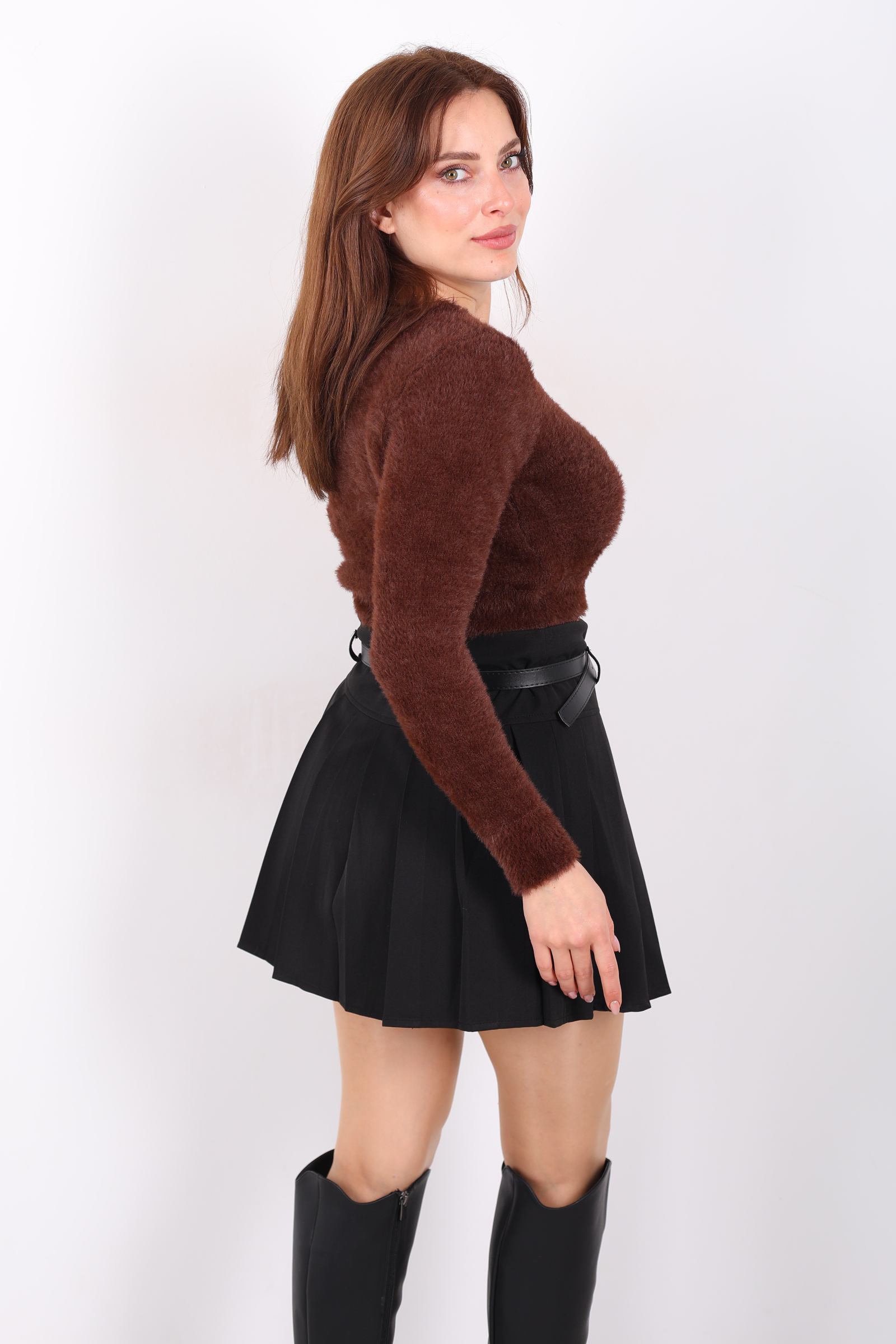 Bu tek kol kahverengi sakallı kazak, sıradışı kesimiyle gardırobunuza farklı bir hava katar. Sakallı triko yapısı, yumuşak hissi ve hacimli dokusuyla dikkat çekerken tek koldan tasarlanan silueti moda odaklı bir duruş sağlar. Kahverengi tonu, jean veya kumaş altlarla uyum içinde kombinlenebilir; hafif esnekliği sayesinde gün boyu konfor sunar. Minimal detaylara sahip bu parça, klasik kazak modellerinden uzak bir stil arayanların tercihi olacaktır.