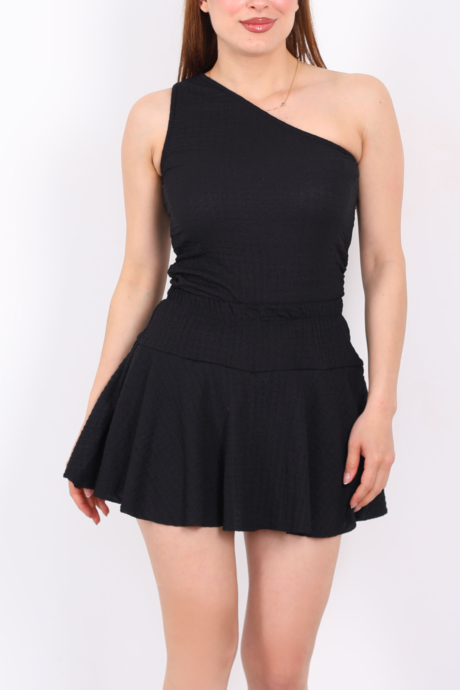 Beli Lastikli Bubble Siyah Kadın Mini Şort Etek