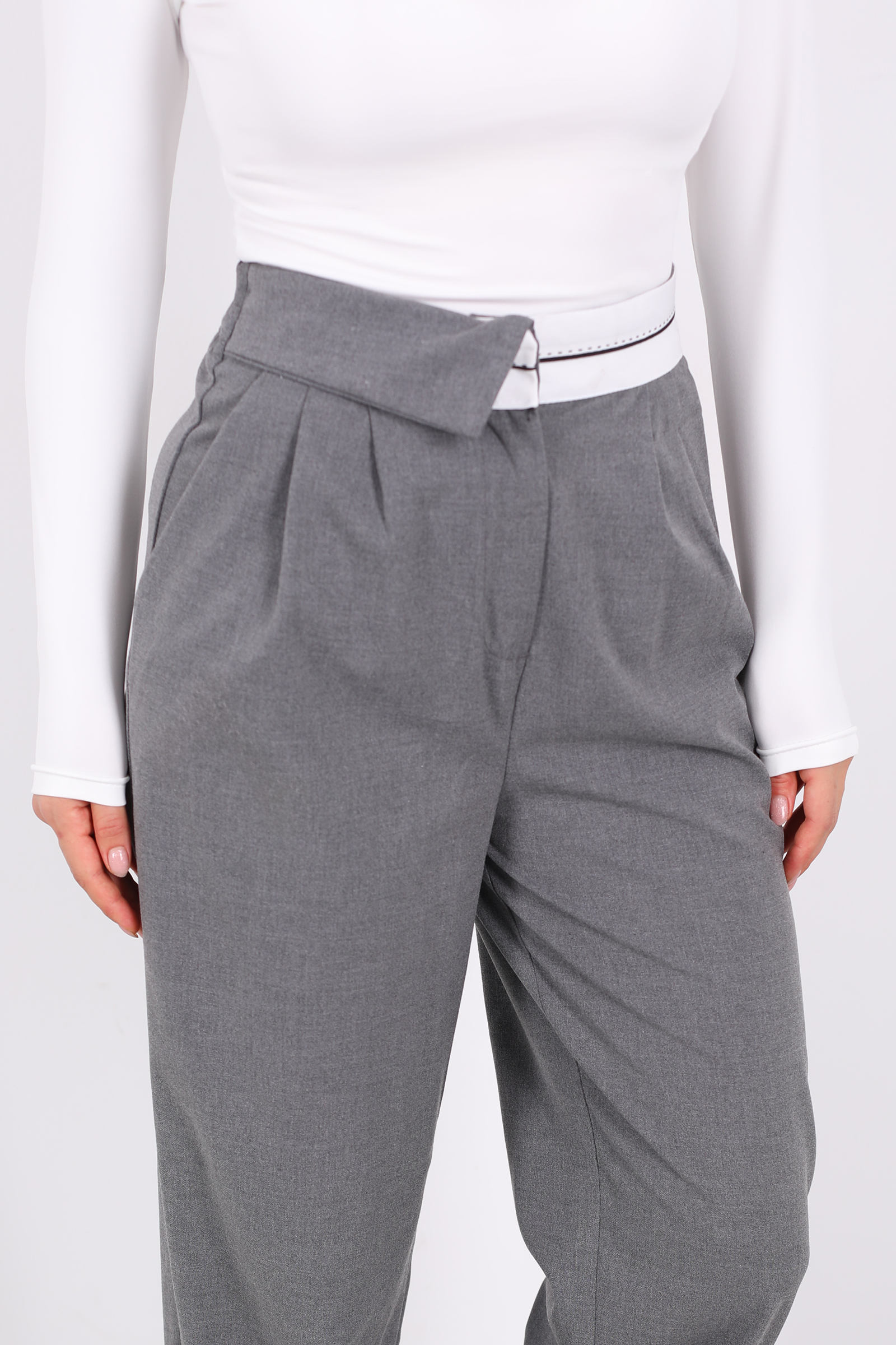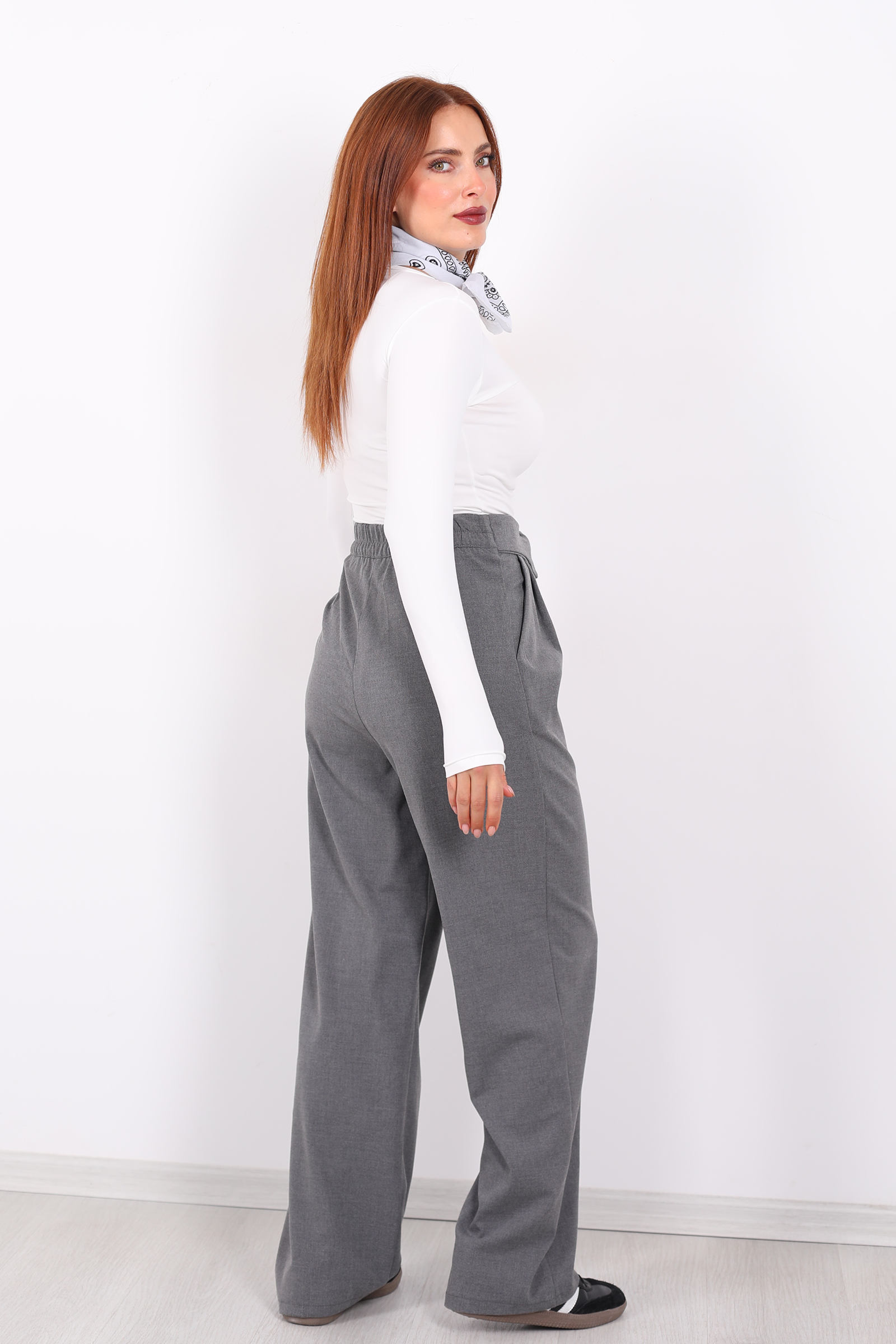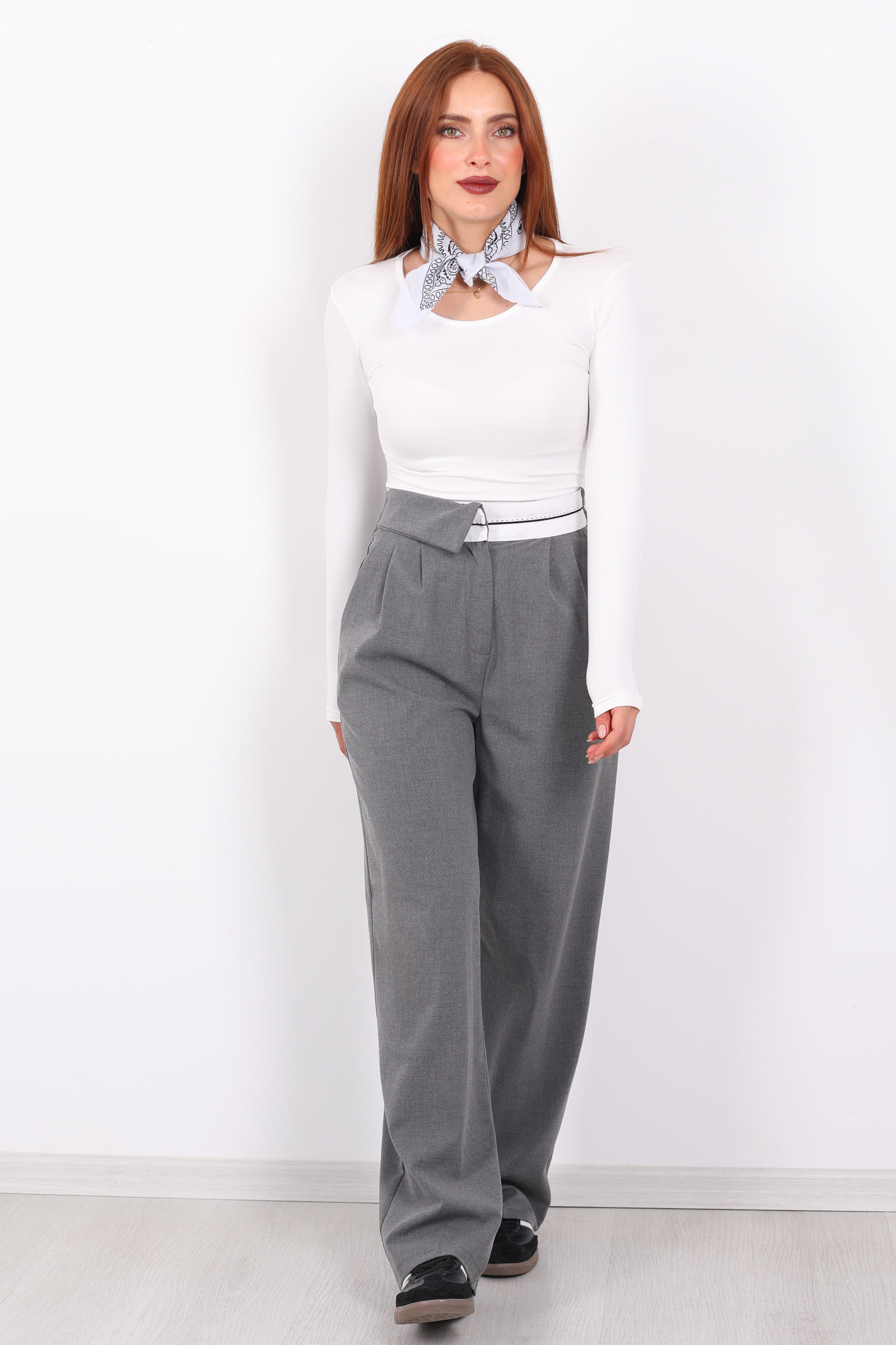 Şık ve sofistike bir dokunuş arayan kadınlar için tasarlanmış bu ters kemer detaylı bol paça antrasit kumaş pantolon, modern kesimiyle dikkat çekiyor. 108 cm’lik paça boyu ve bol paça kesimi sayesinde hem rahat bir duruş hem zarif bir siluet sunuyor. Beldeki ters kemer detayı, klasik kumaş pantolonlardan farklılaşarak tasarıma dinamik ve stil dolu bir hava kazandırıyor.