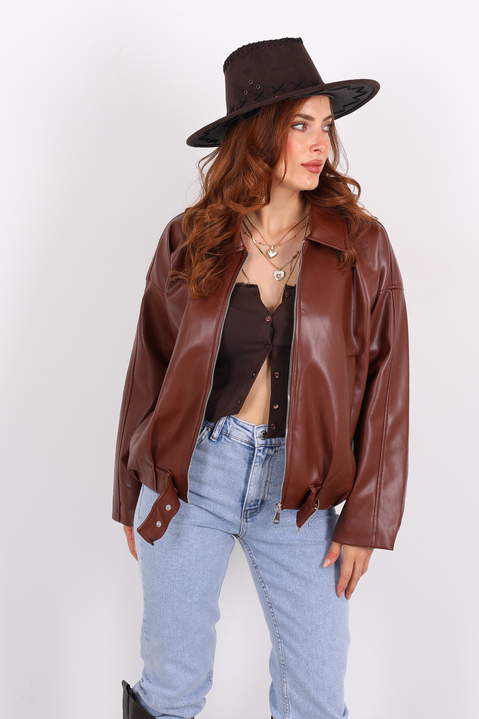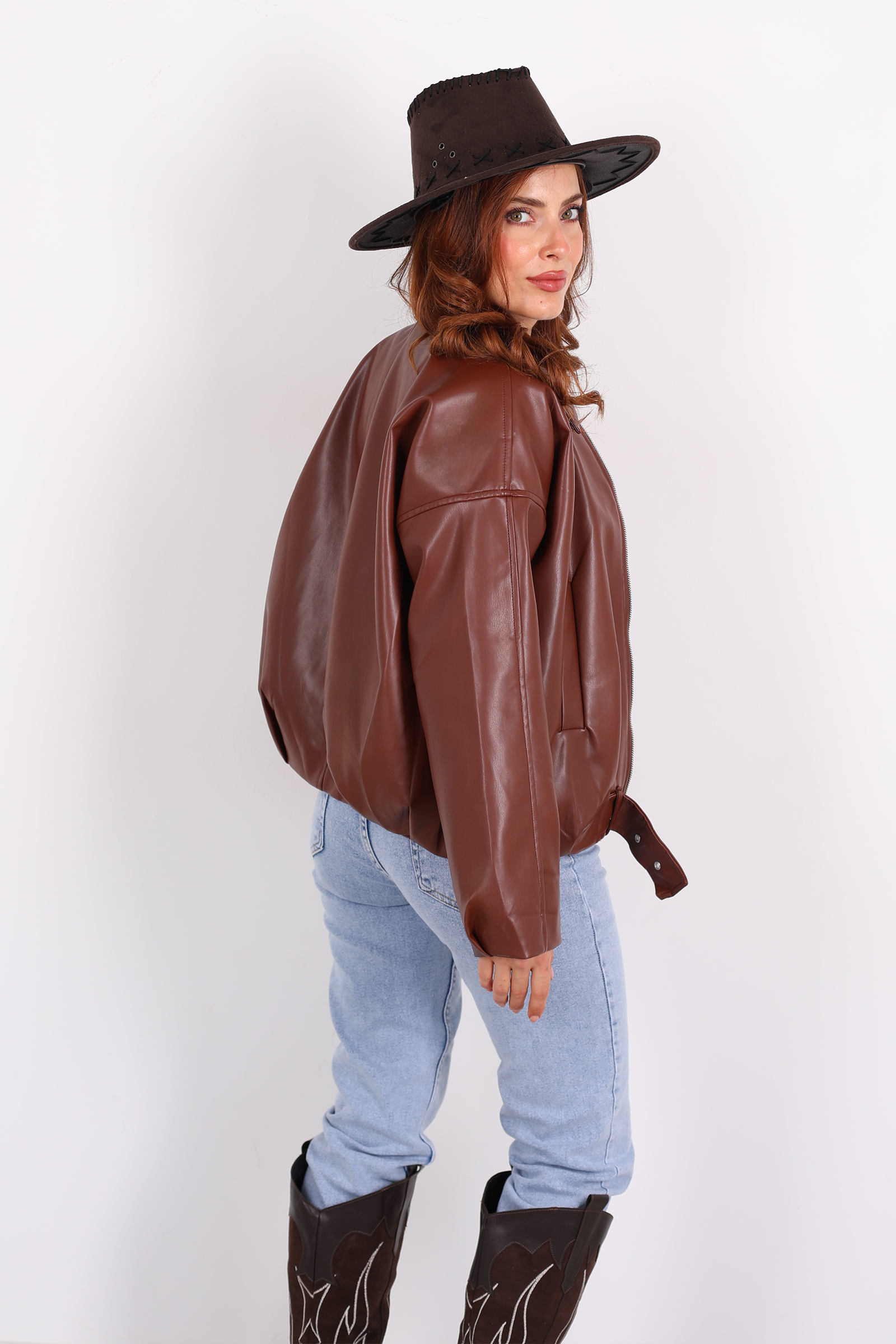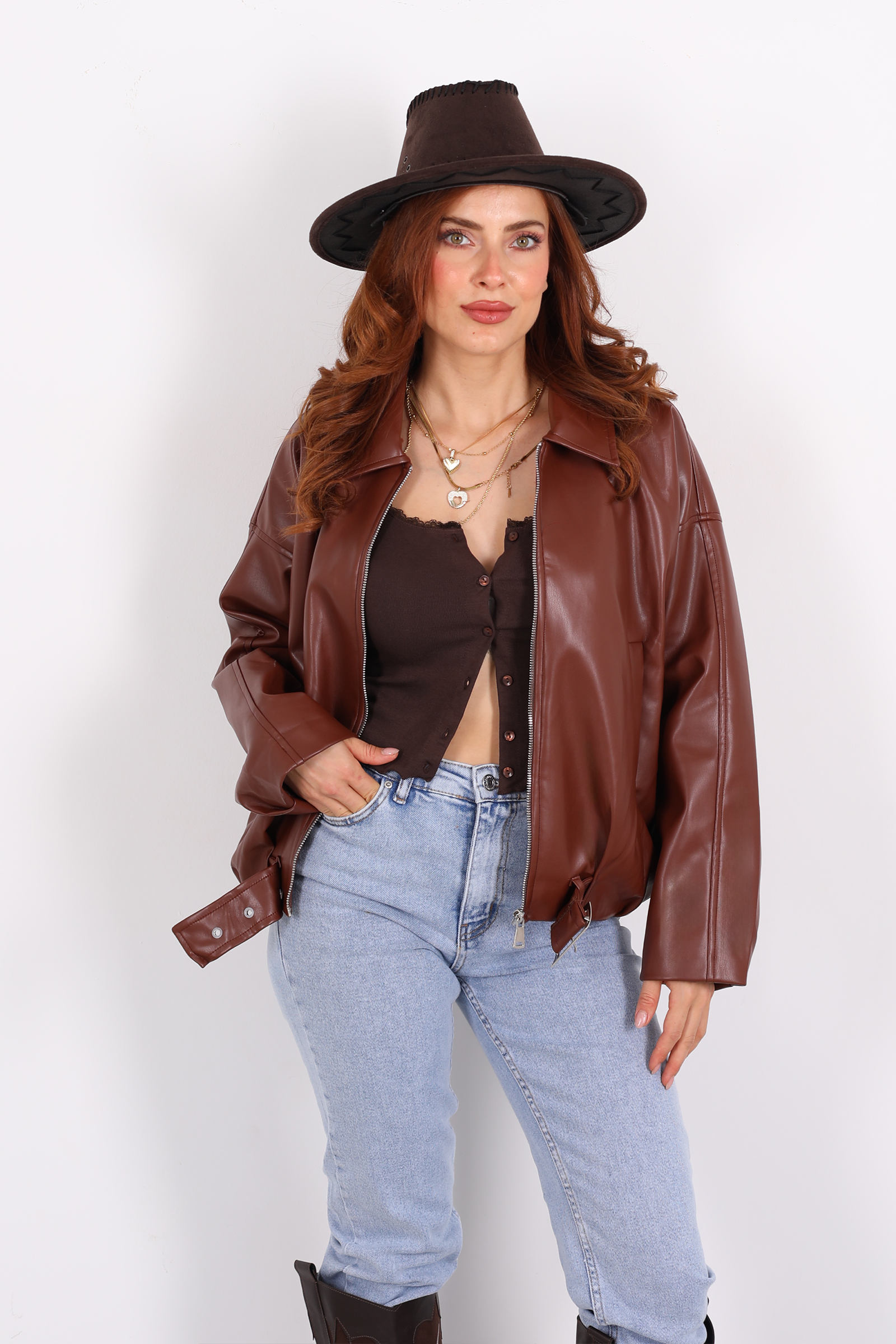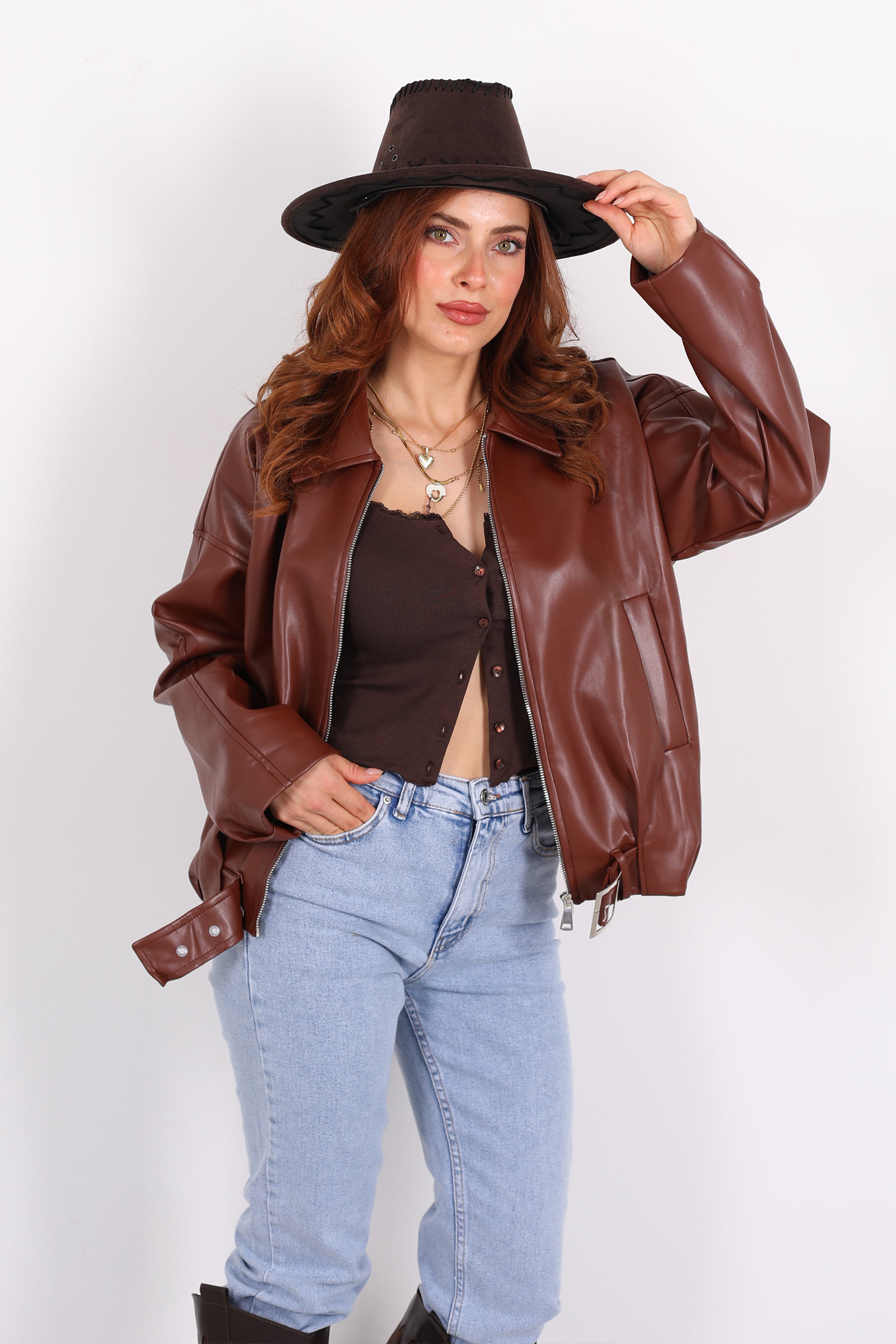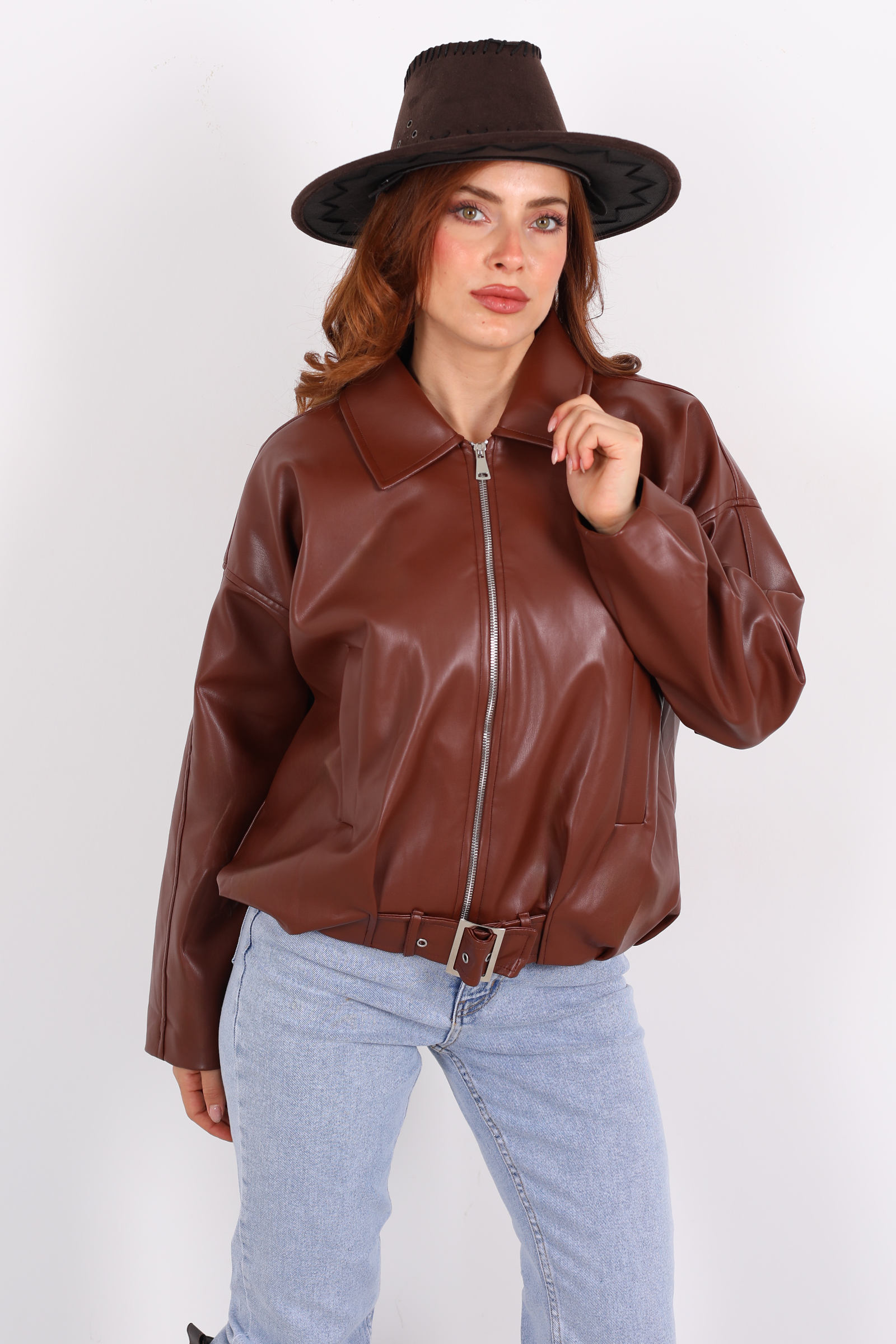 Kahverenginin sıcak tonuyla öne çıkan bu toka detaylı, kemerli kadın deri mont, modern ve şık bir dış giyim parçası olarak gardırobunuza karakter katıyor. Beldeki kemer detayı, montun siluetini öne çıkarırken, toka aksesuarı şıklık ve detay zenginliği sağlıyor. Suni deri dokusu, dayanıklı ve hafif yapısıyla rahat bir kullanım sunuyor.