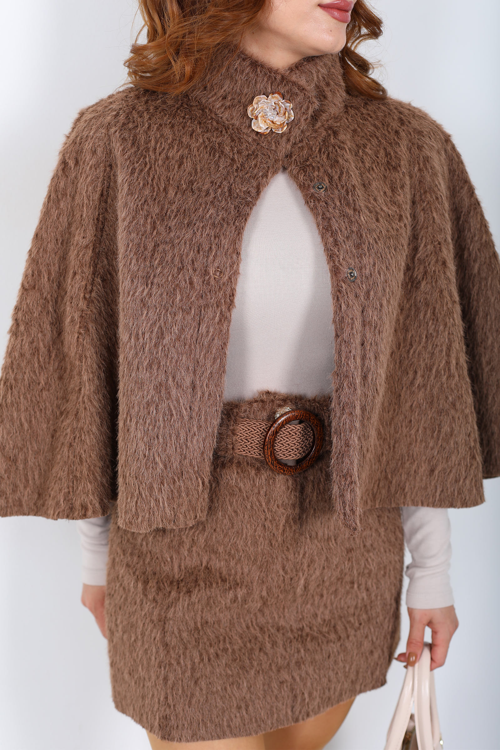 Kuşaklı Kaşe Kahverengi Kadın Kaban