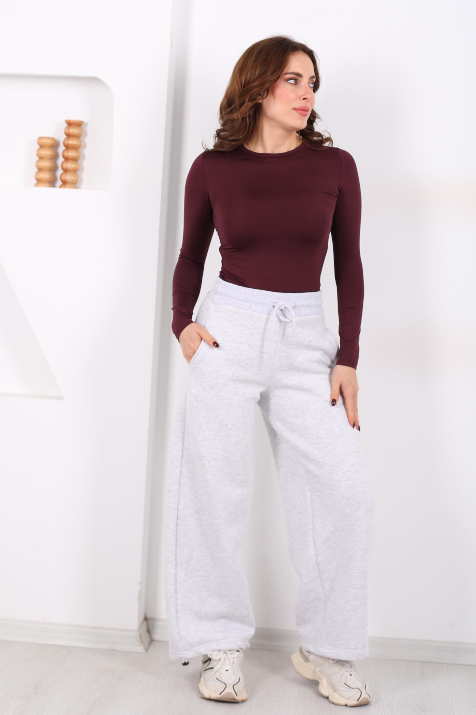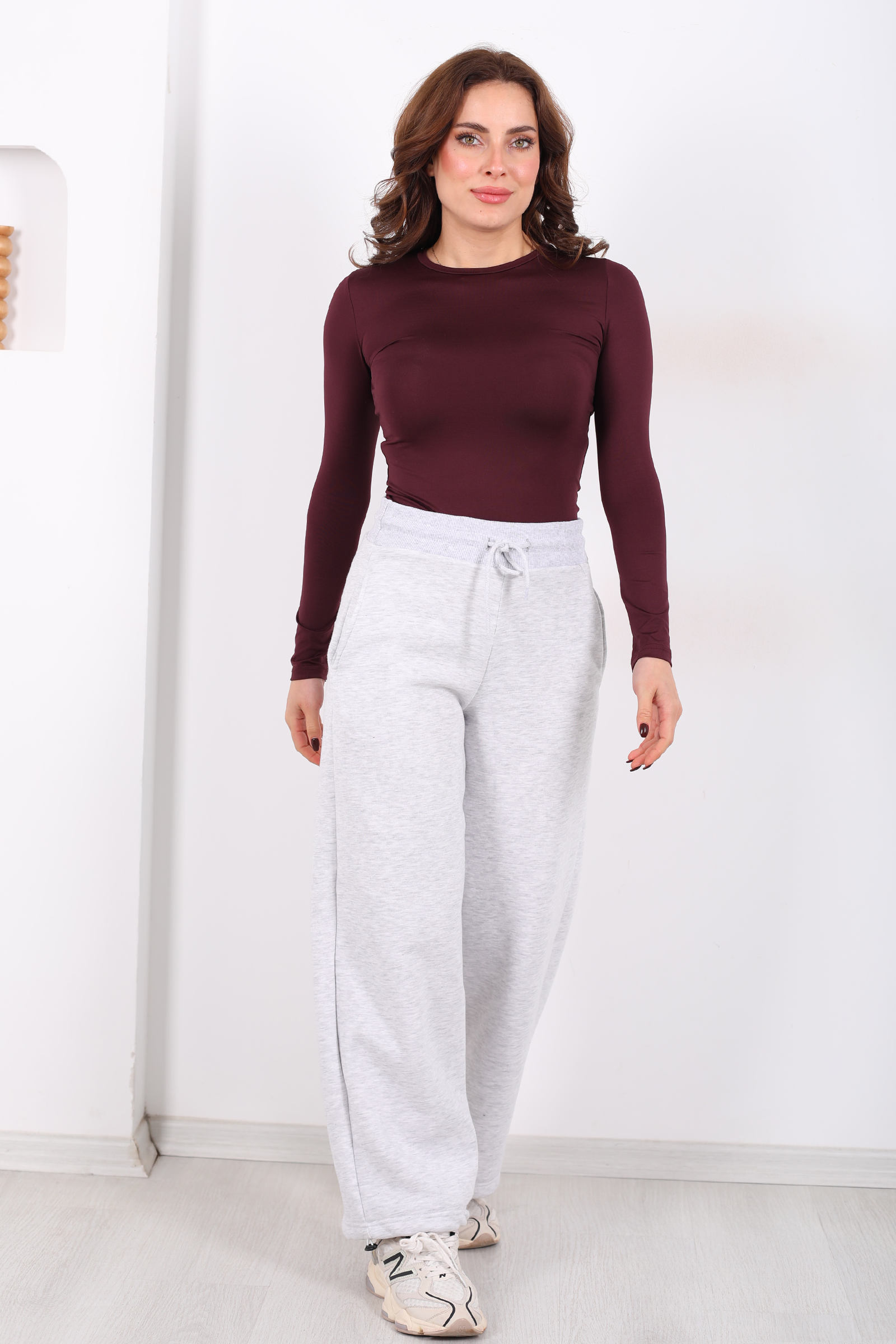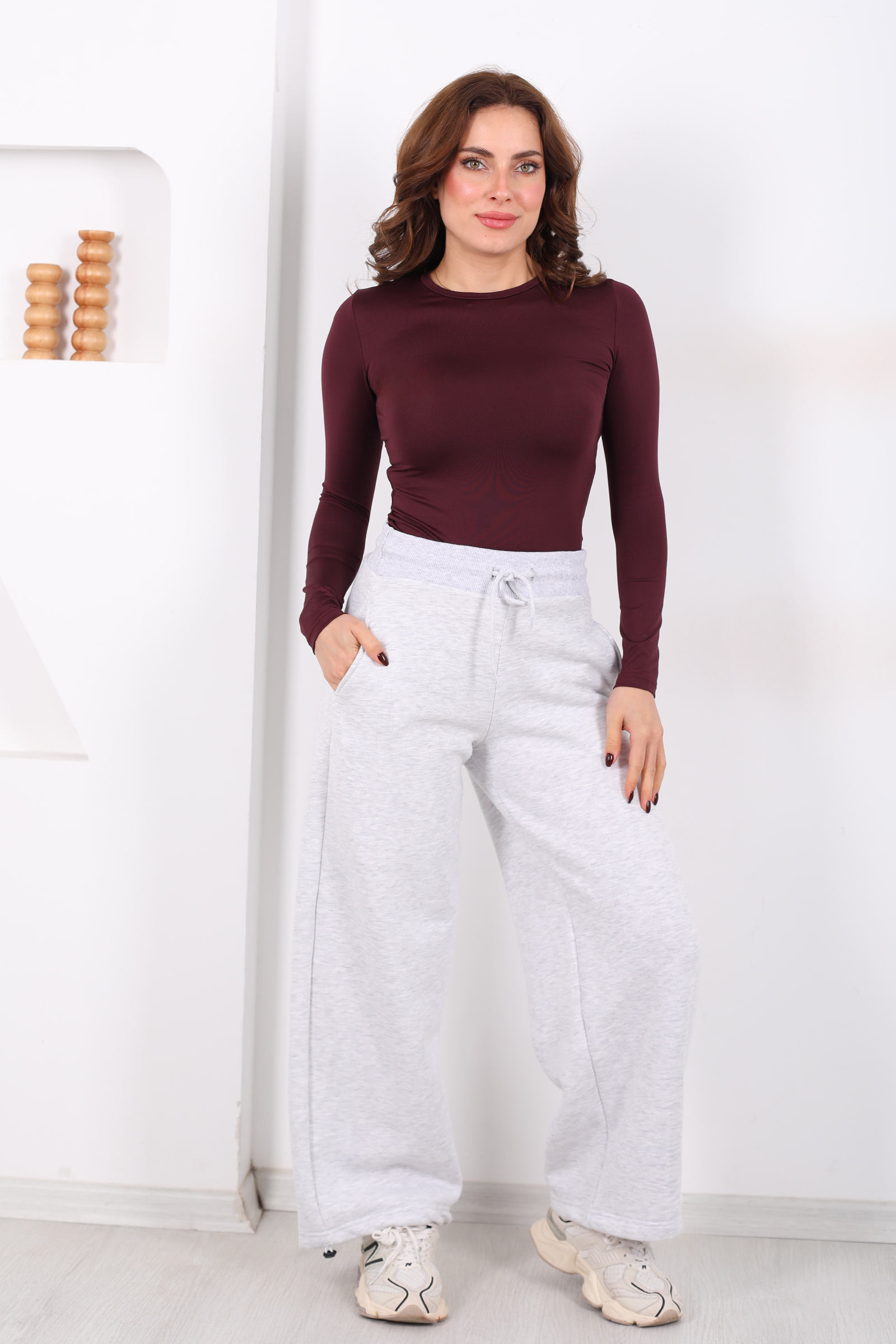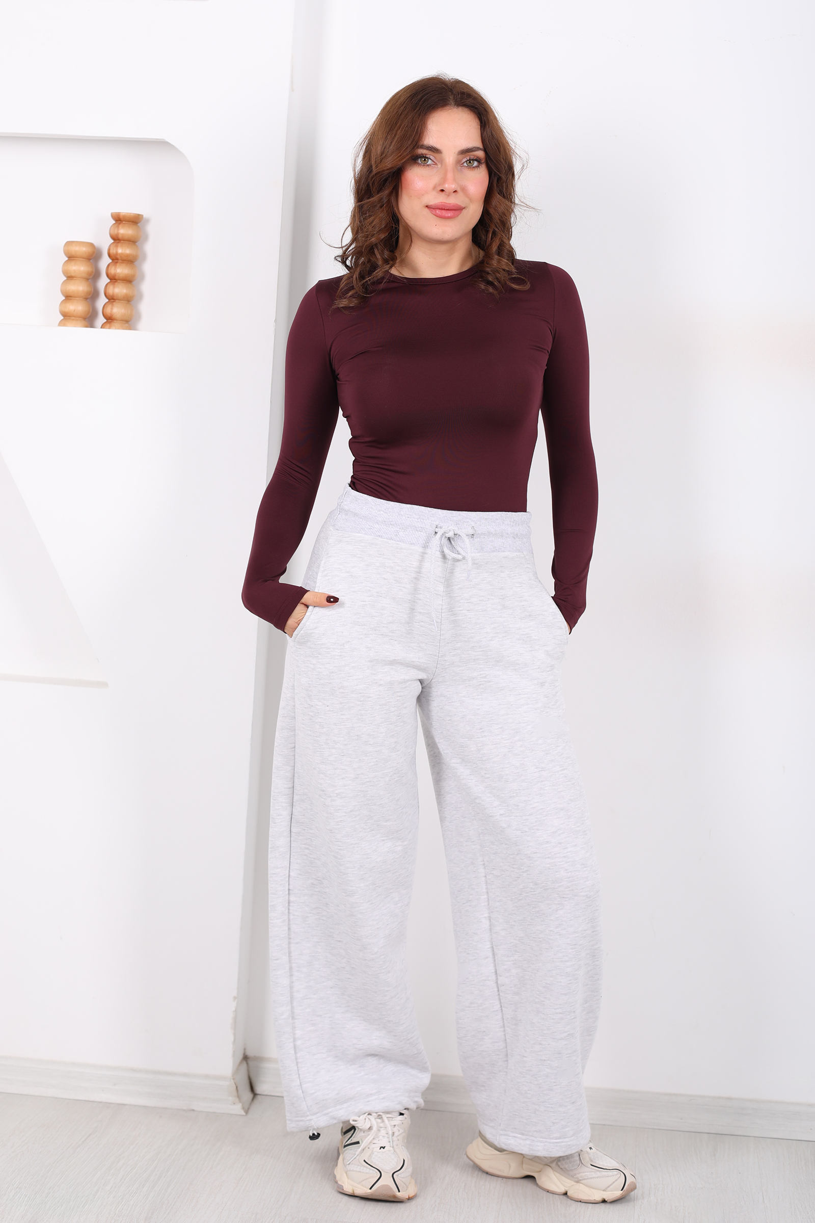 Üç İplik Paça Lastikli Gri Kadın Eşofman Altı