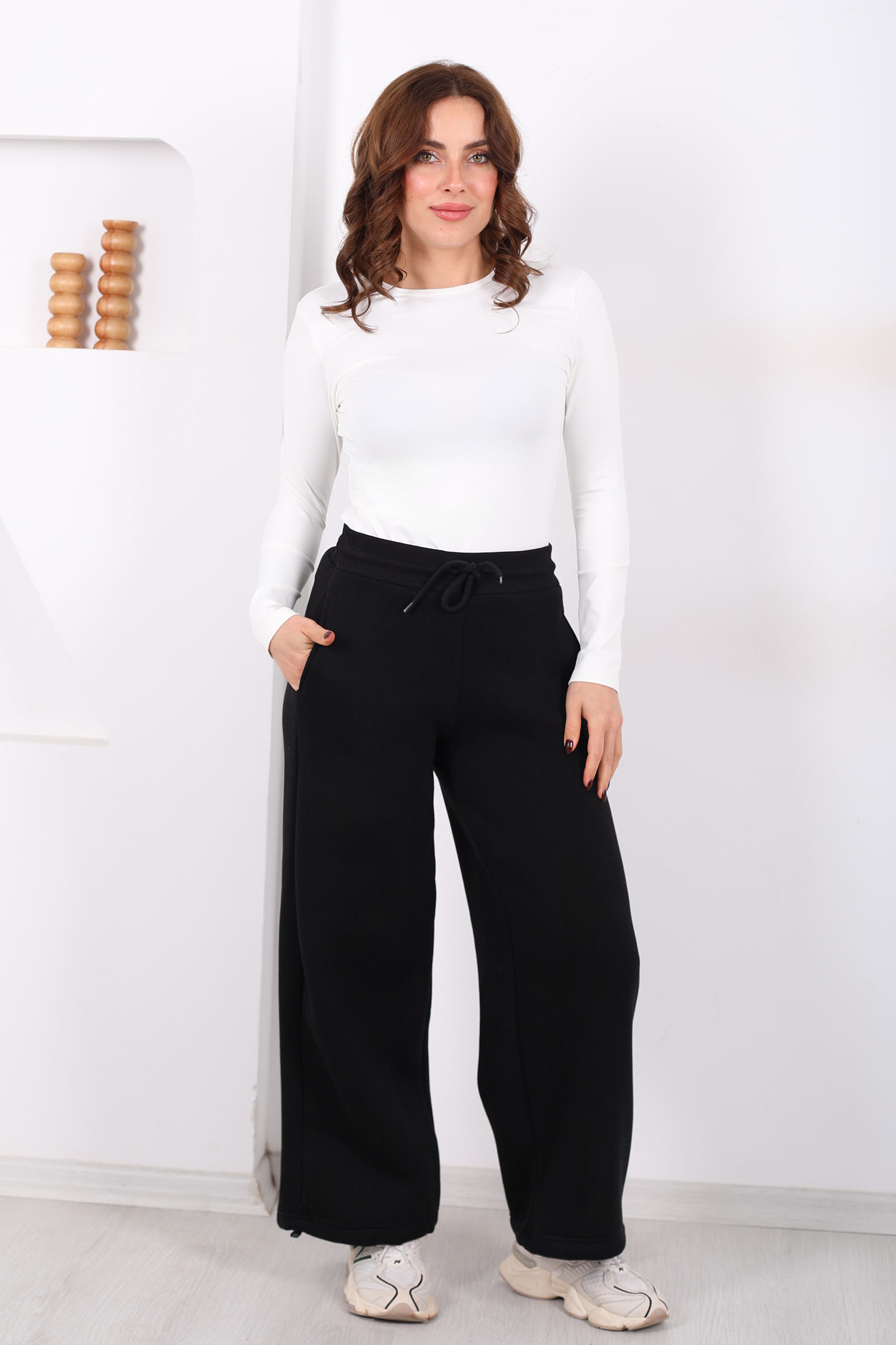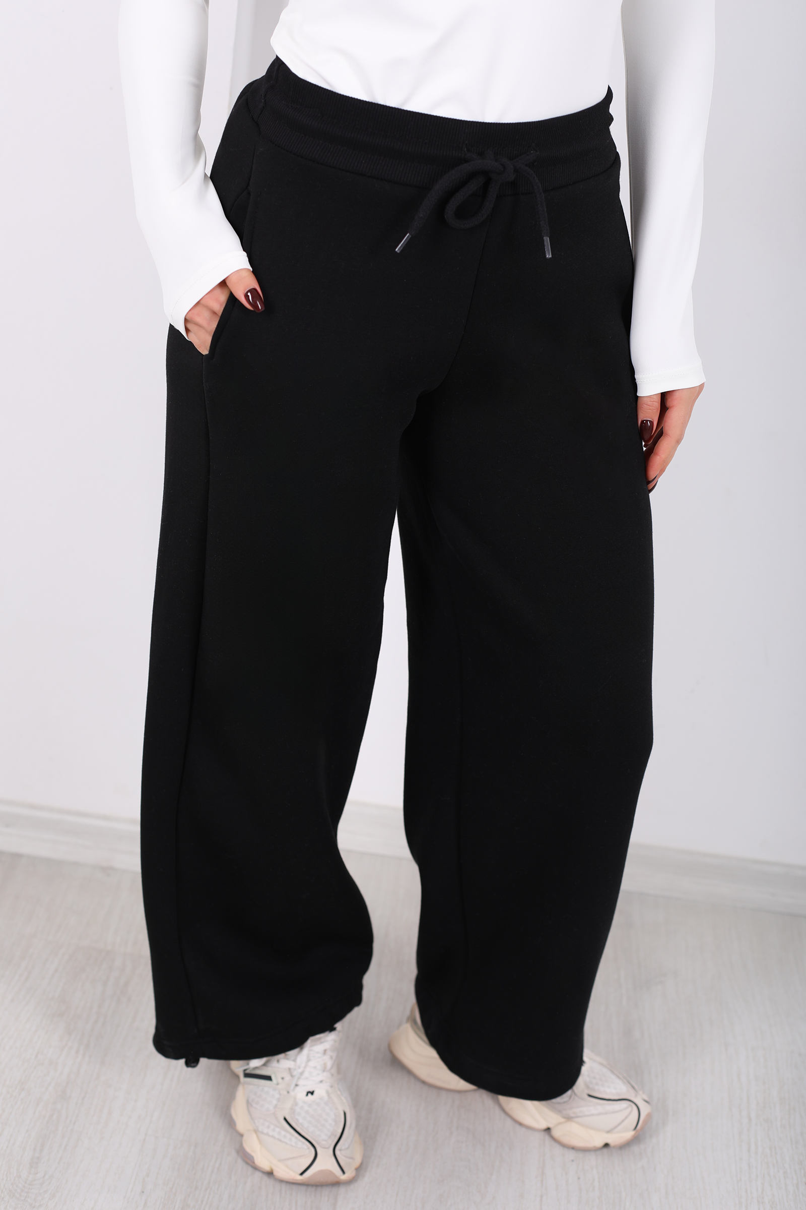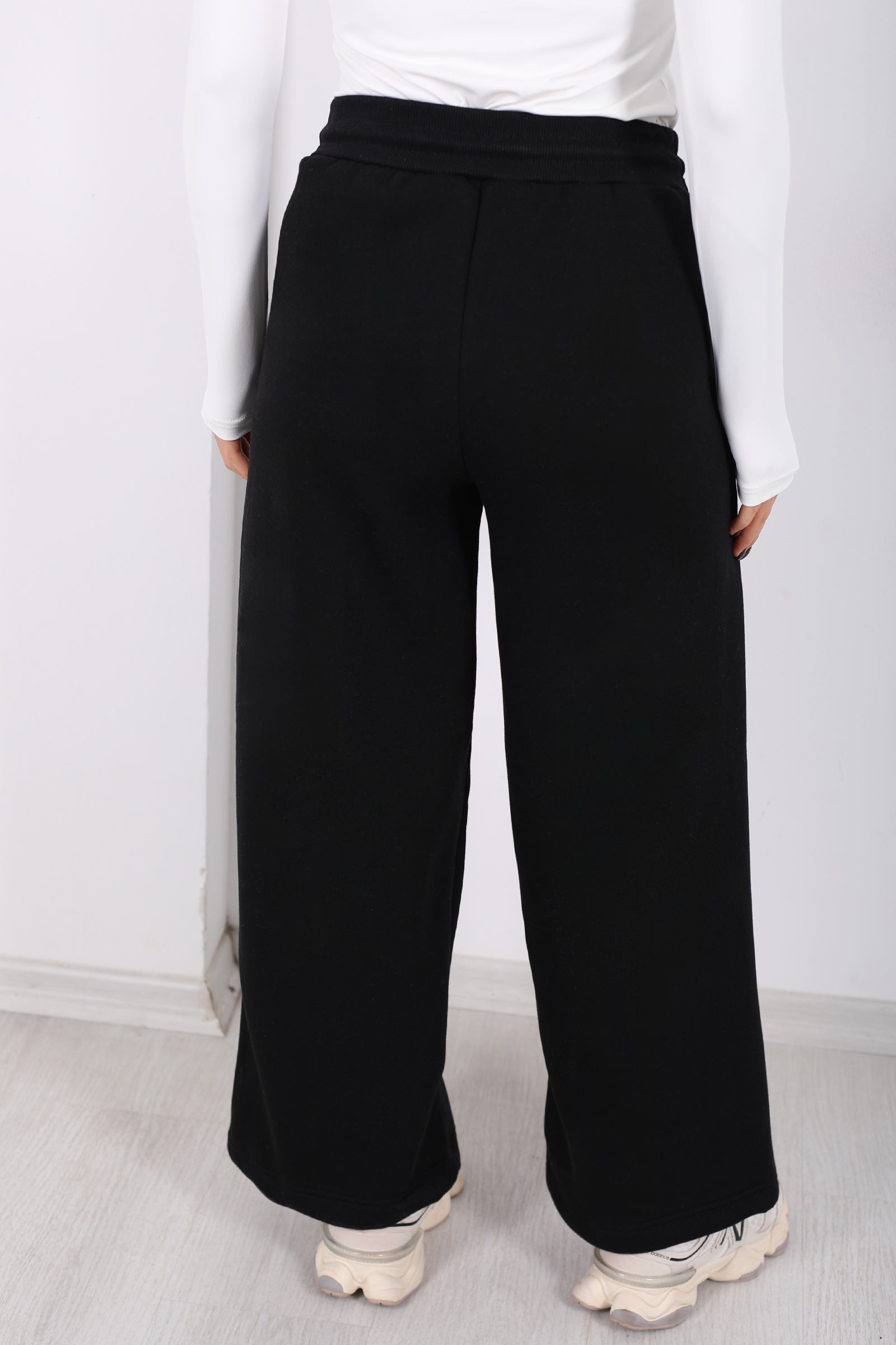Üç İplik Paça Lastikli Siyah Kadın Eşofman Altı