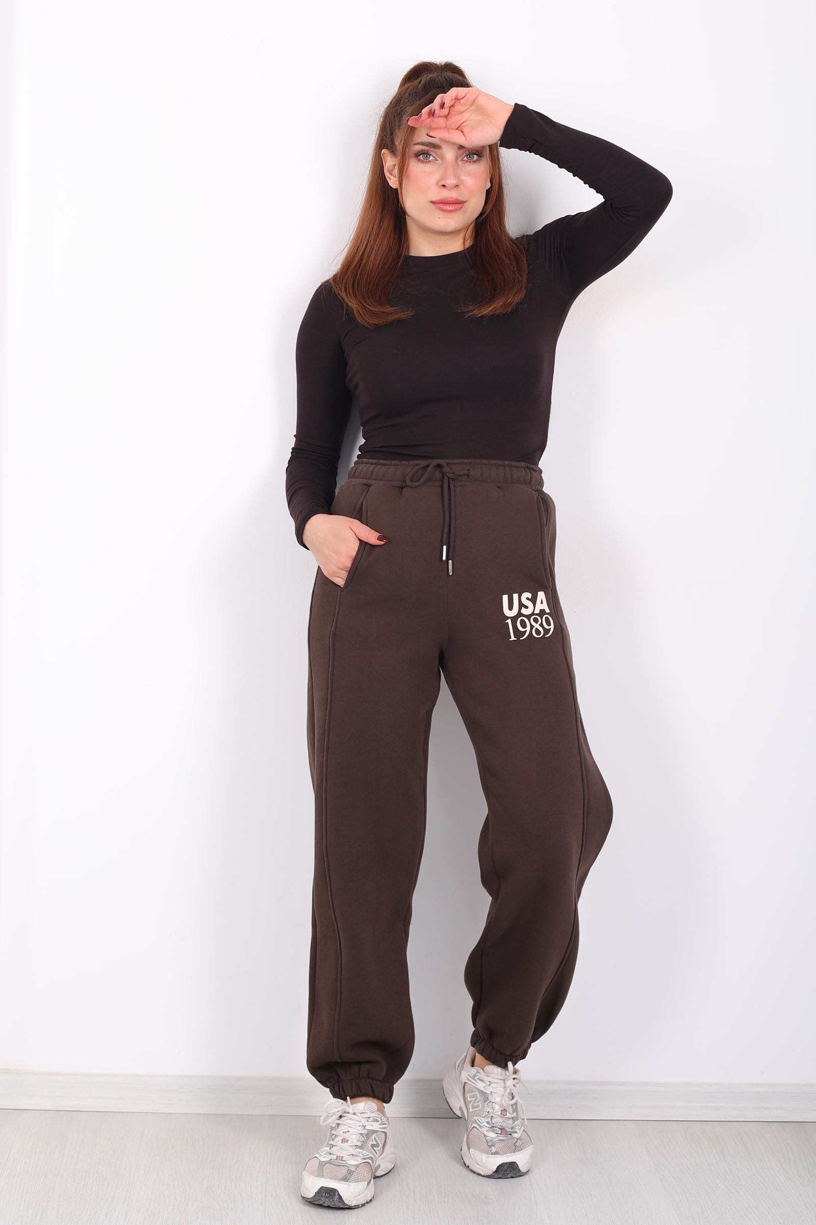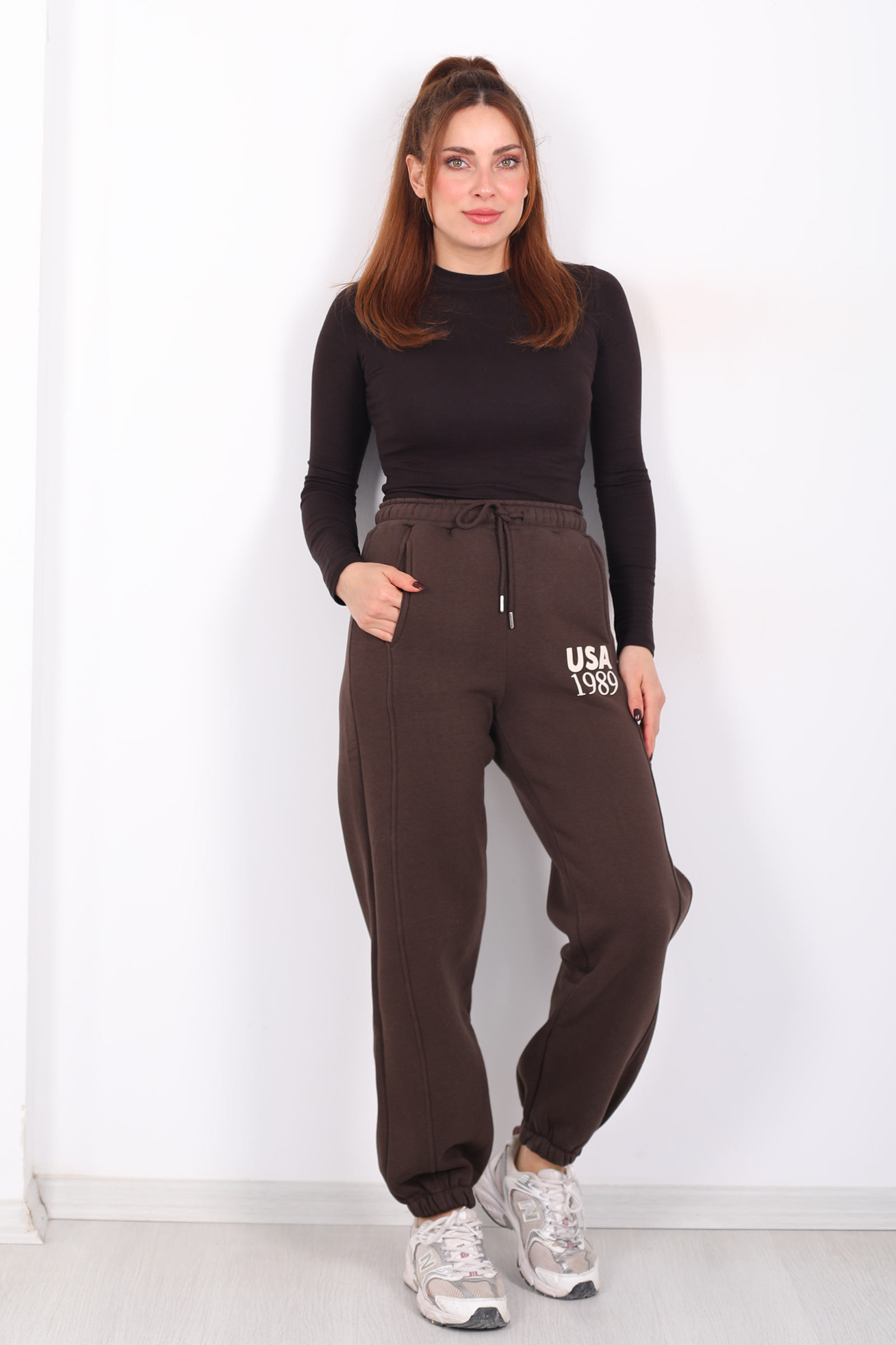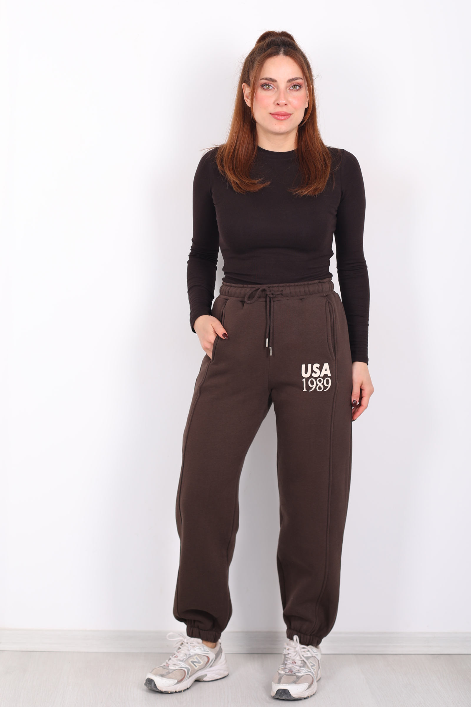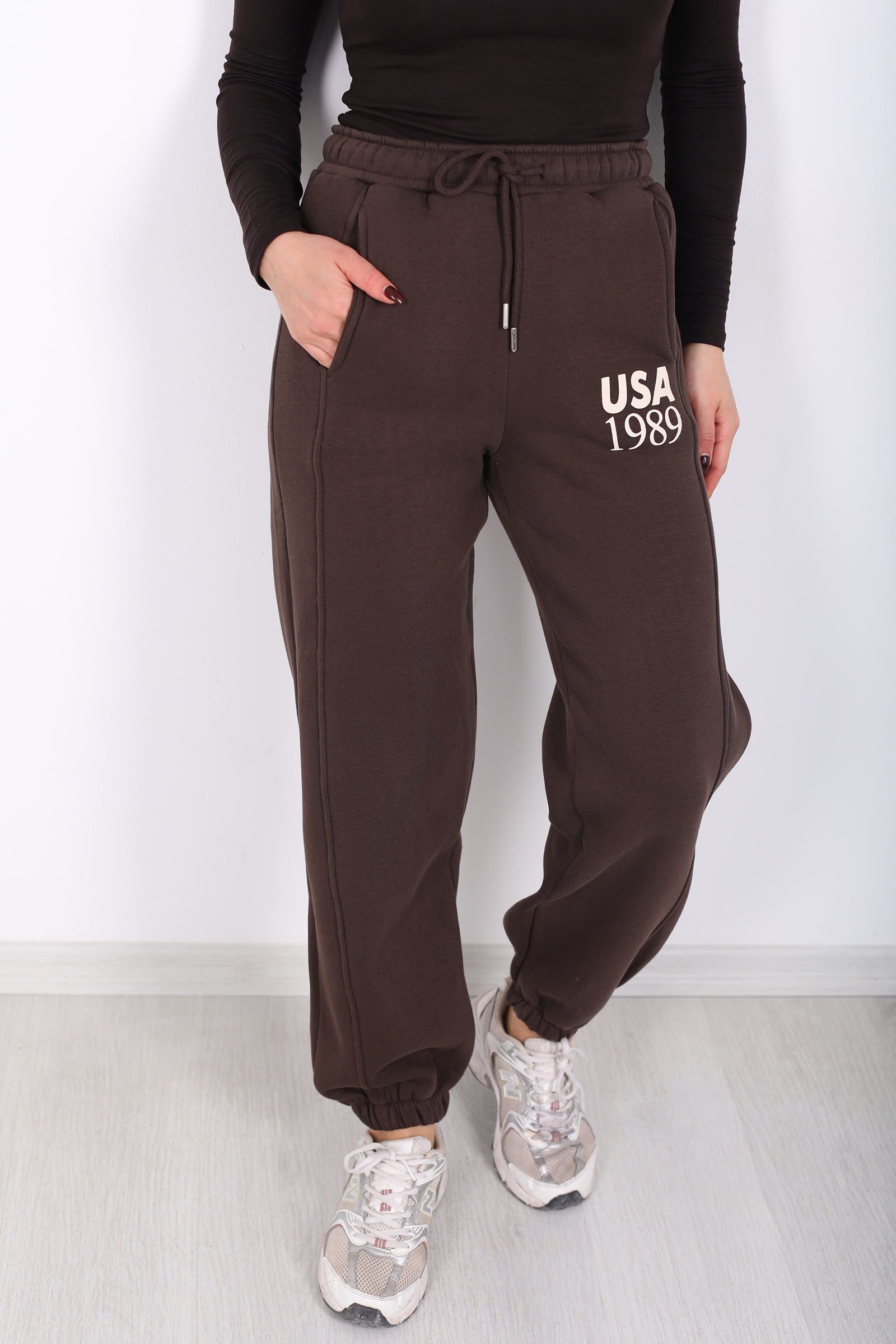 Acı kahve tonuyla tasarlanan bu üç iplik eşofman altı, USA yazılı paça detayıyla spor giyimi yeniden tanımlıyor. Beli ve paçası lastikli yapısı, hareket ederken size esnek ve konforlu bir uyum sunar. Günlük tempo içinde rahatlığı minimalist bir çizgiyle birleştiren bu model, sade üstlerle bile “cool athleisure” tarzı yakalamanıza imkân verir. Kumaşının yumuşak yapısı sabah yürüyüşünden akşam dinlenmesine kadar her adımda hoş bir his bırakır.