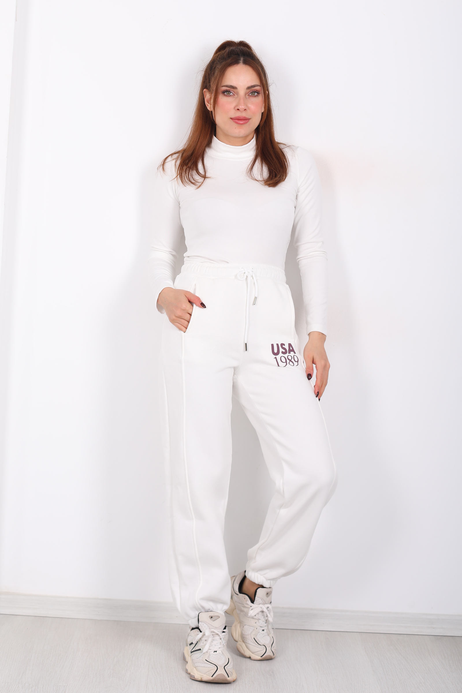 Ekru rengin dinginliğiyle tasarlanan bu üç iplik eşofman altı, paçasındaki USA yazısı ile sportif karakterini net bir şekilde ortaya koyuyor. Elastik bel ve paça lastiği, gün boyu hareket özgürlüğü sağlar; yumuşak kumaş ise sabah yürüyüşünden ev keyfine kadar konforu ön planda tutar. Altın nötr tonu, sade üstlerle kolay uyum sağlar ve casual kombinlerinize ferah bir dokunuş katar. Spor çizgiyi günlük giyime entegre etmek isteyenler için ideal bir parça.