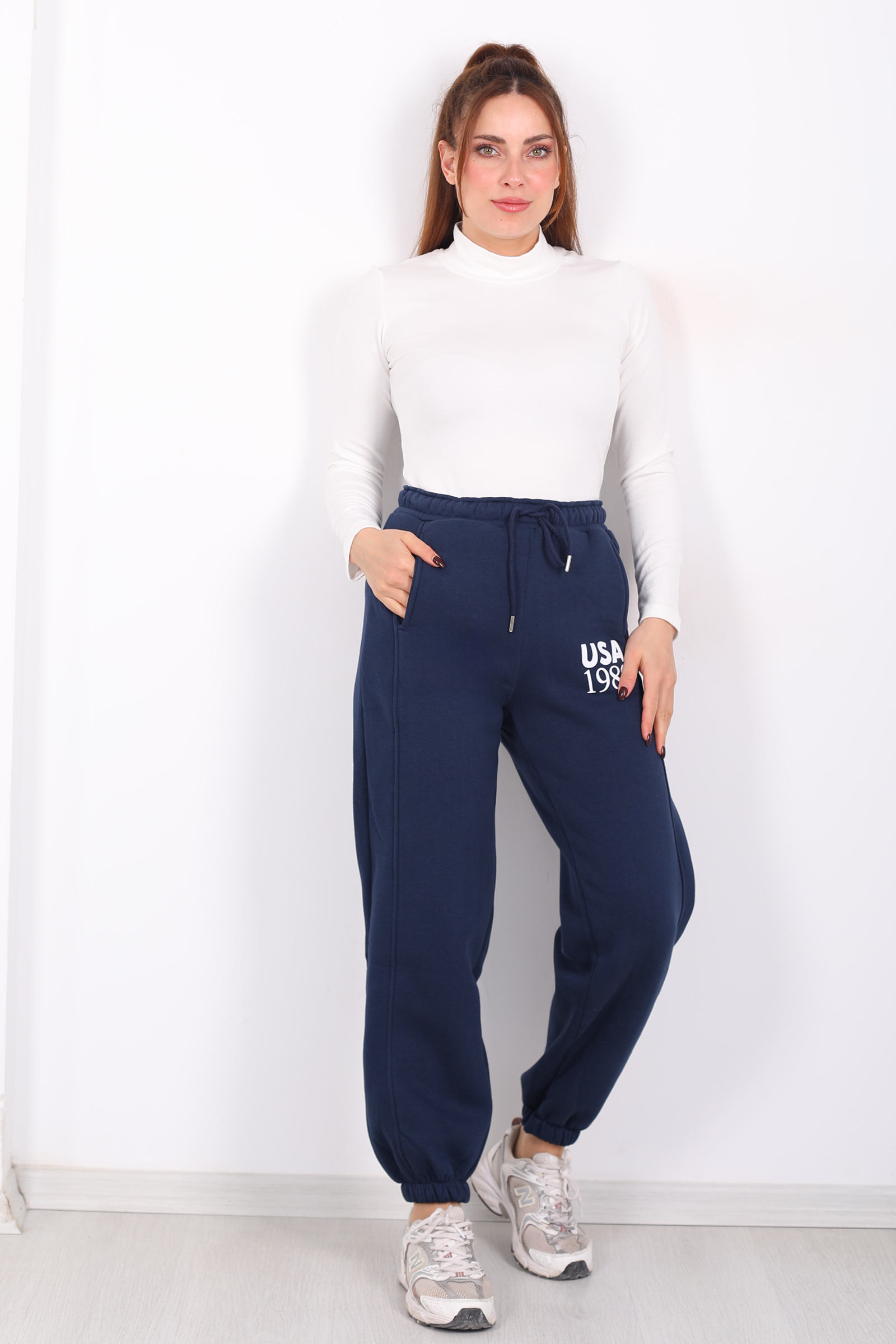 Lacivertin derin tonunda tasarlanan bu üç iplik eşofman altı, paçasındaki USA yazısıyla spor stilini enerjik bir ifadenin içine taşıyor. Elastik bel ve paça lastiği ergonomik bir uyum verirken kumaşın nefes alan yapısı gün boyu aktivitelerinizde konfor sağlar. Minimal tonuyla dikkat çeken bu model, sade üstler ve sportif parçalarla birleştiğinde stilinizi dengeli ama dinamik bir çizgide tanımlar.