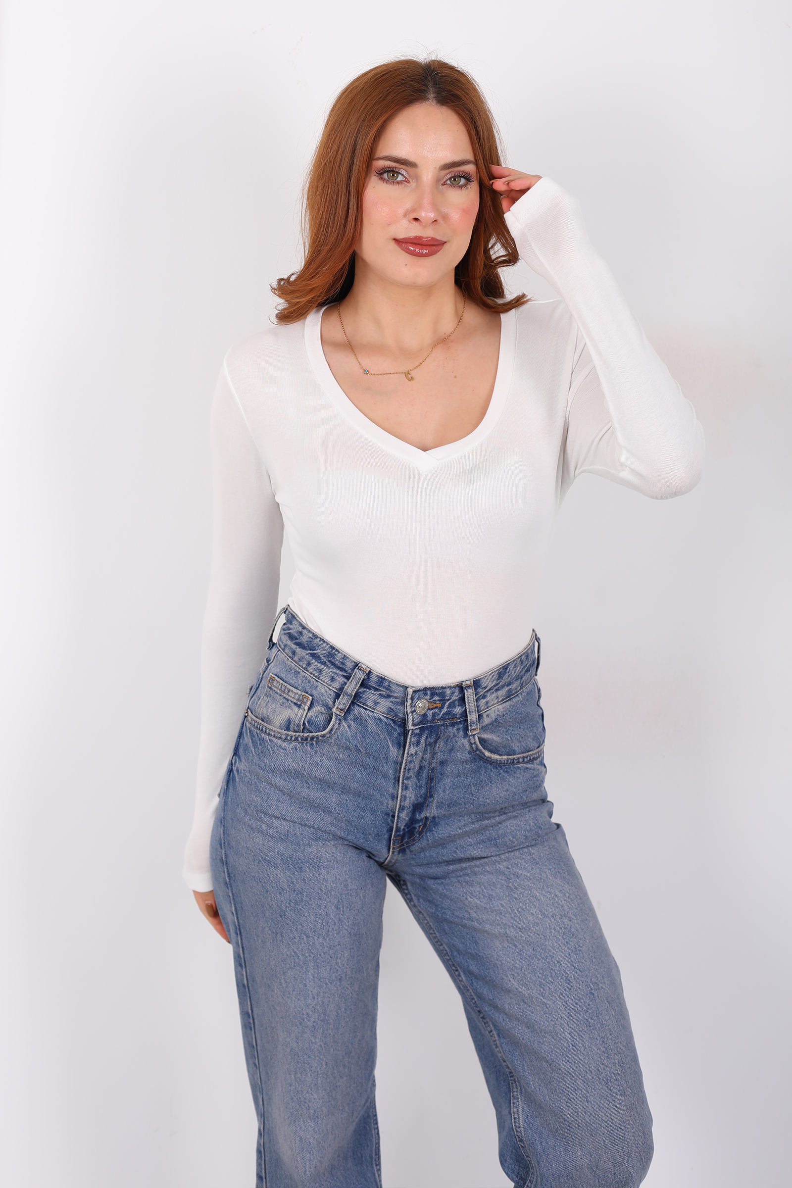 Kayık Yaka Basic Modal Ekru Kadın Bluz