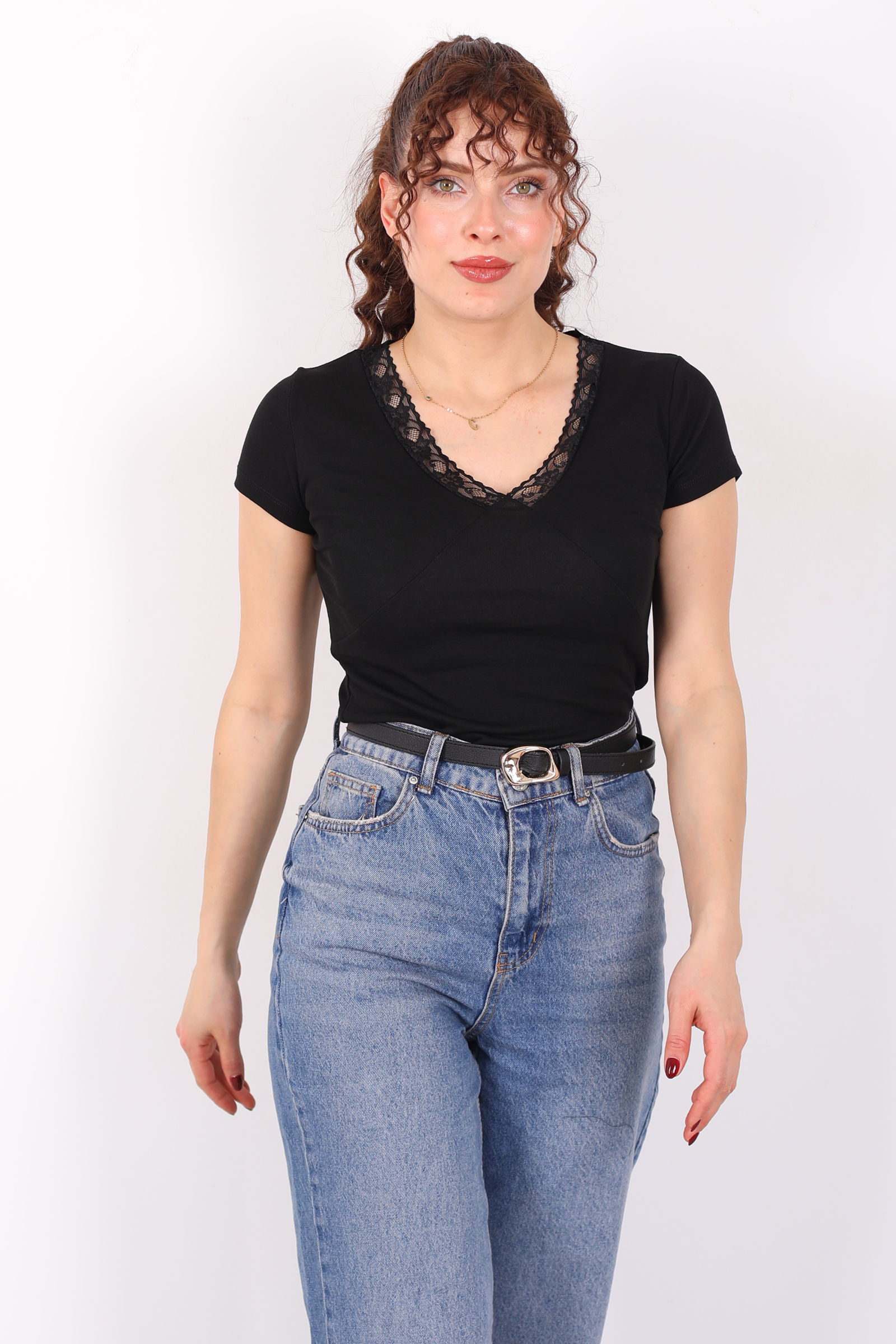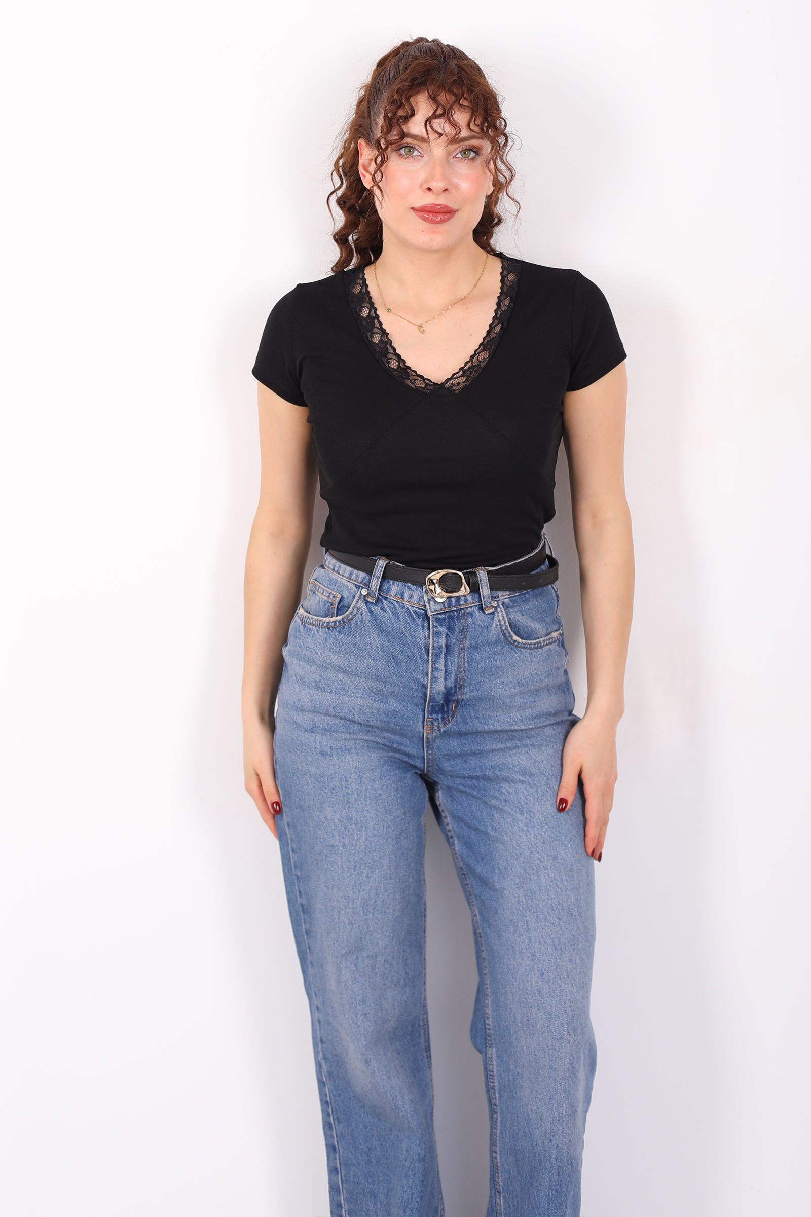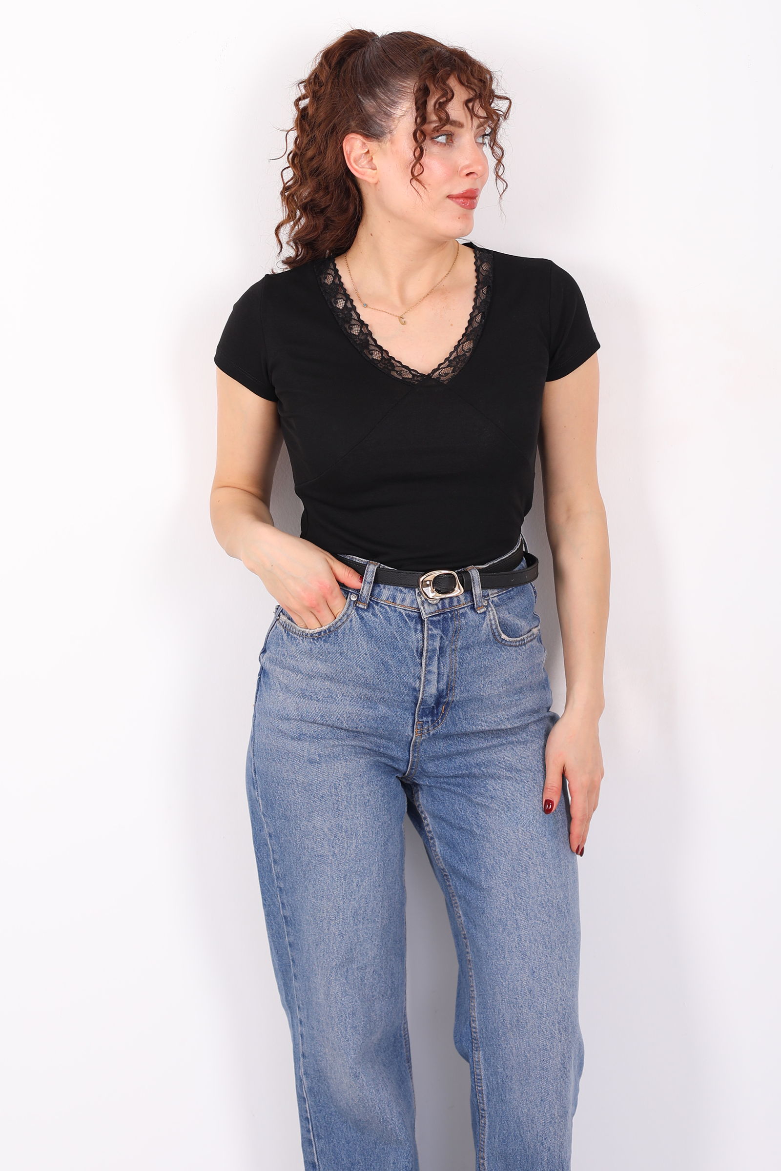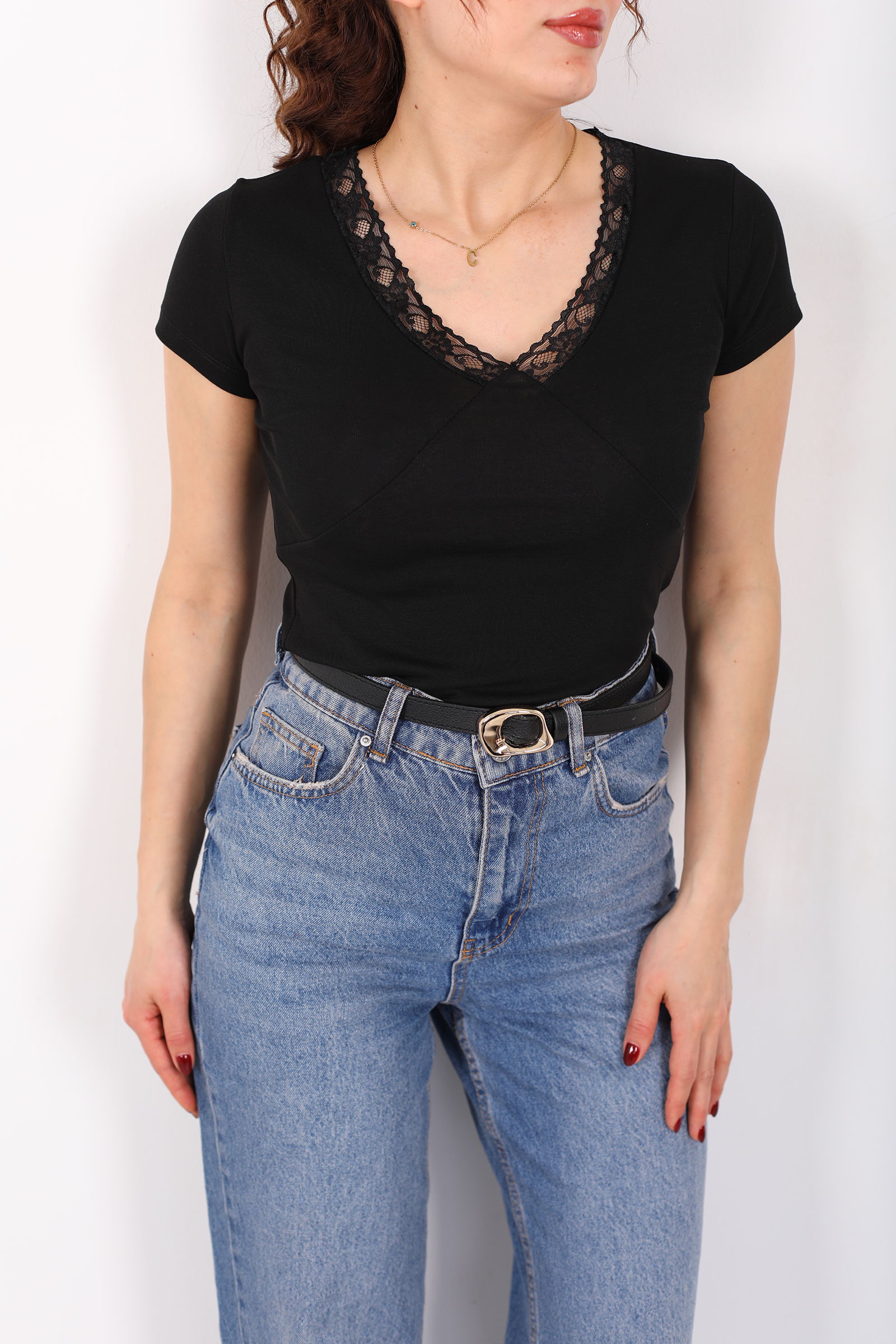 Sade ama etkileyici bir stil arayanlara: V-yaka güpür detaylı kısa kol siyah kadın basic bluz, minimalist çizgiyi zarif dokularla harmanlıyor. Derin siyah tonu, V-yaka kesimiyle feminen bir siluet yaratırken, güpür detayları bluze ince bir dantel havası katar. Bu sayede basic bir t-shirt bile sofistike bir stile dönüşür.Kısa kollu tasarımı sıcak mevsimlerde ferah kullanım sağlar; yumuşak ve esnek kumaşıyla gün boyu konfor sunar. Jean’den kumaş pantolona kadar birçok alt giyimle kolayca kombinlenebilir; gündüzden geceye farklı tarzlara uyum sağlayan çok yönlü bir parçadır. Sade bir görünüm ararken şıklığından da ödün vermek istemeyenler için ideal!