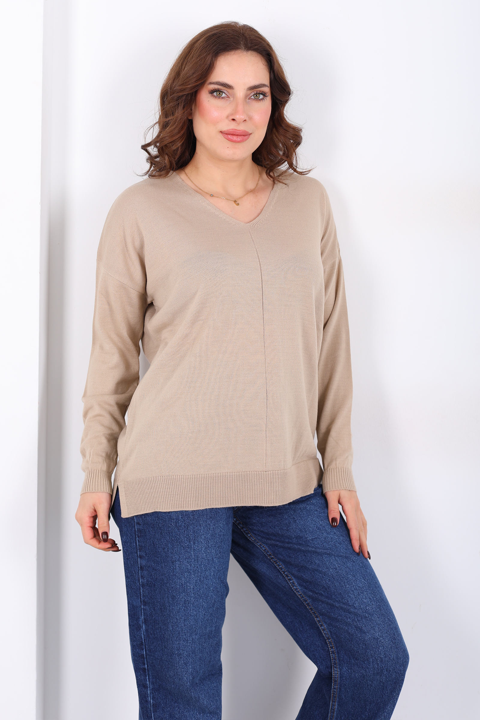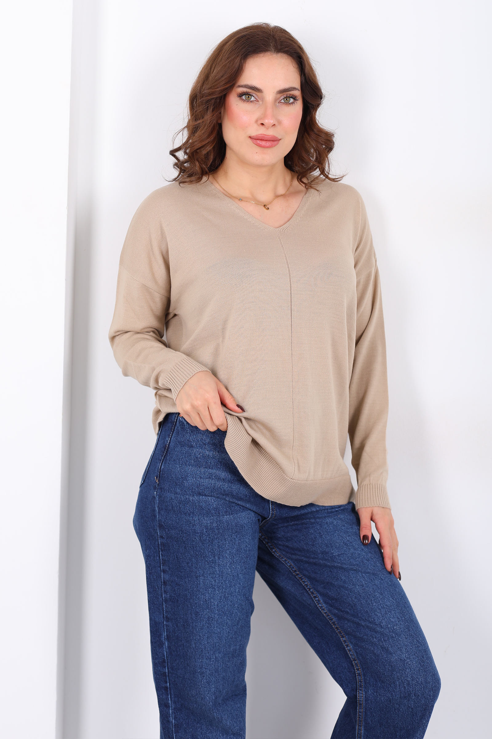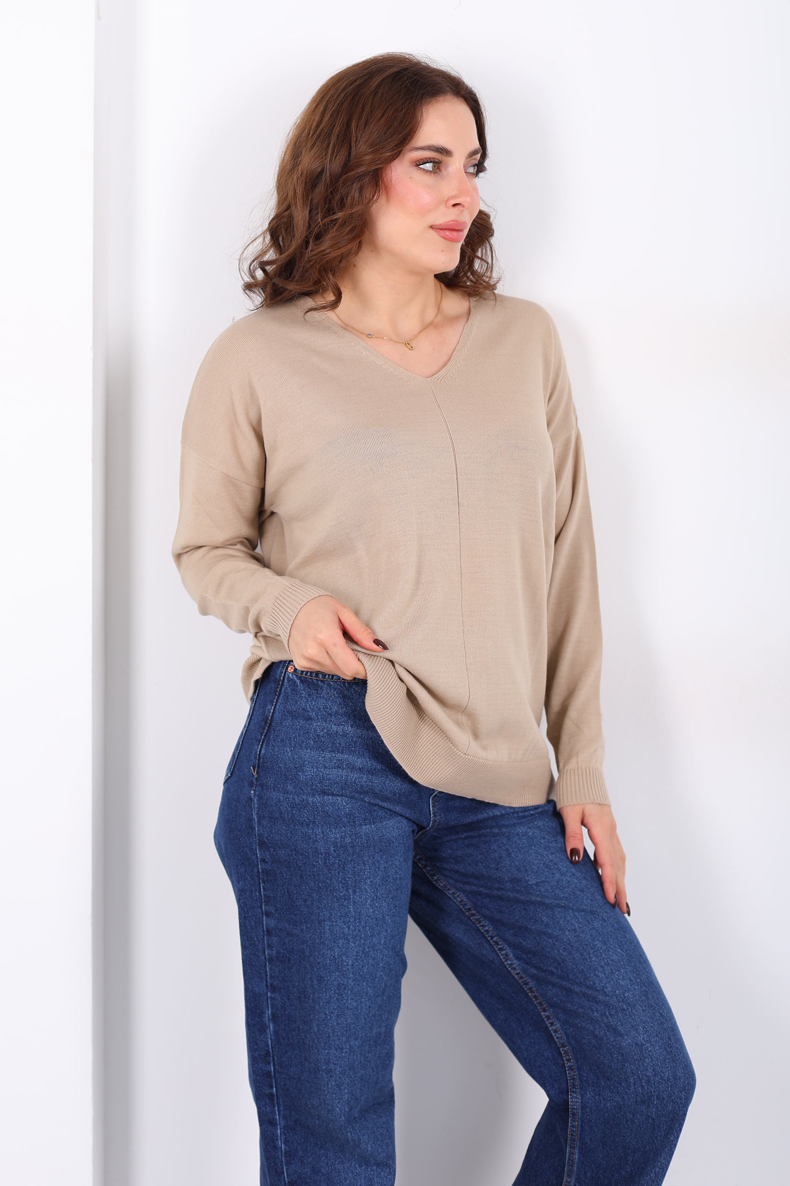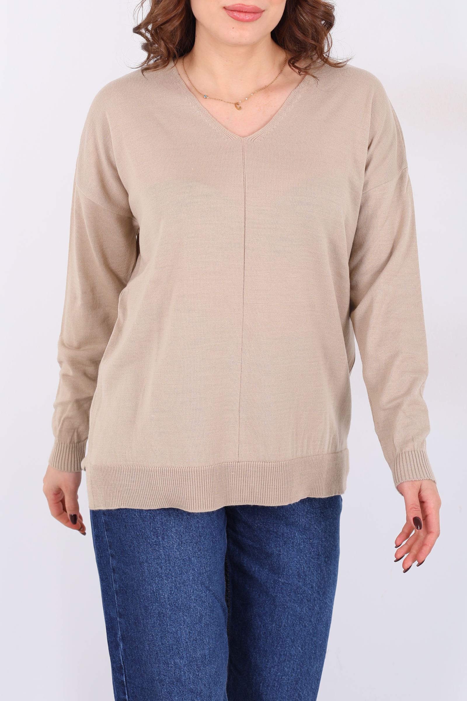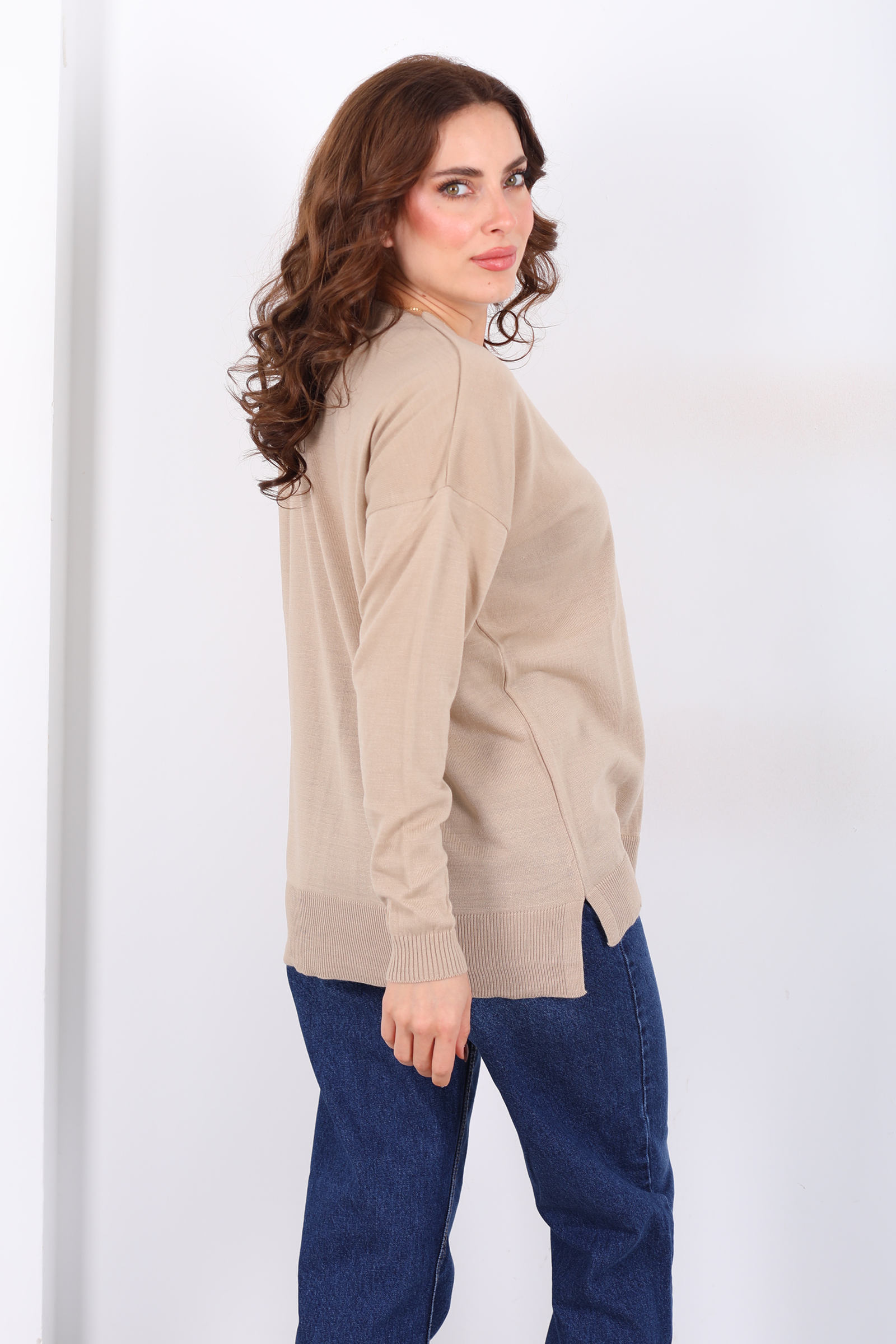 Maddonna Yaka Kısa Kol Fitilli Bej Kadın Triko Kazak