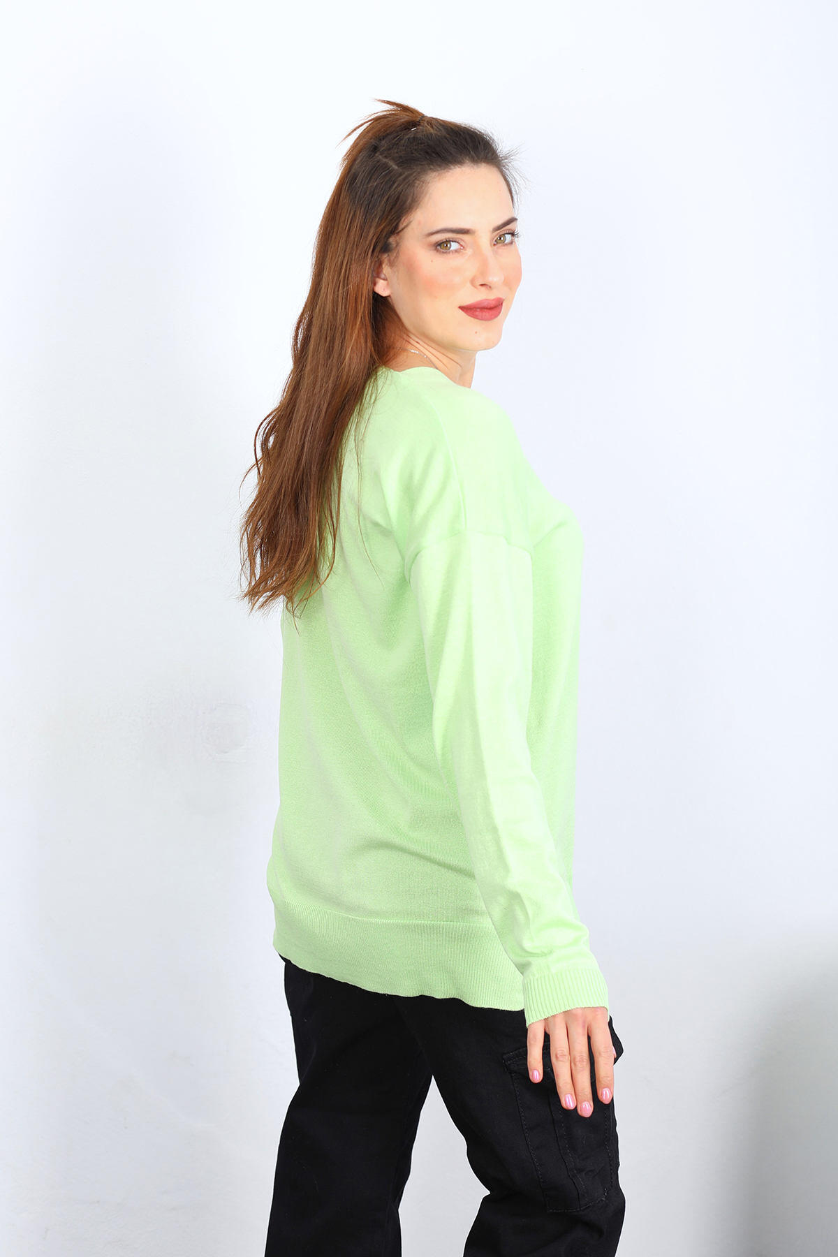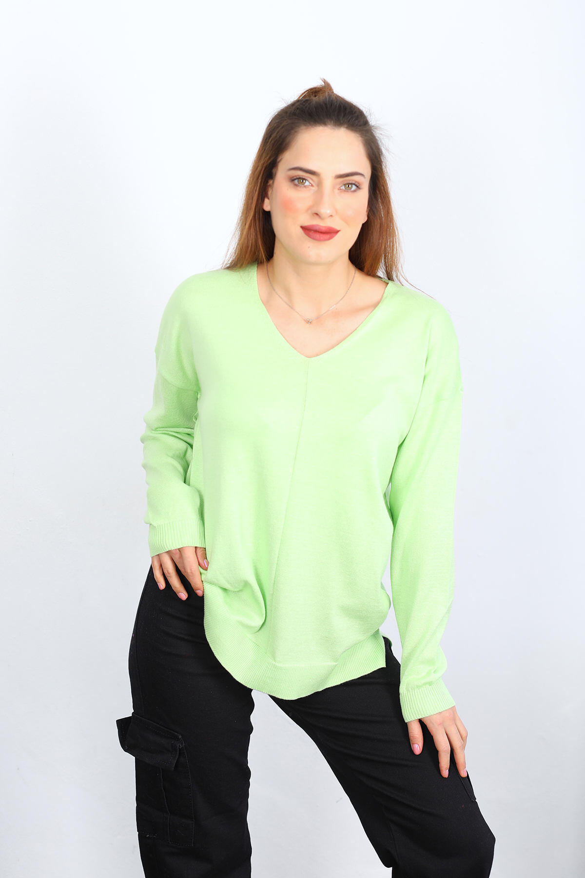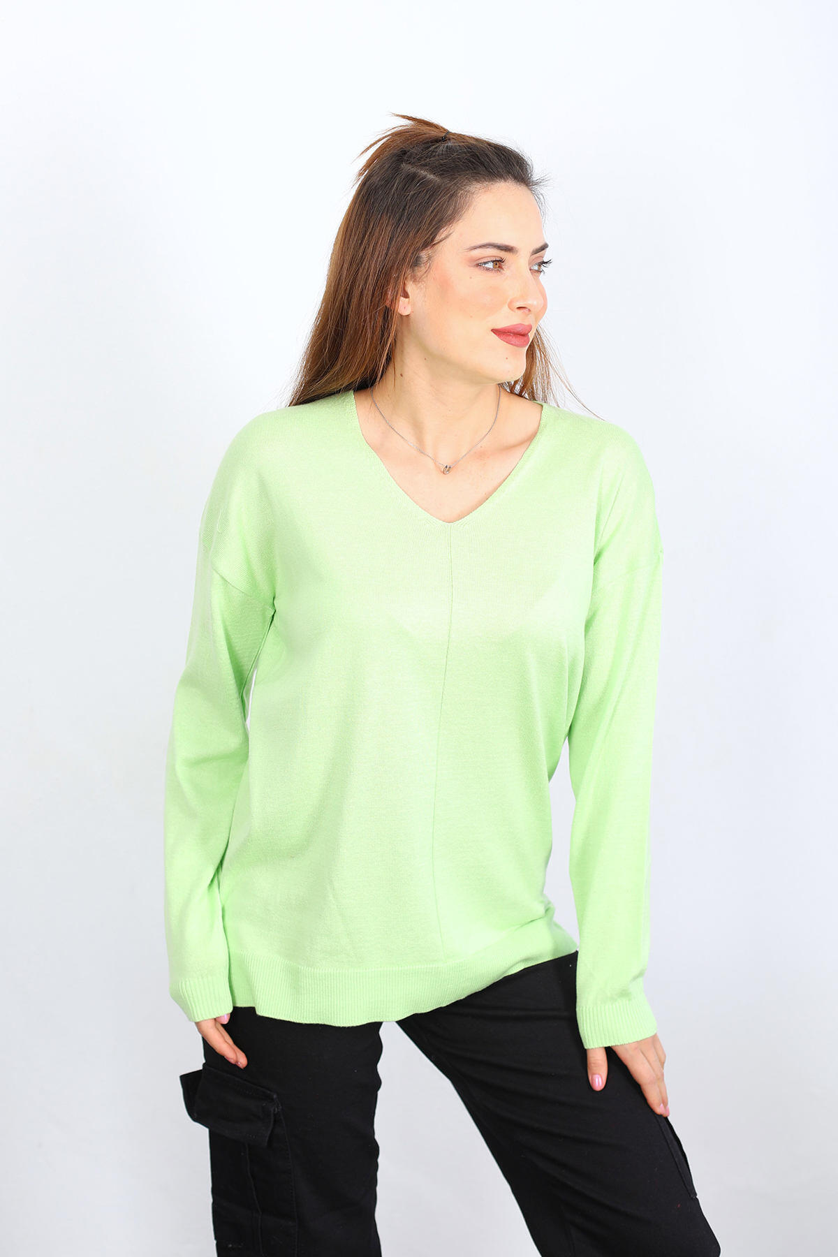 V Yaka Salaş Triko Çağla Yeşili Kadın Kazak