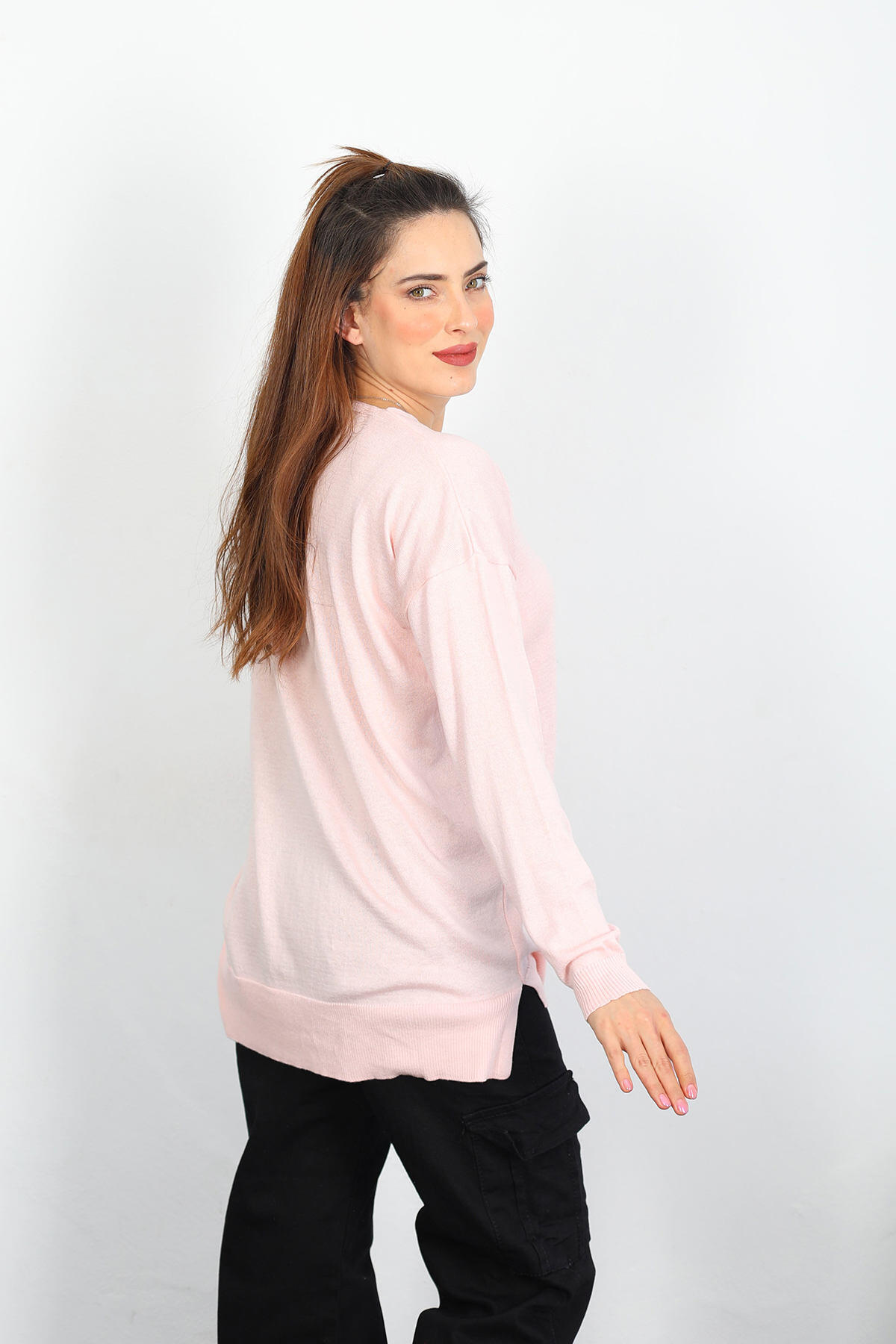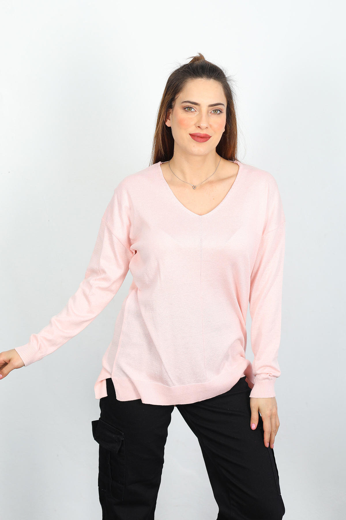 V Yaka Salaş Triko Pudra Kadın Kazak