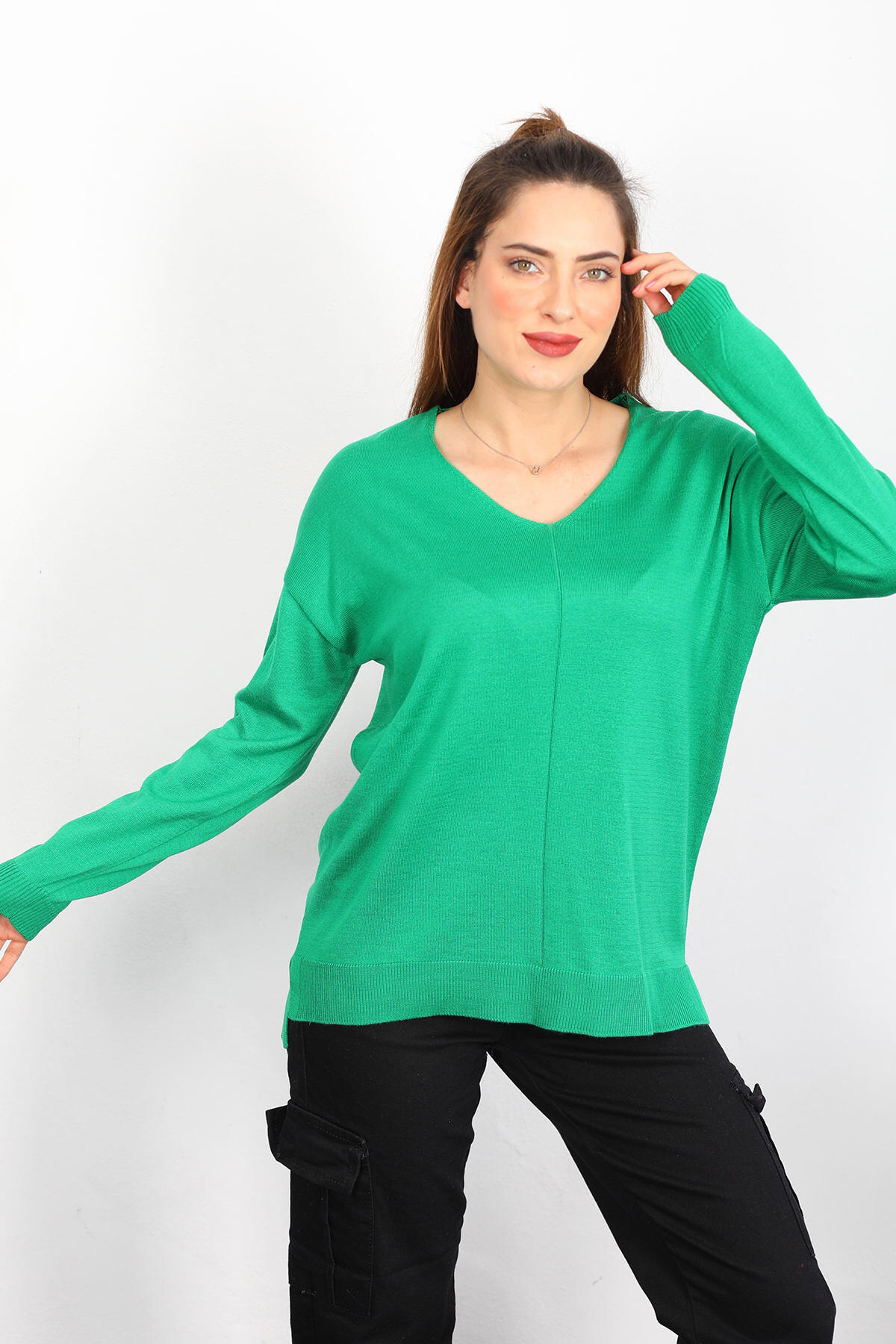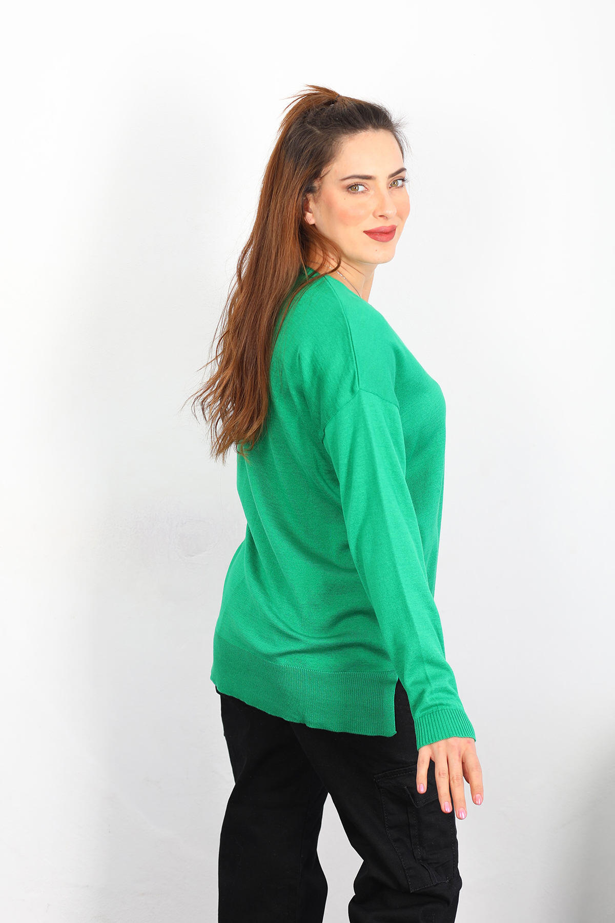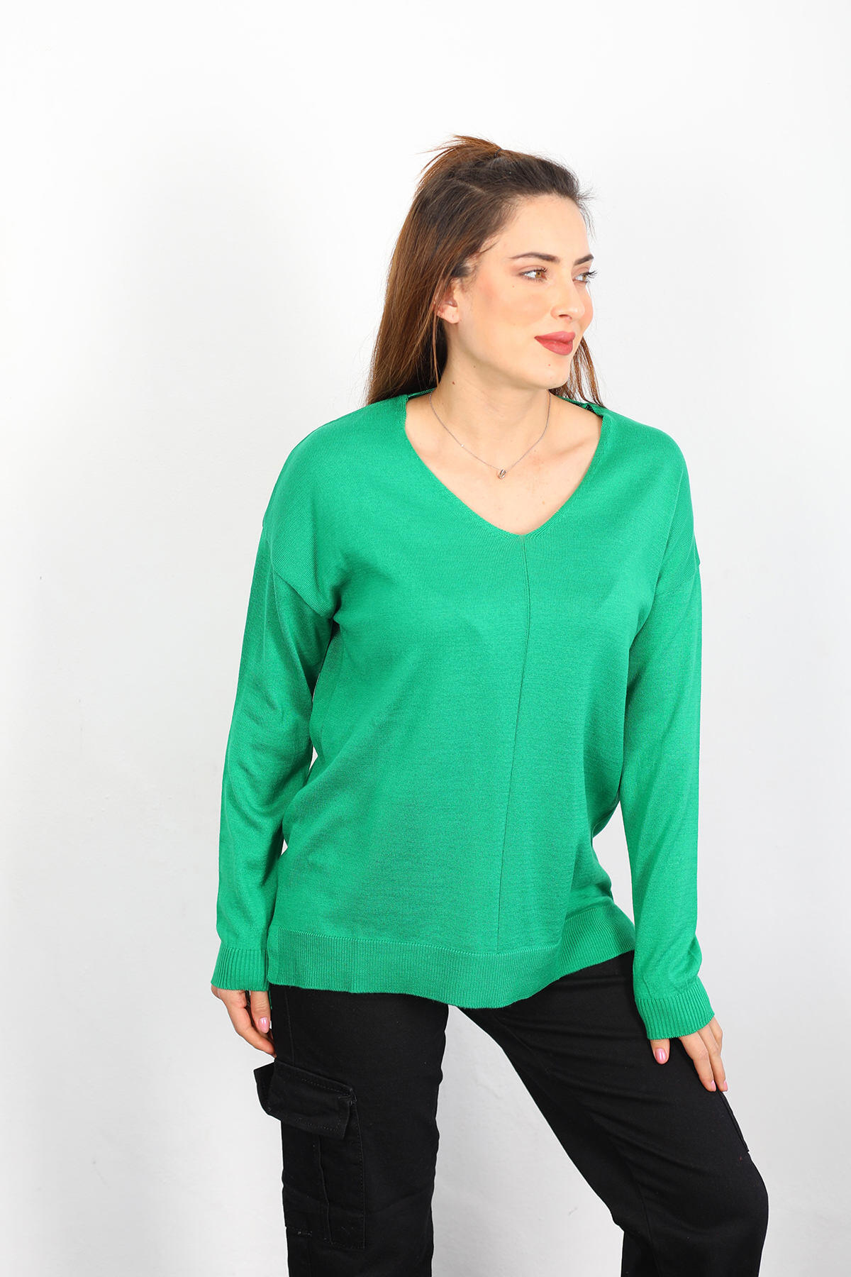 V Yaka Salaş Triko Zümrüt Yeşili Kadın Kazak