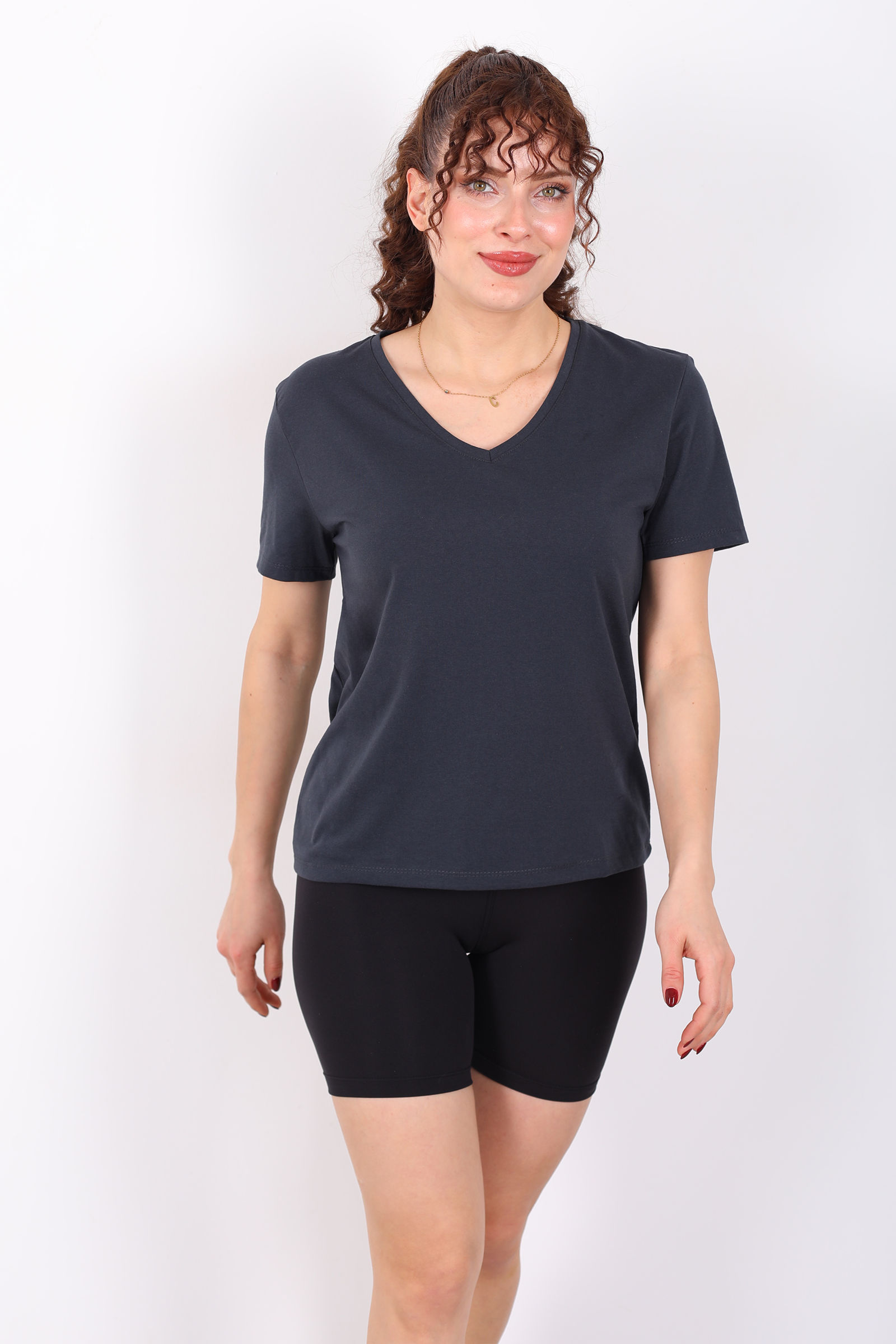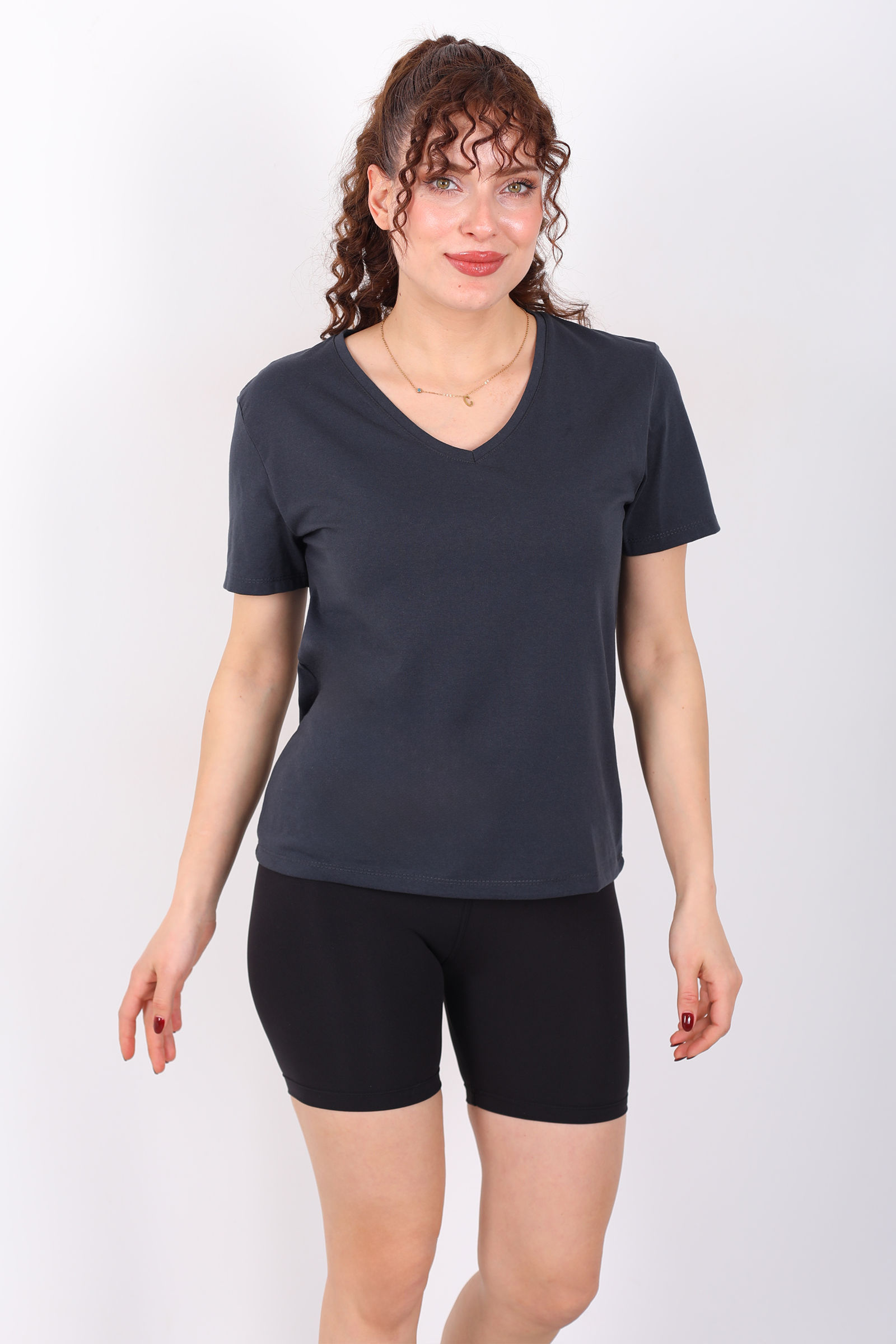 V Yaka Slim Mürdüm Kadın T-Shirt
