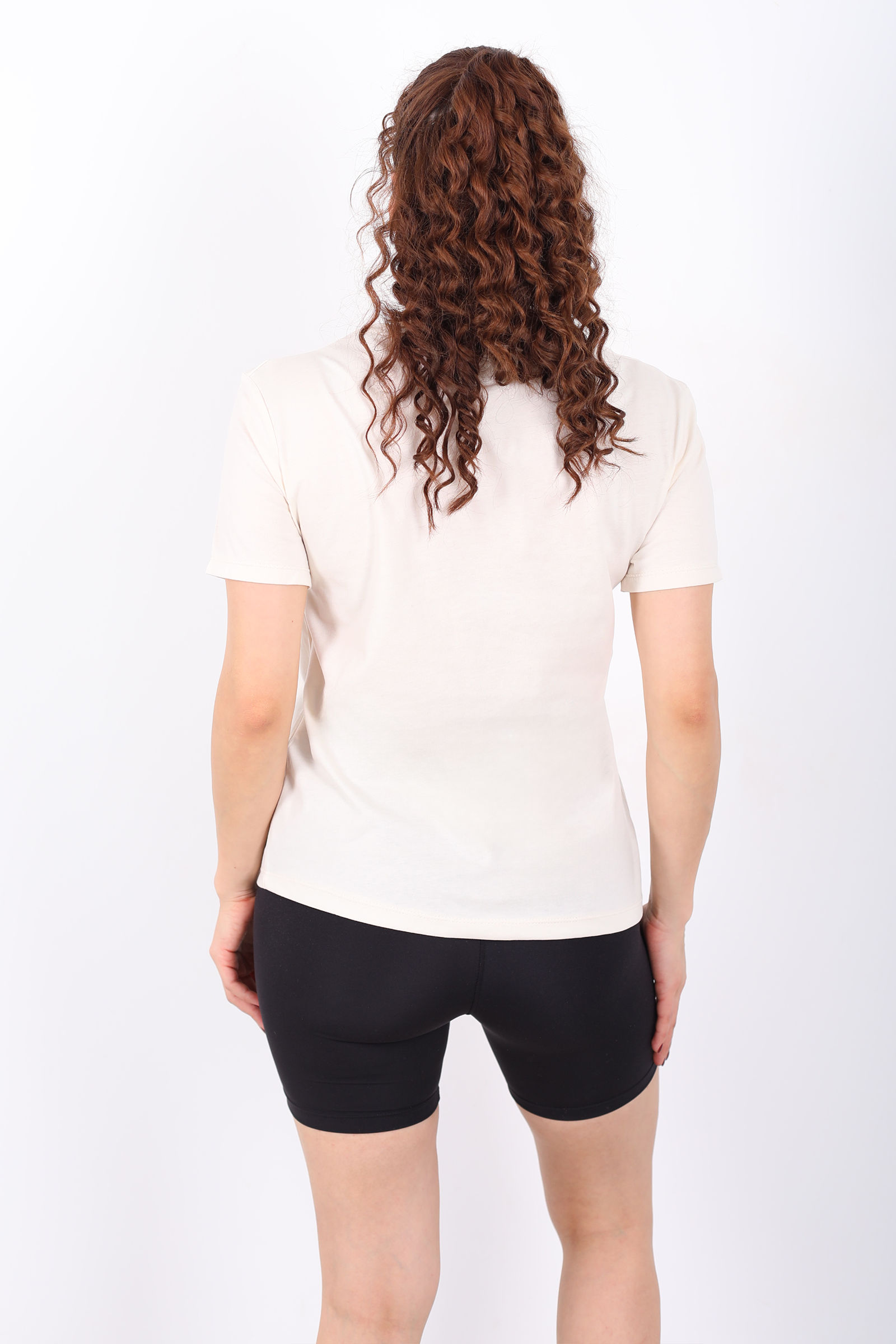V Yaka Slim Krem Kadın T-Shirt
