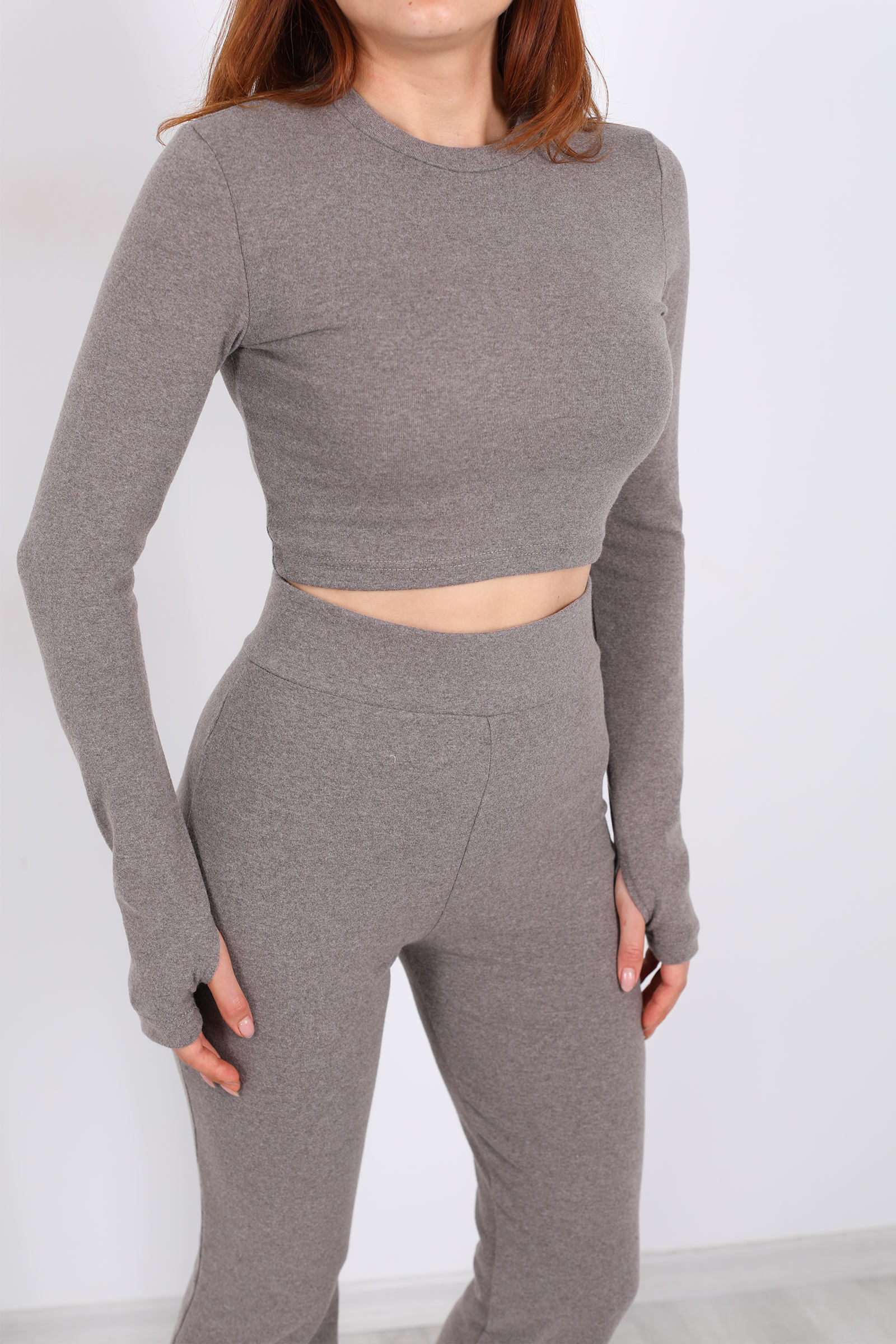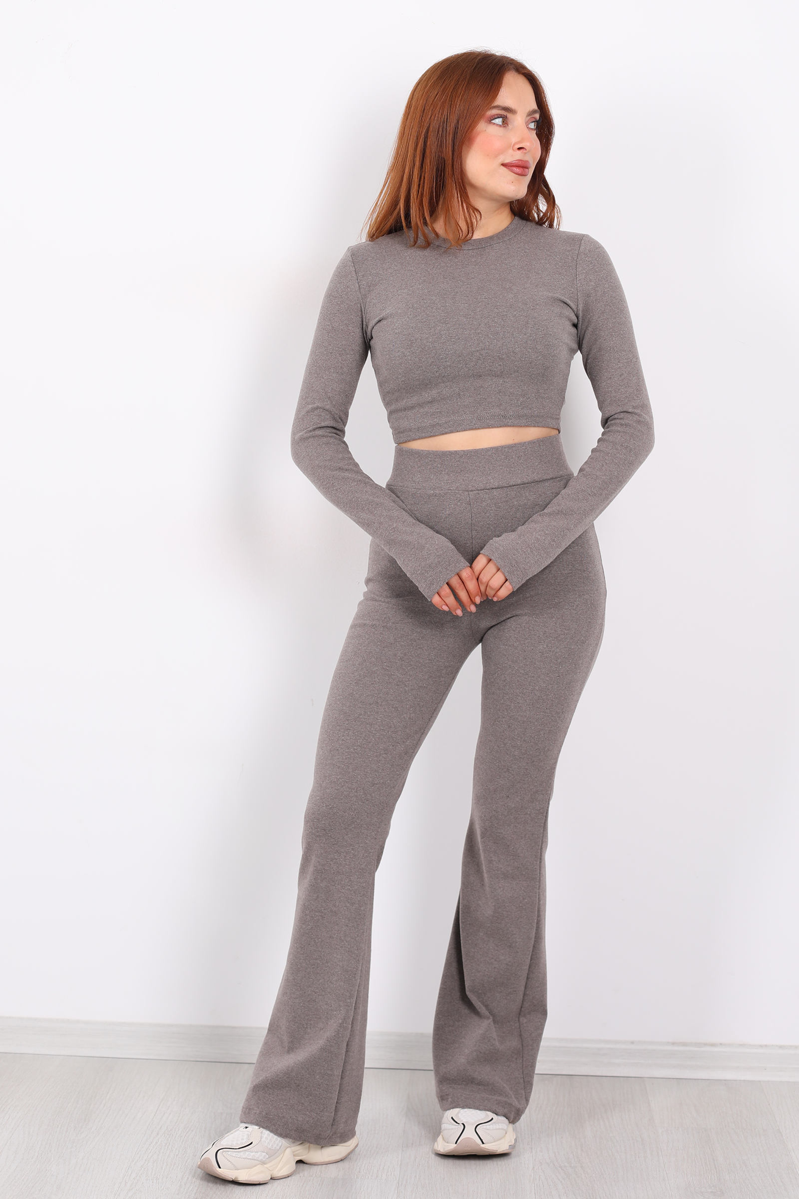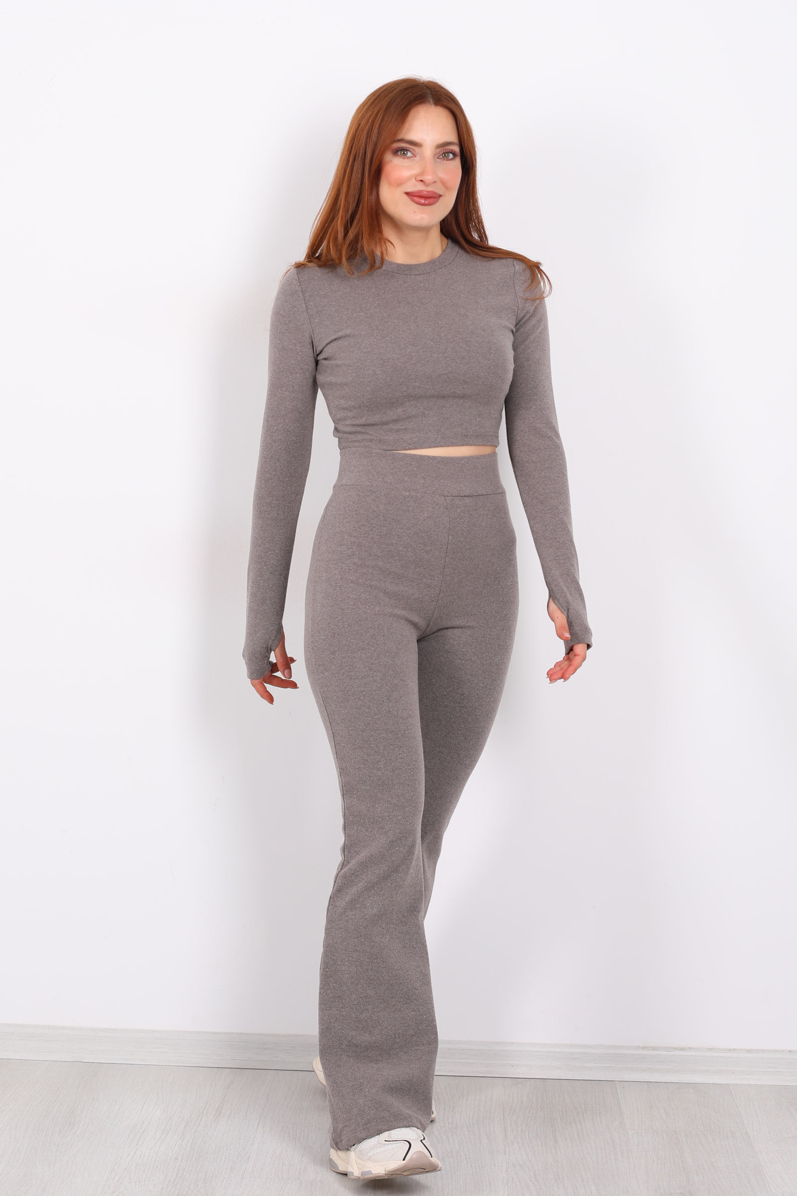 Vizon renginin zarif sıcaklığını taşıyan bu crop tayt takımı, hem spor hem günlük kullanımda stil ve konforu bir arada sunuyor. Yumuşak dokulu kumaşı, ciltle dost bir his yaratırken esnek yapısı sayesinde hareket özgürlüğü sağlar.Crop üst, göbeği hafifçe açıkta bırakan kesimiyle modern bir siluet sunar ve yüksek bel tayt ile kusursuz bir uyum yakalar. Taytın yüksek bel kısmı belinizi nazikçe kavrayarak hem destek sağlar hem de toparlayıcı bir etki sunar. Bu tasarım, hem egzersizlerde hem de gündelik hayatta rahat bir giyim deneyimi yaratır.