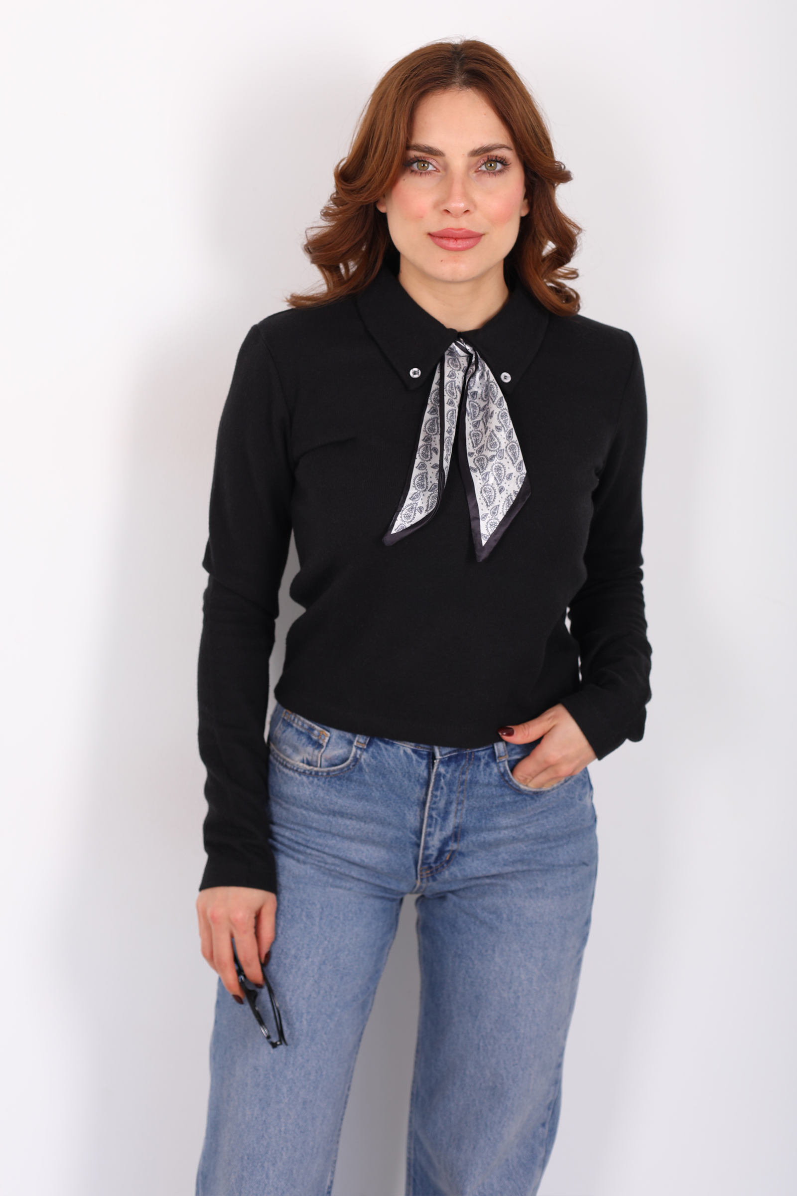 Siyah selanik bluz, yakasındaki fular detayıyla sade çizgiyi zarif bir ritme dönüştürüyor. Selanik kumaşın yüzeyindeki hafif doku, görünümde derinlik ve akışkanlık sağlar. Yumuşak yapısı, gün boyu konfor hissi verirken fular detayı minimalist tasarımı feminen bir dokunuşla tamamlar. Altına jean, etek ya da kumaş pantolonlar ile kombinlendiğinde dengeli ve modern bir stil yaratır. Siyahın güçlü ifadesiyle her mevsime uyum sağlayan bu bluz, sade parçaları bile dikkat çekici hale getirir.