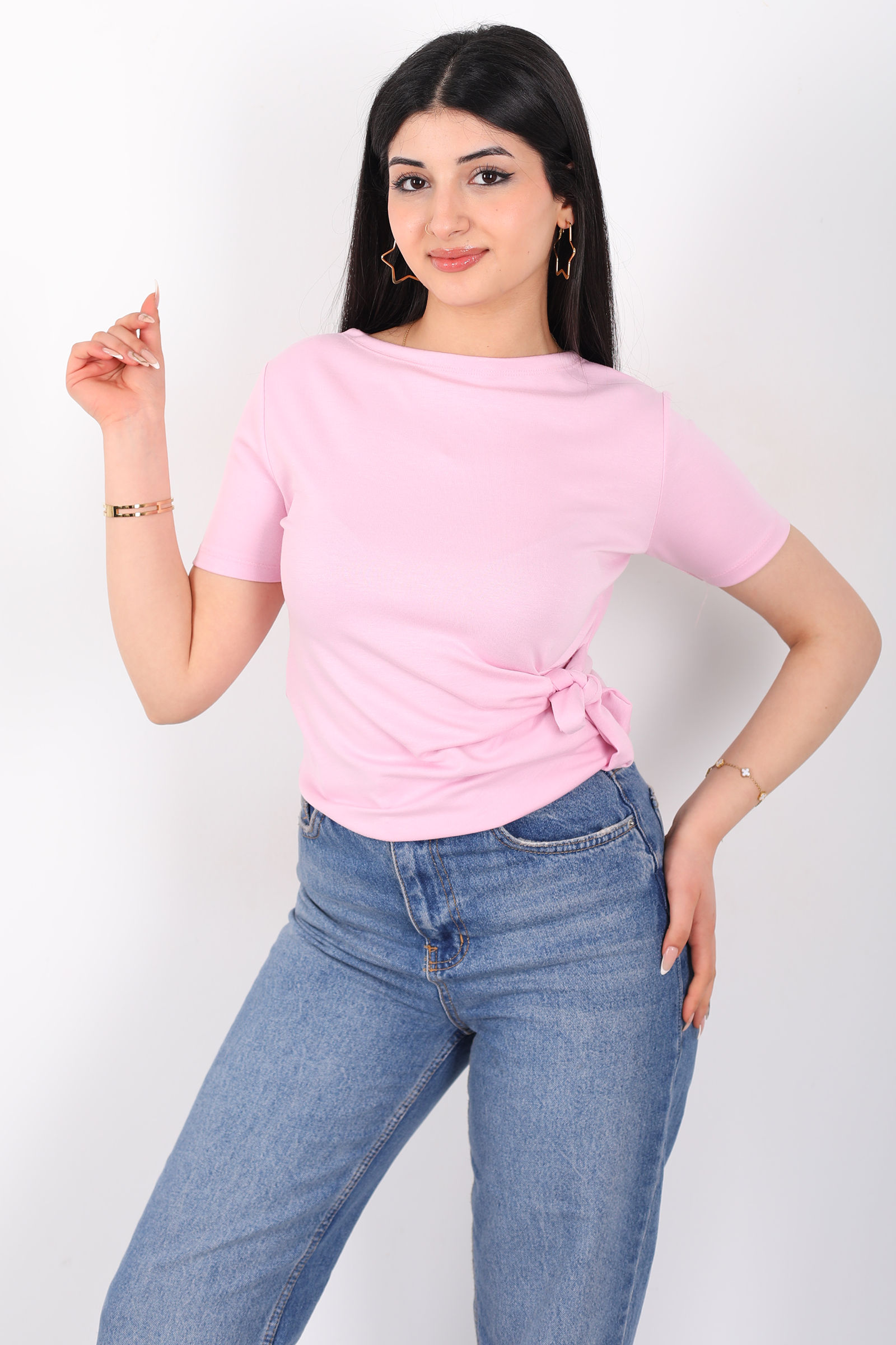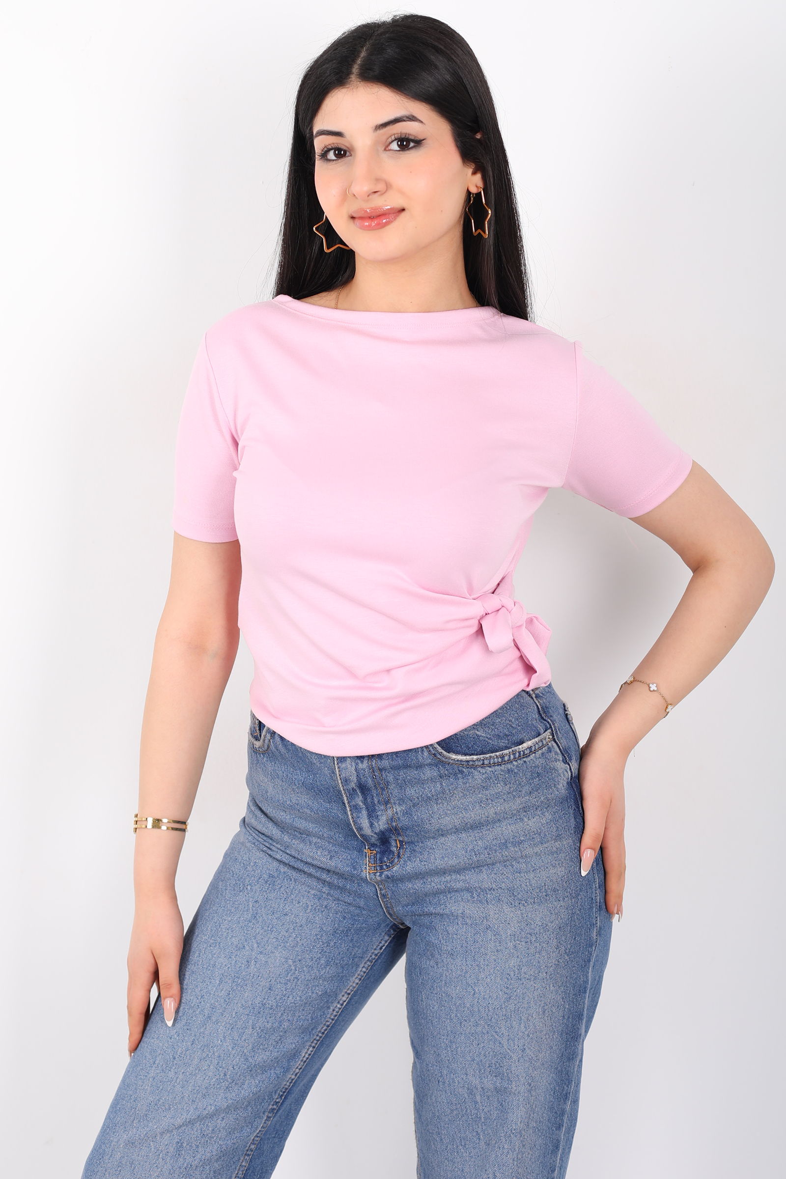 Yandan Bağlamalı Bisiklet Yaka Pembe Kadın Bluz