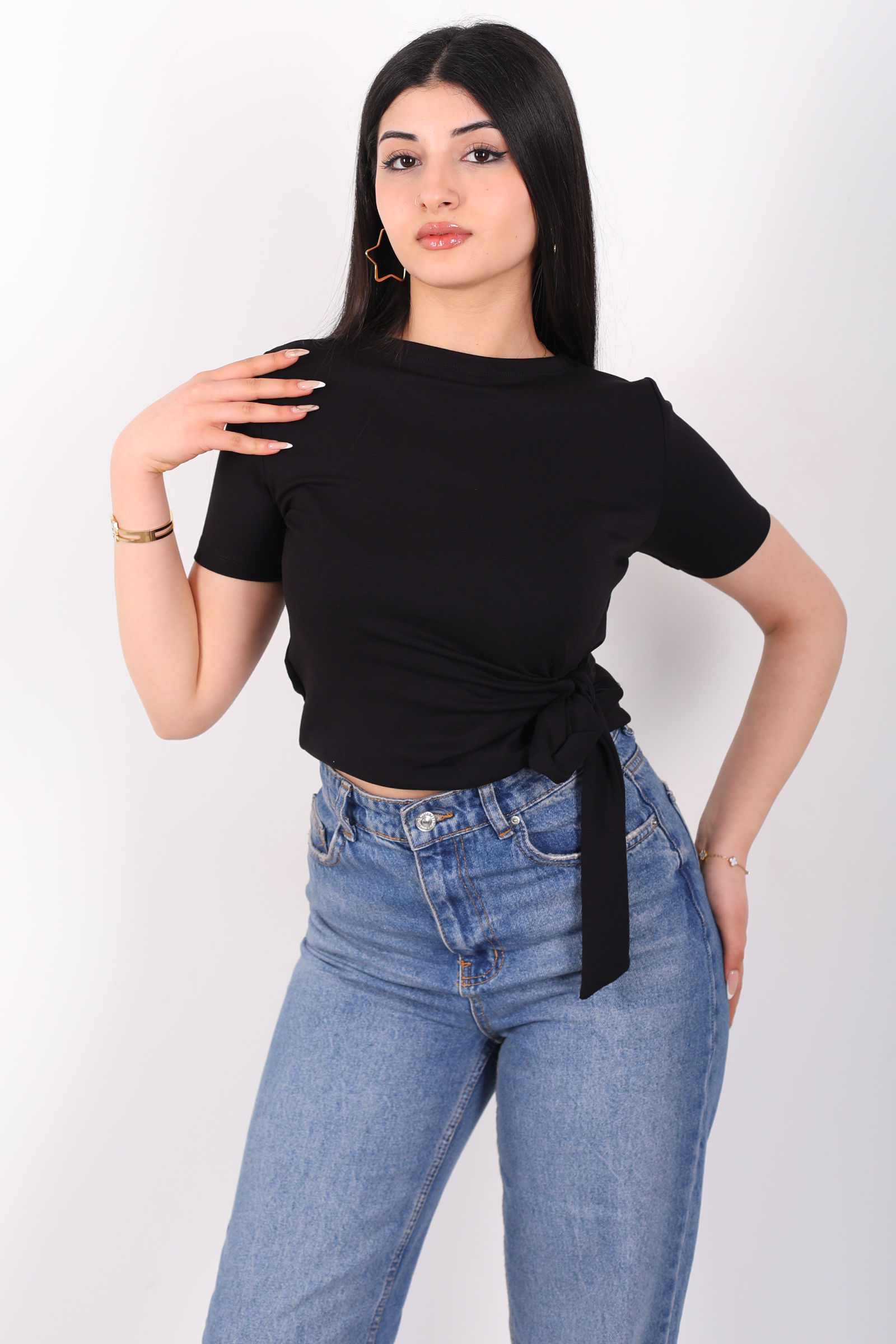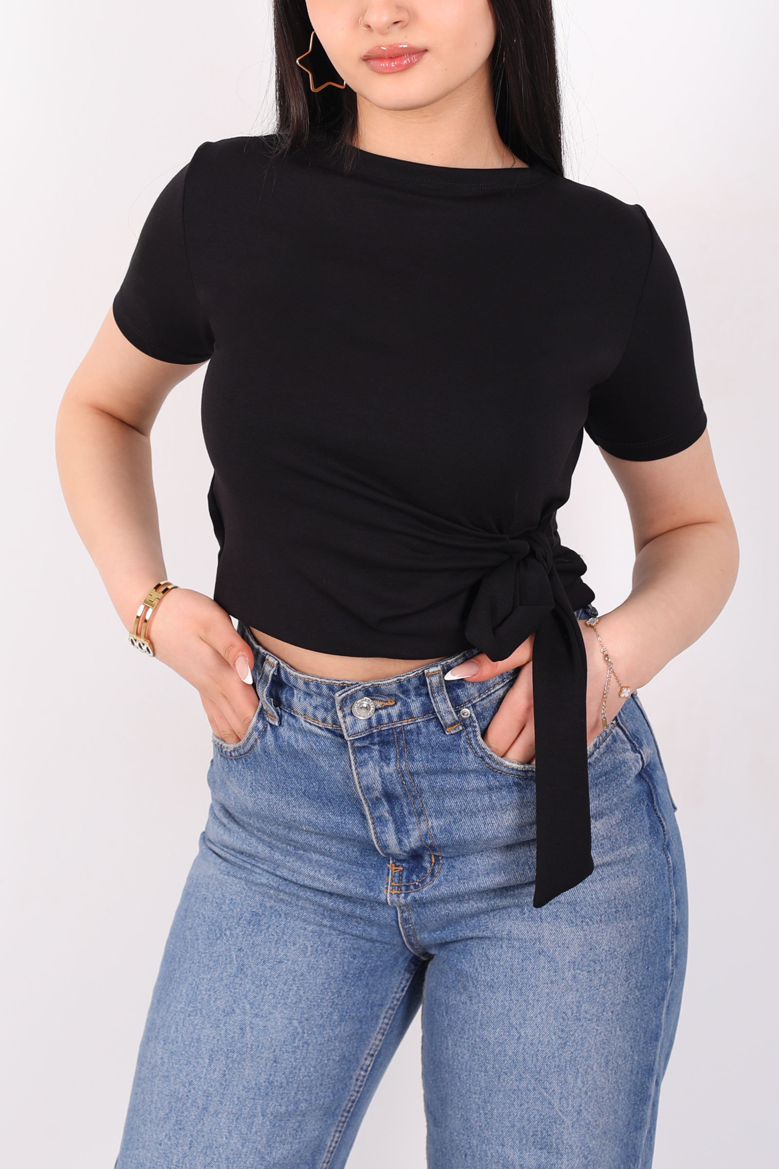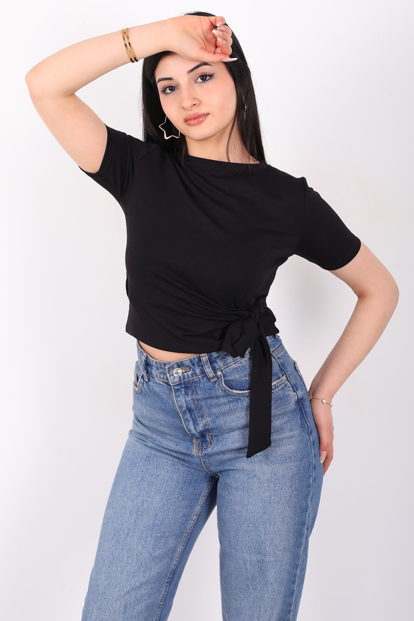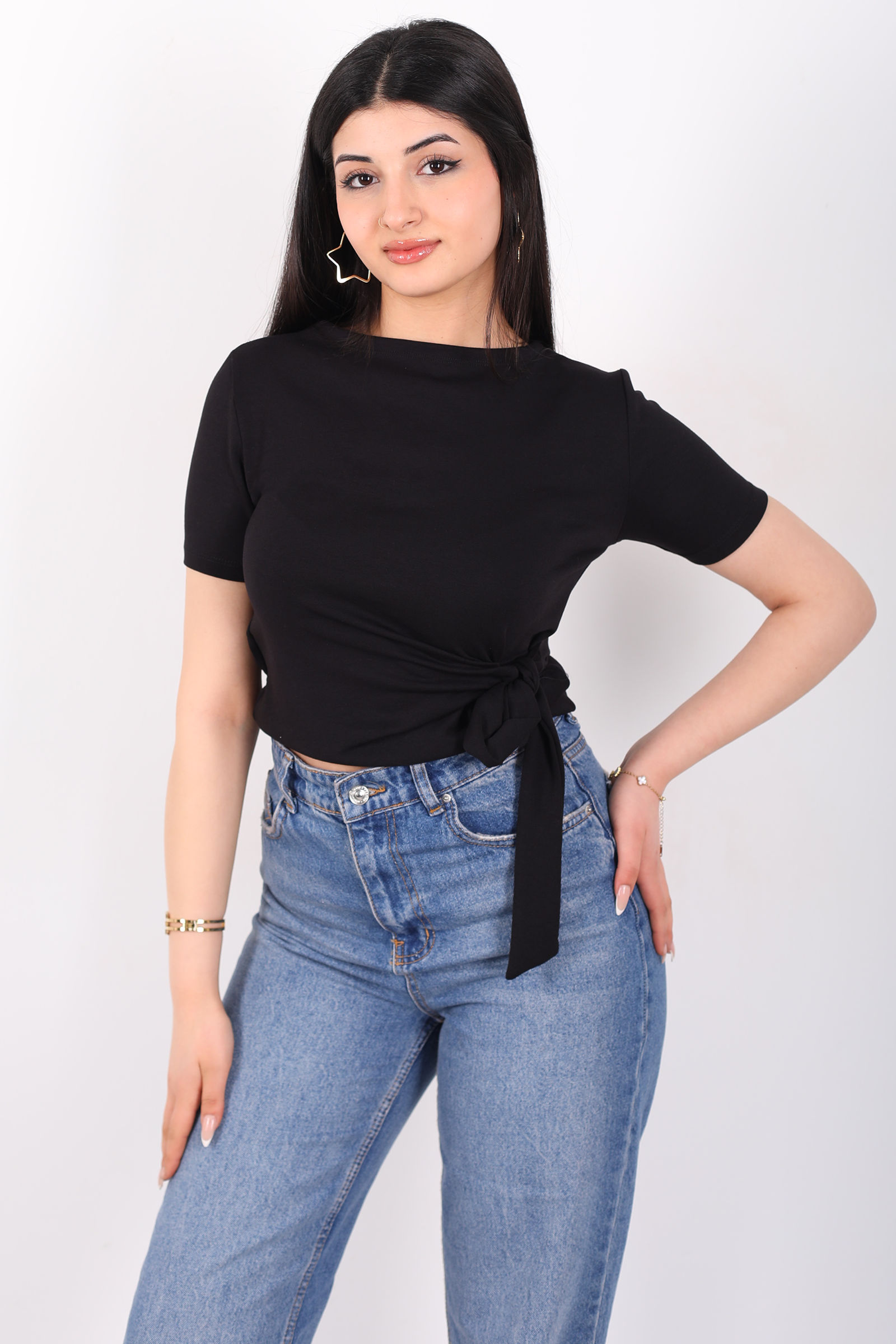 Yandan Bağlamalı Bisiklet Yaka Siyah Kadın Bluz