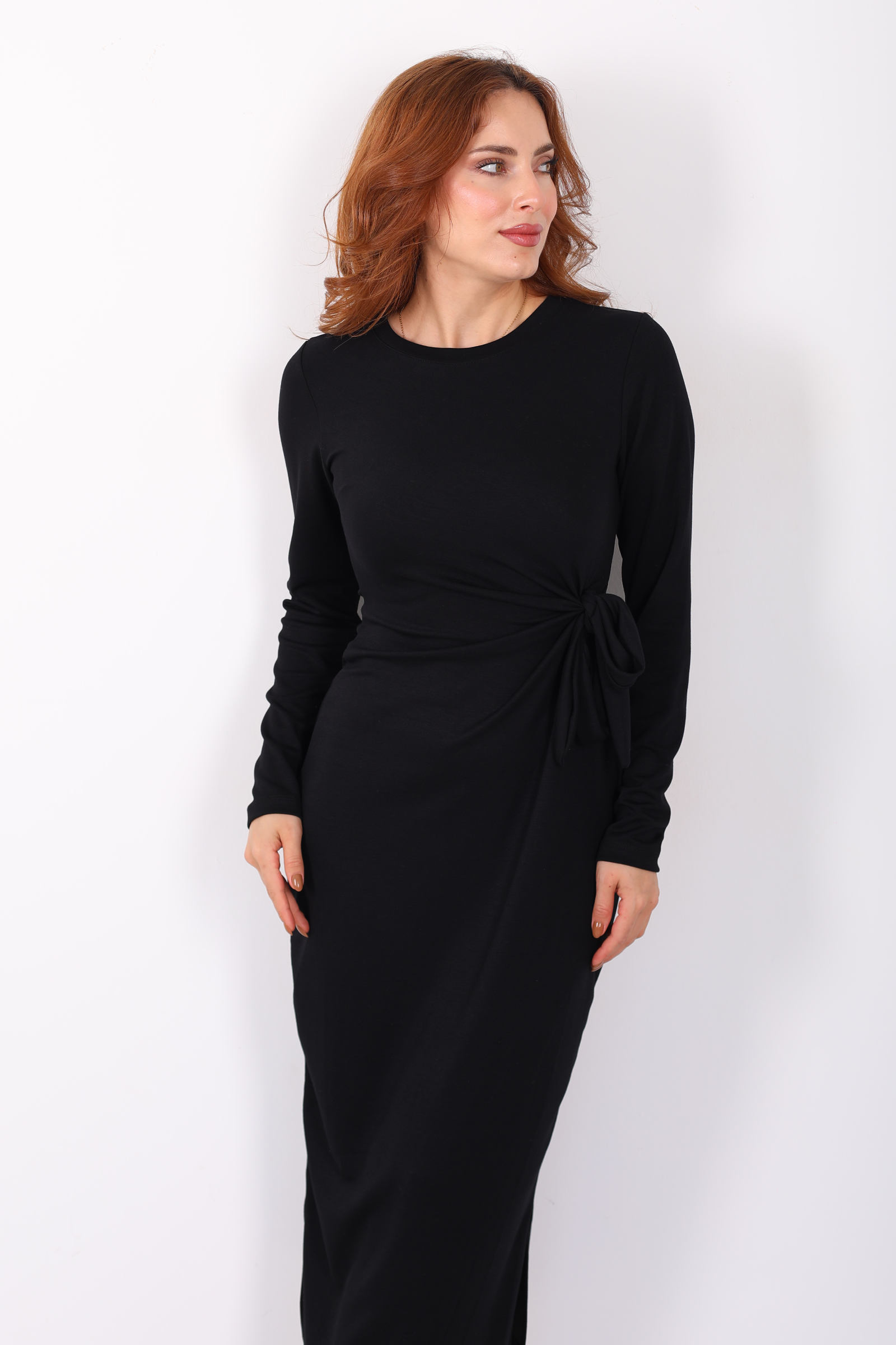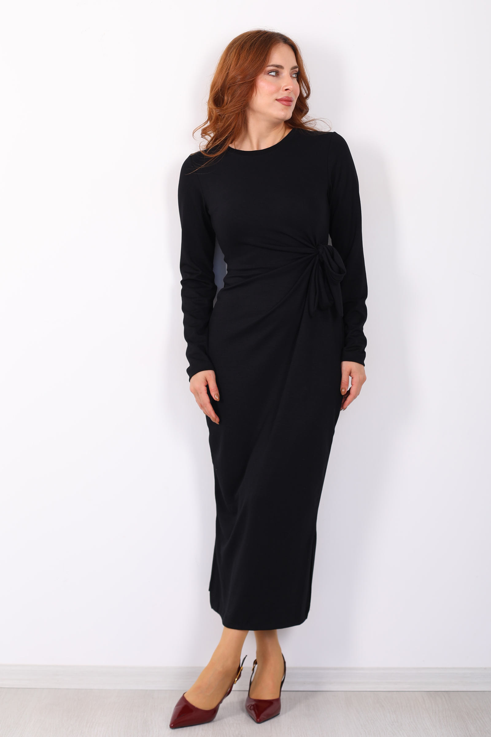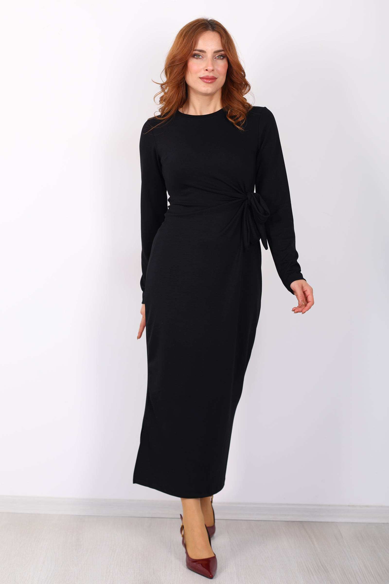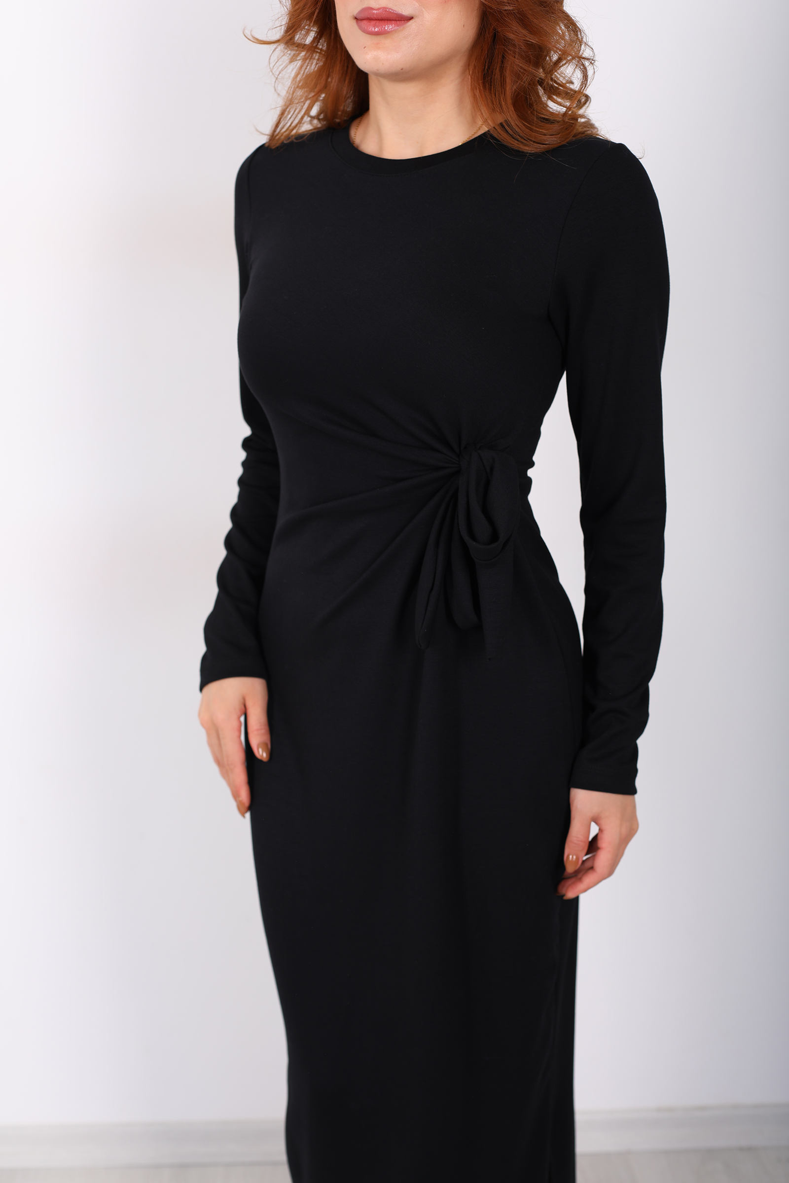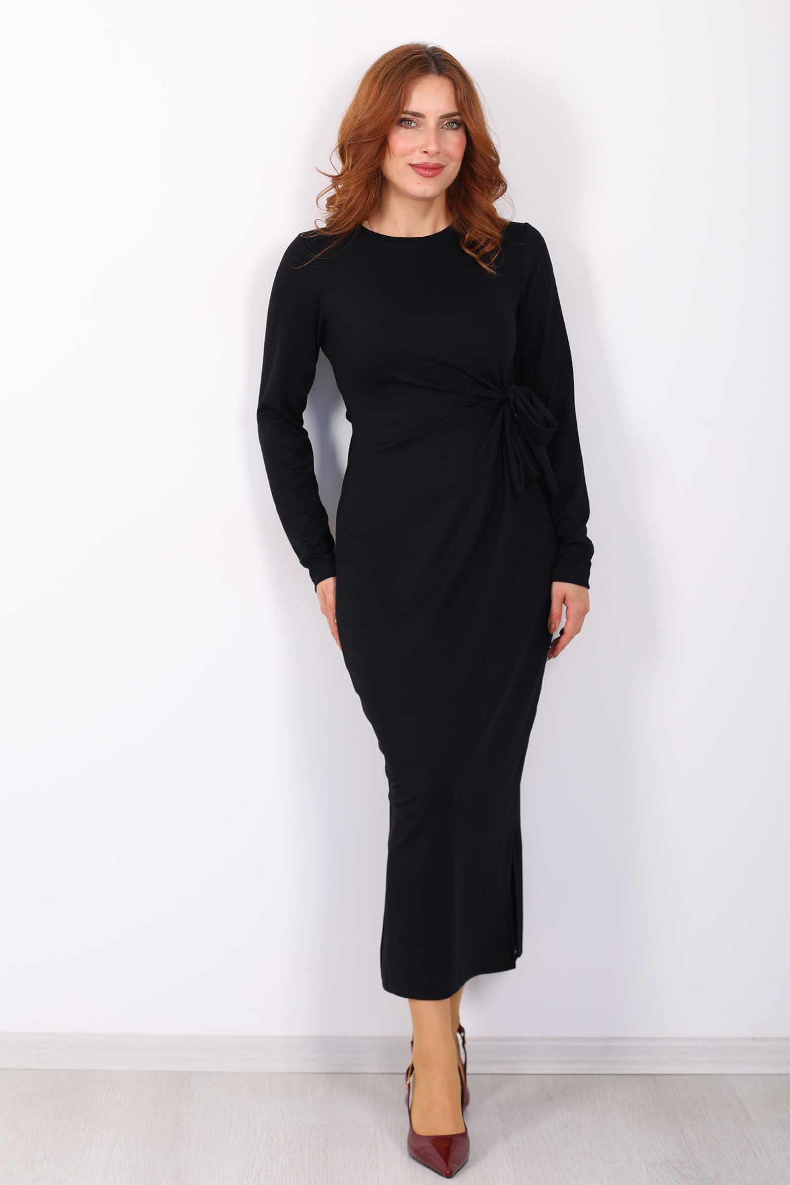 Yandan Bağlamalı Siyah Kadın Modal Maxi Elbise