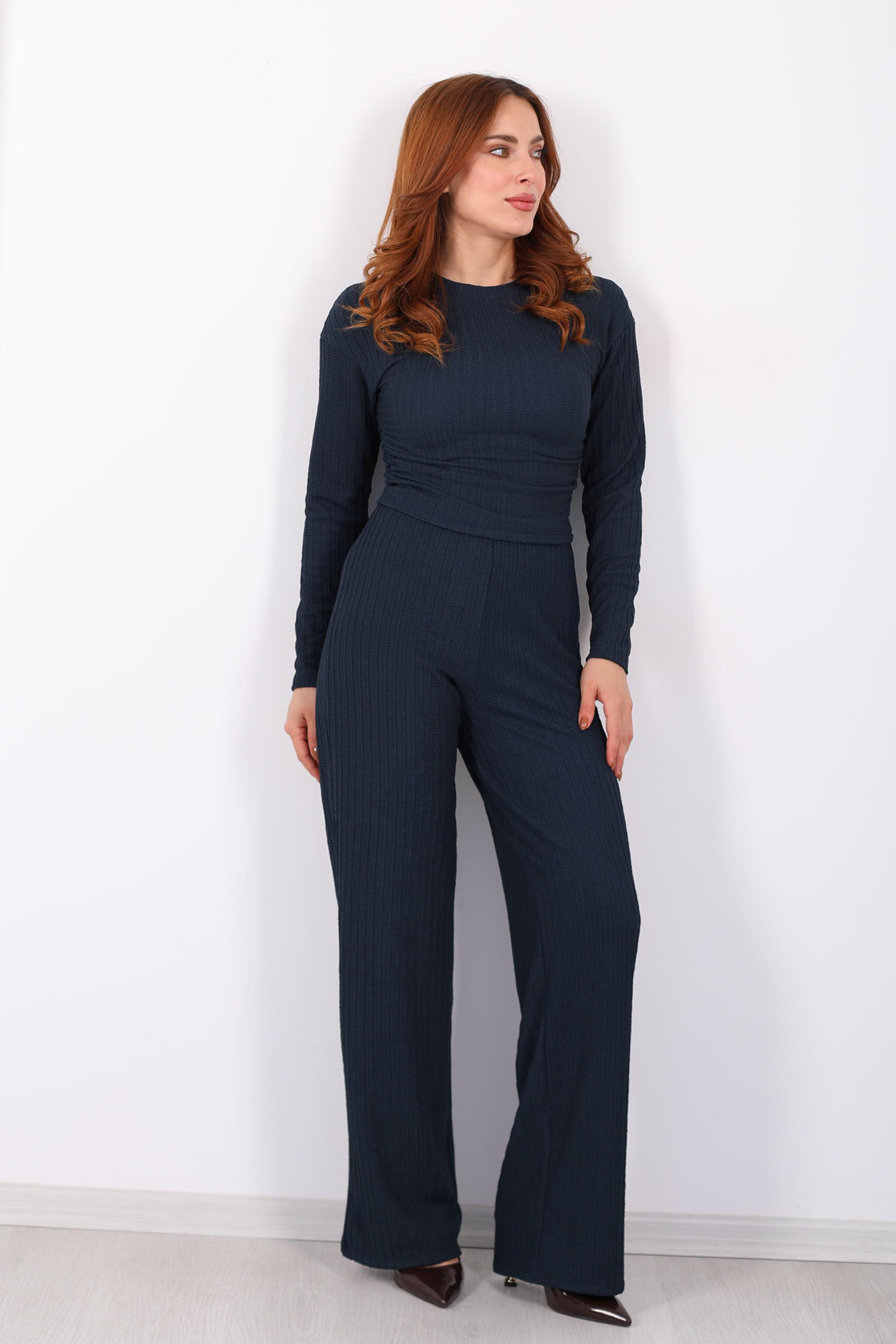 Yanı Büzgülü Kendinden Fitilli Marin Kadın Takım