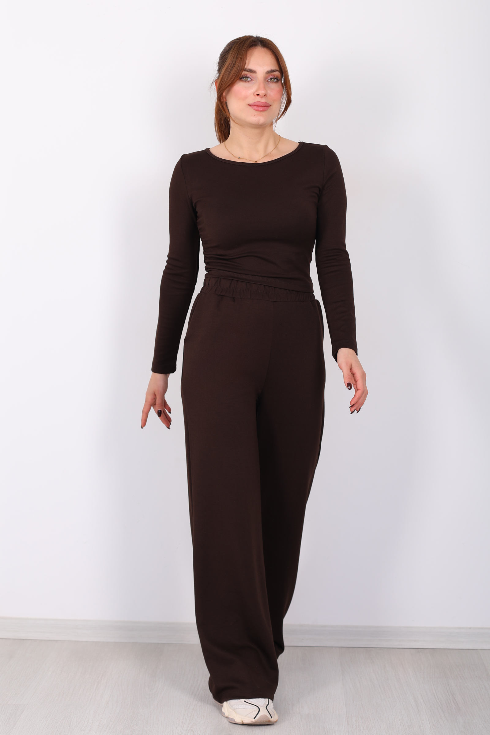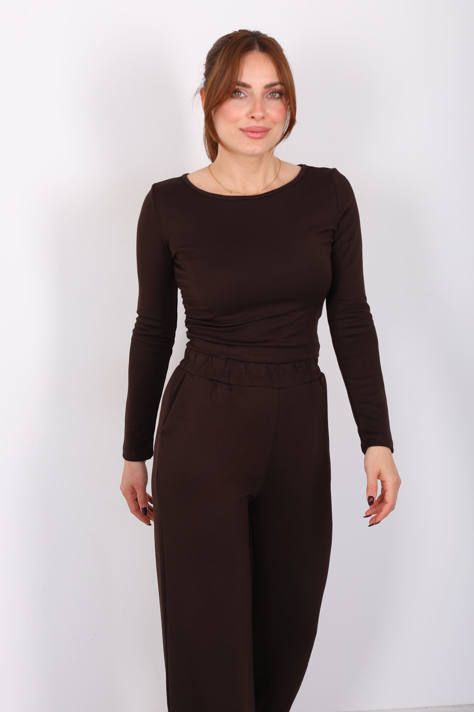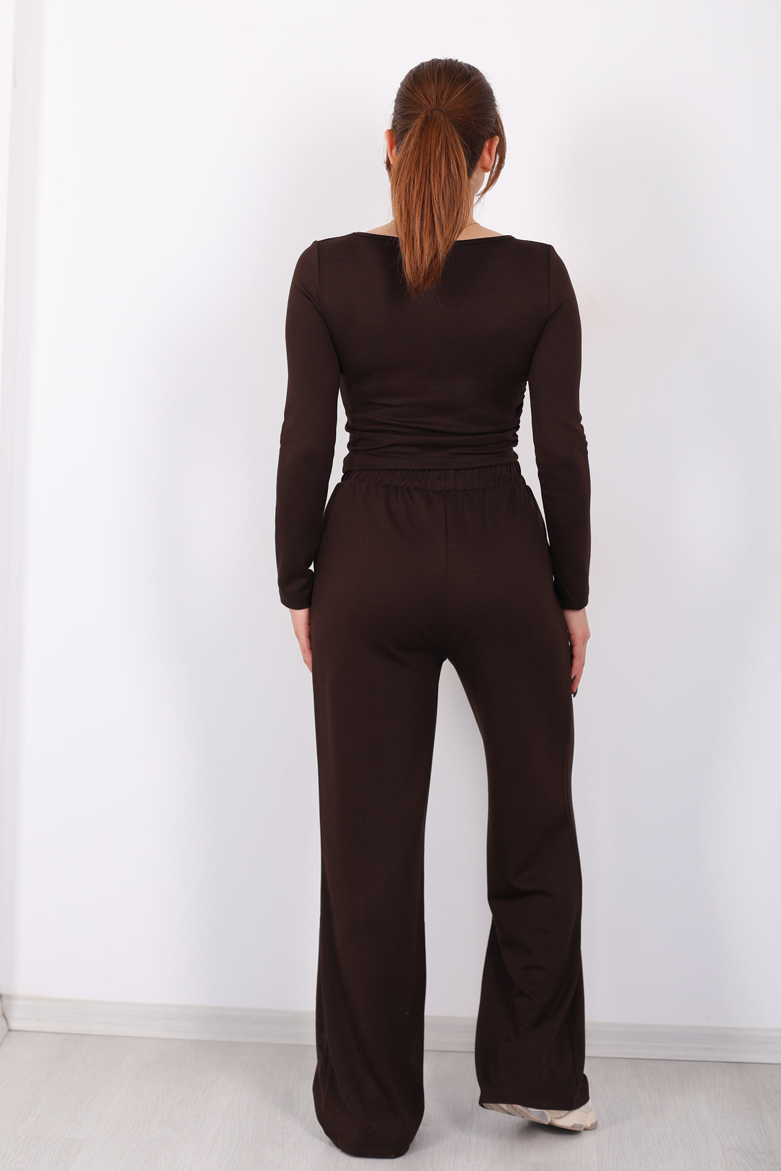 Yanı Büzgülü Modal Acı Kahve Kadın Pantolon Takım, acı kahvenin sıcak tonunu konforla harmanlayan modern bir kombindir. Üst parçanın yan büzgü detayı, tasarıma akışkan bir hareket kazandırırken alt parçanın modal kumaşı, gün boyu yumuşak ve esnek bir kullanım sunar. Acı kahve tonunun doğal cazibesi, bu takımı günlük kombinlerden minimalist şehir stillerine kadar geniş bir yelpazede öne çıkarır.