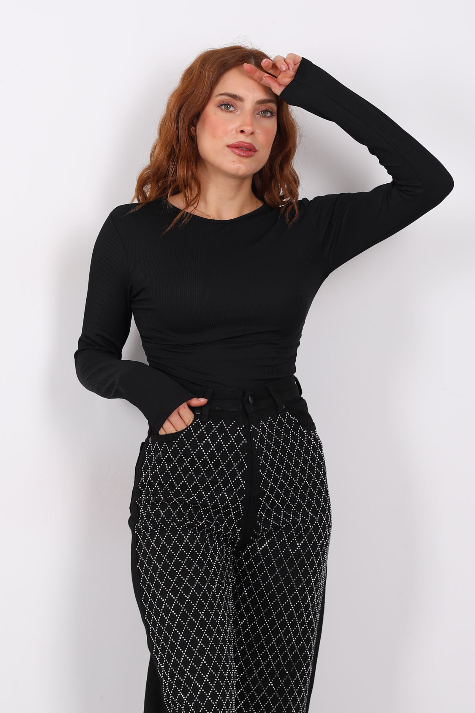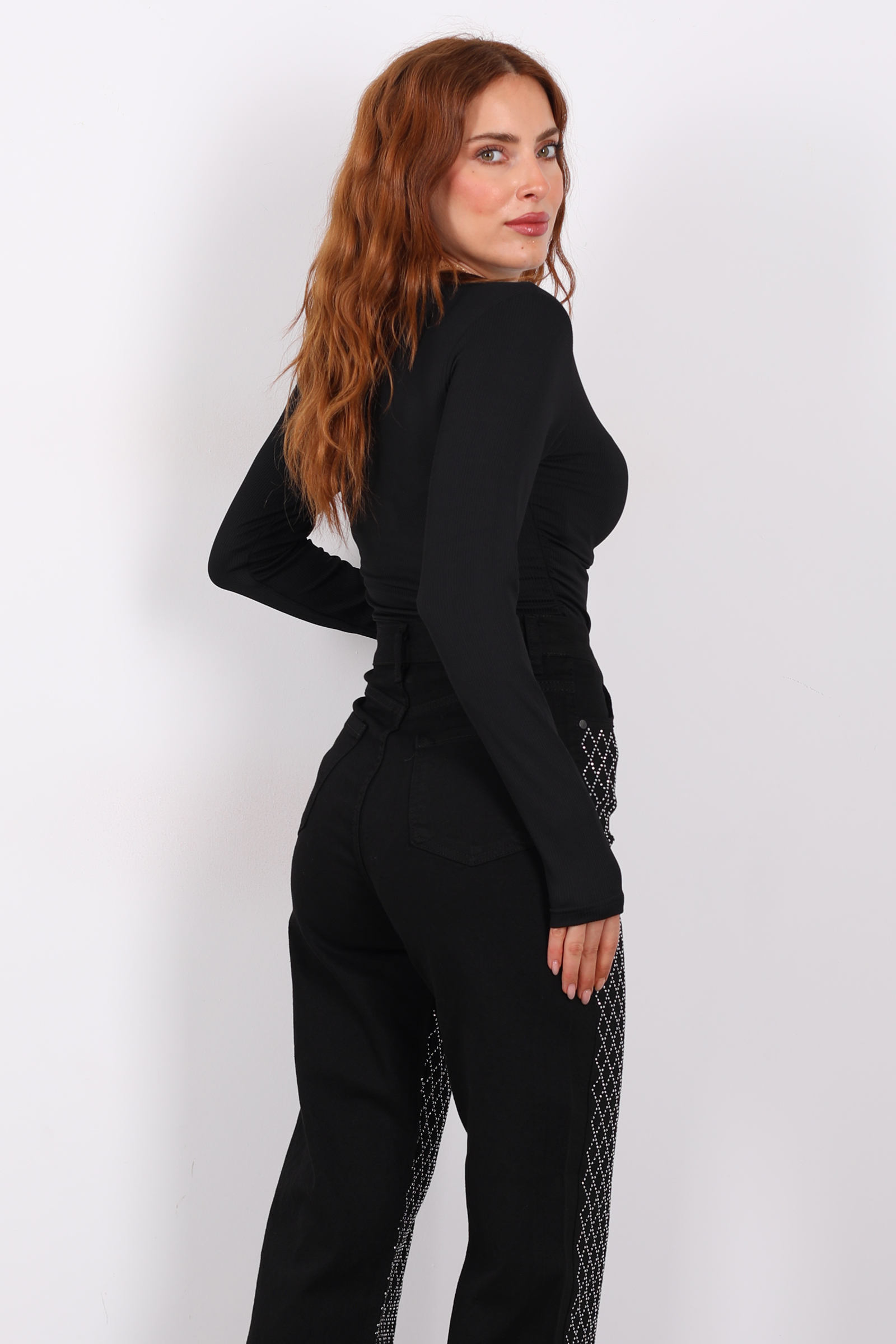Yanı Büzgülü Siyah Kadın Bluz