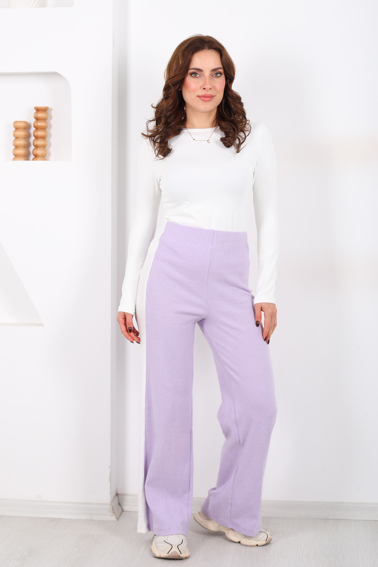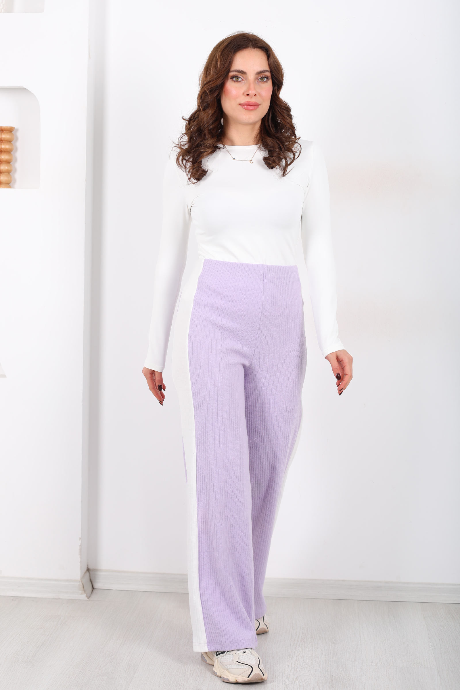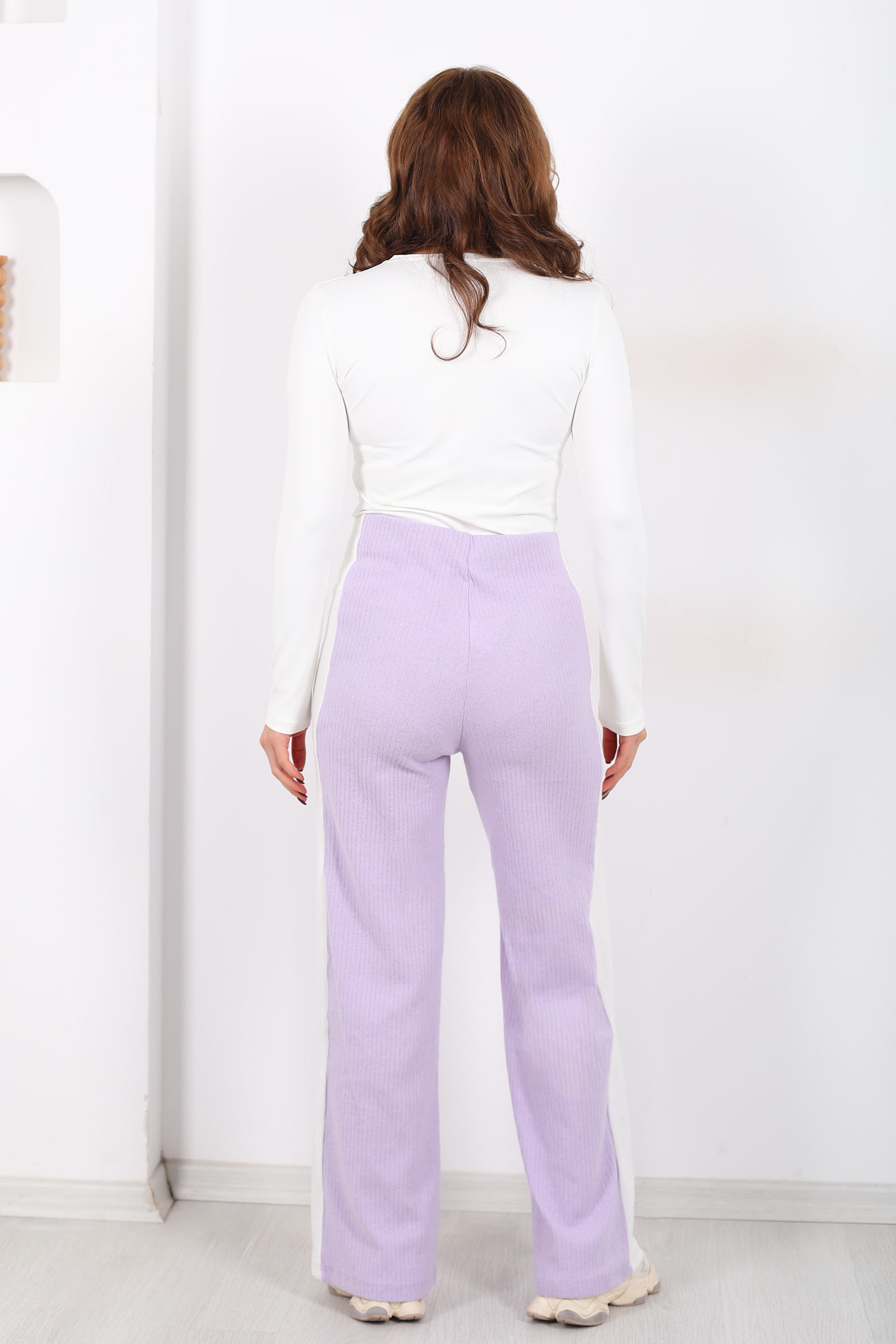Yanları Şeritli Bol Paça Lila Kadın Yumoş Pantolon