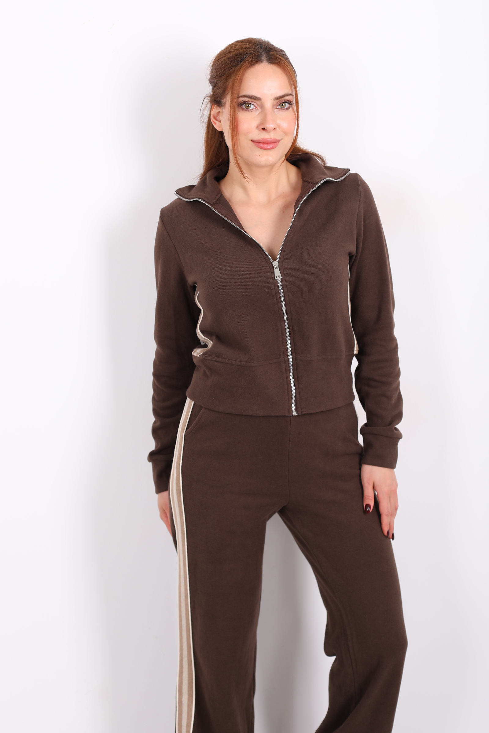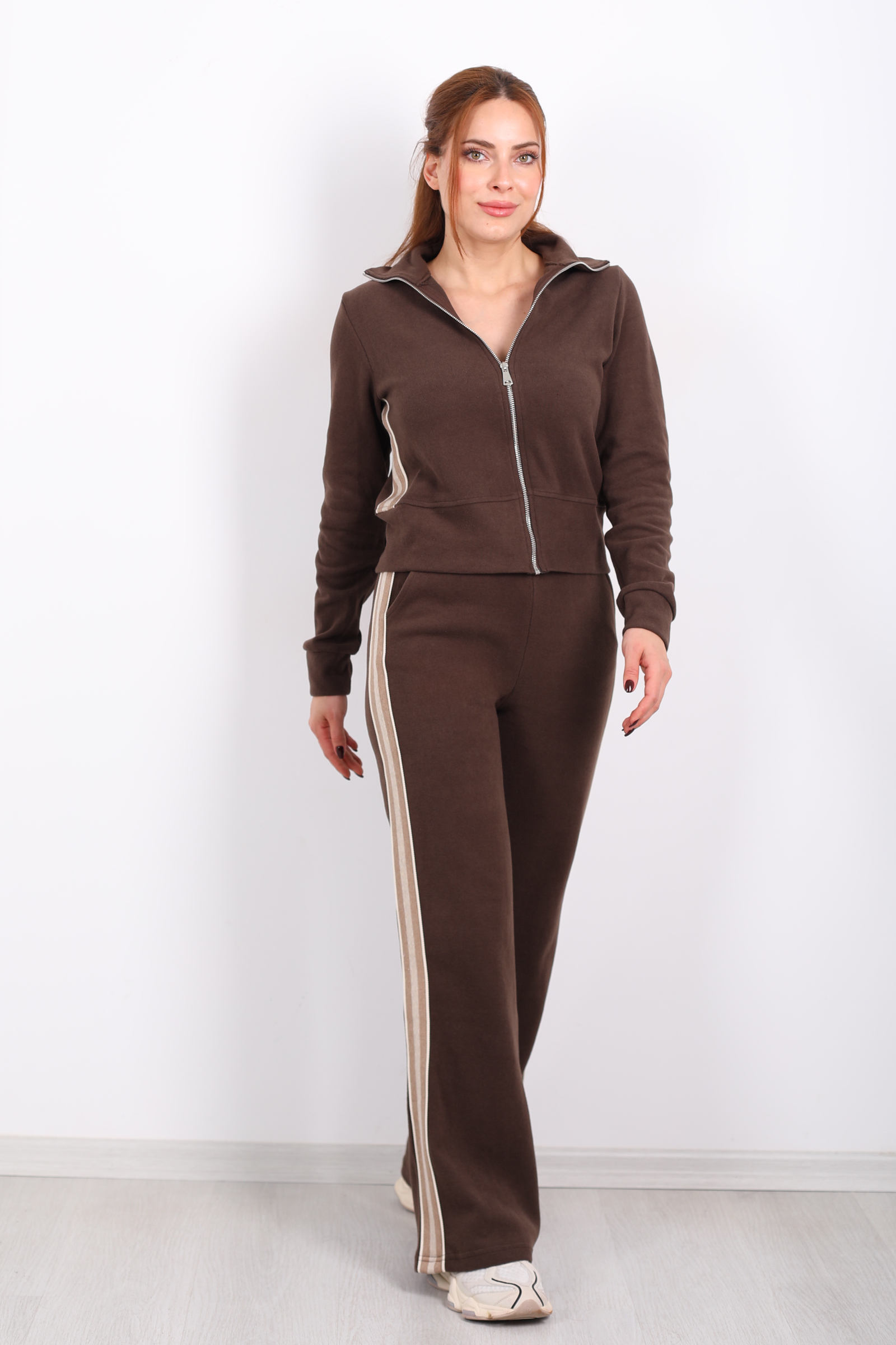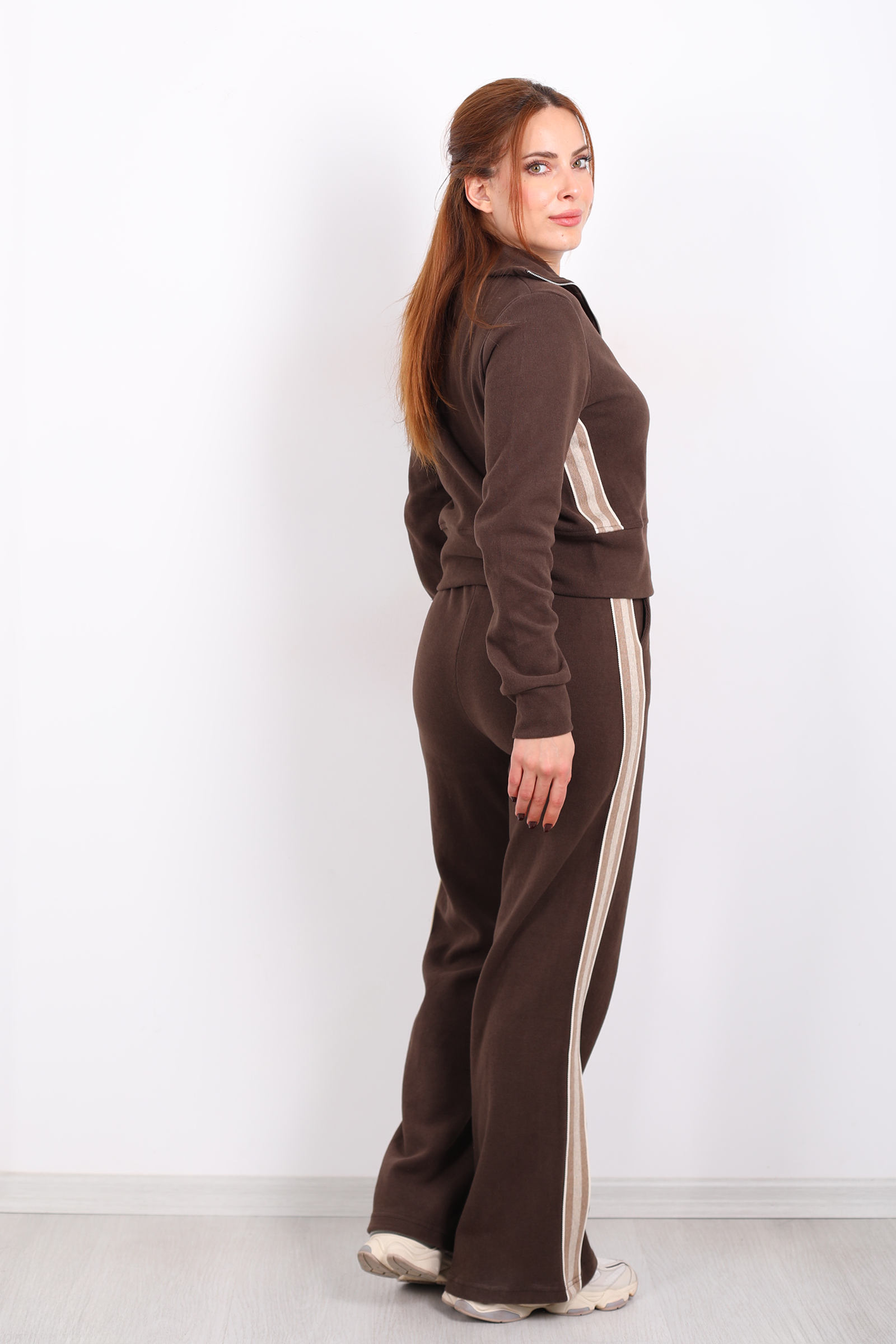 Yanları Şeritli Selanik Kahverengi Kadın Palazzo Takım