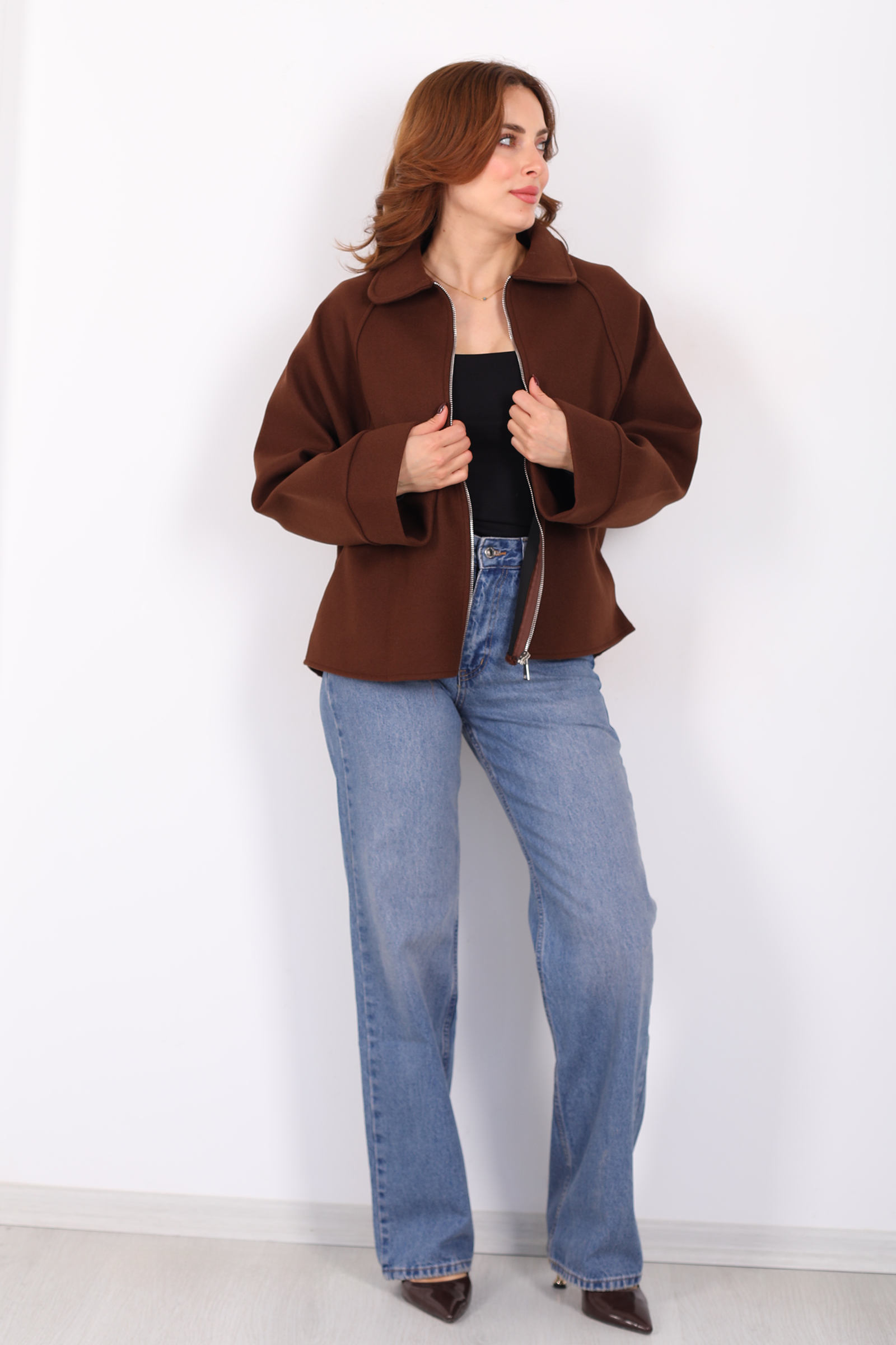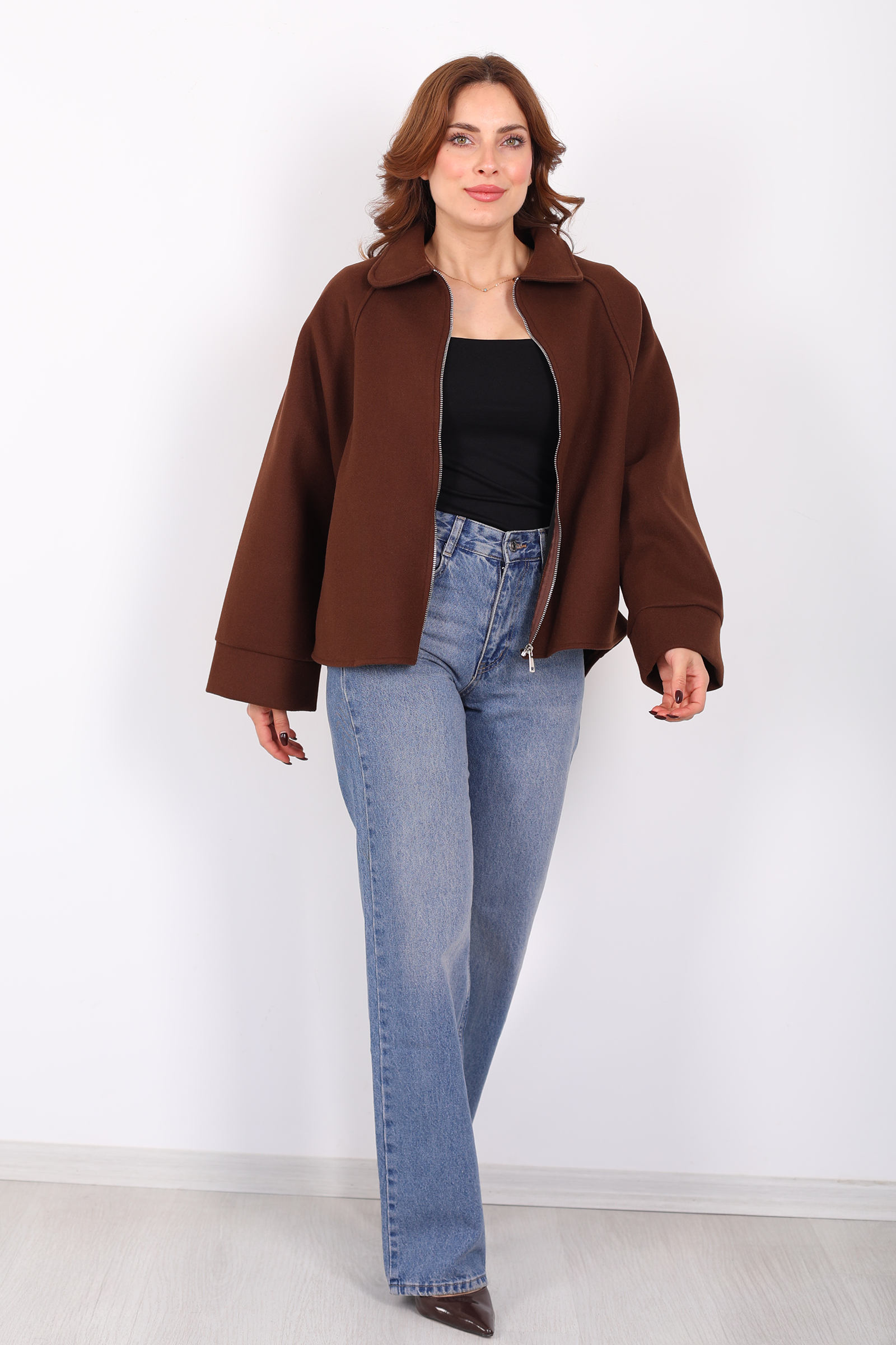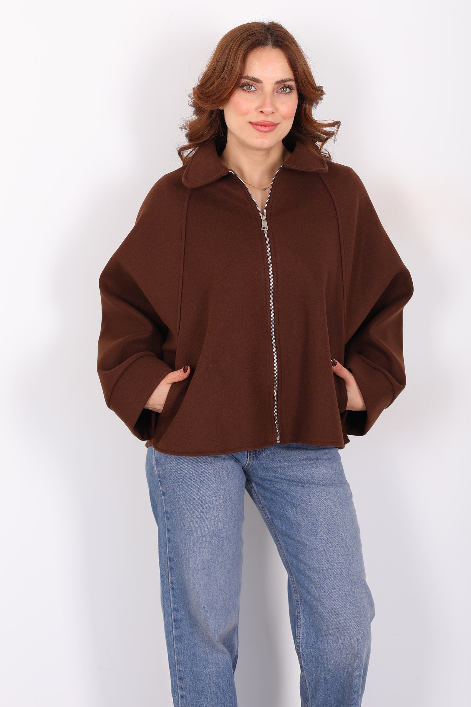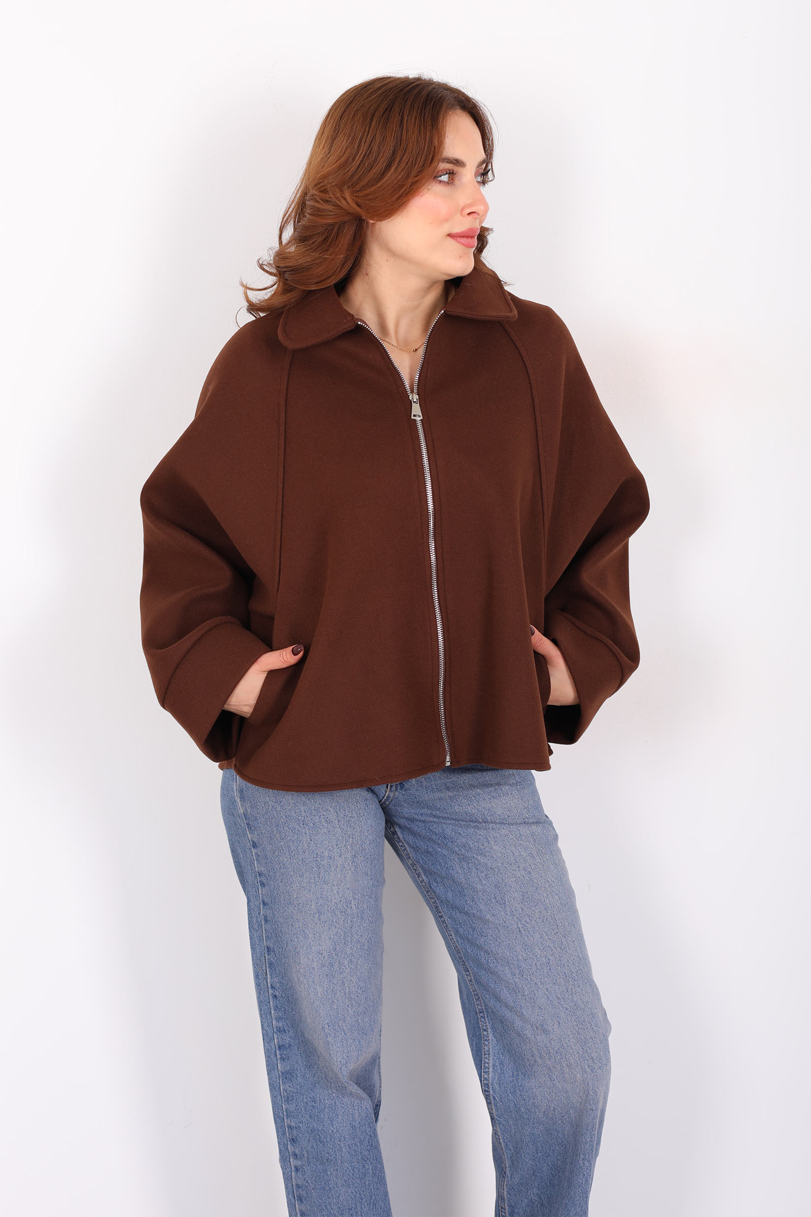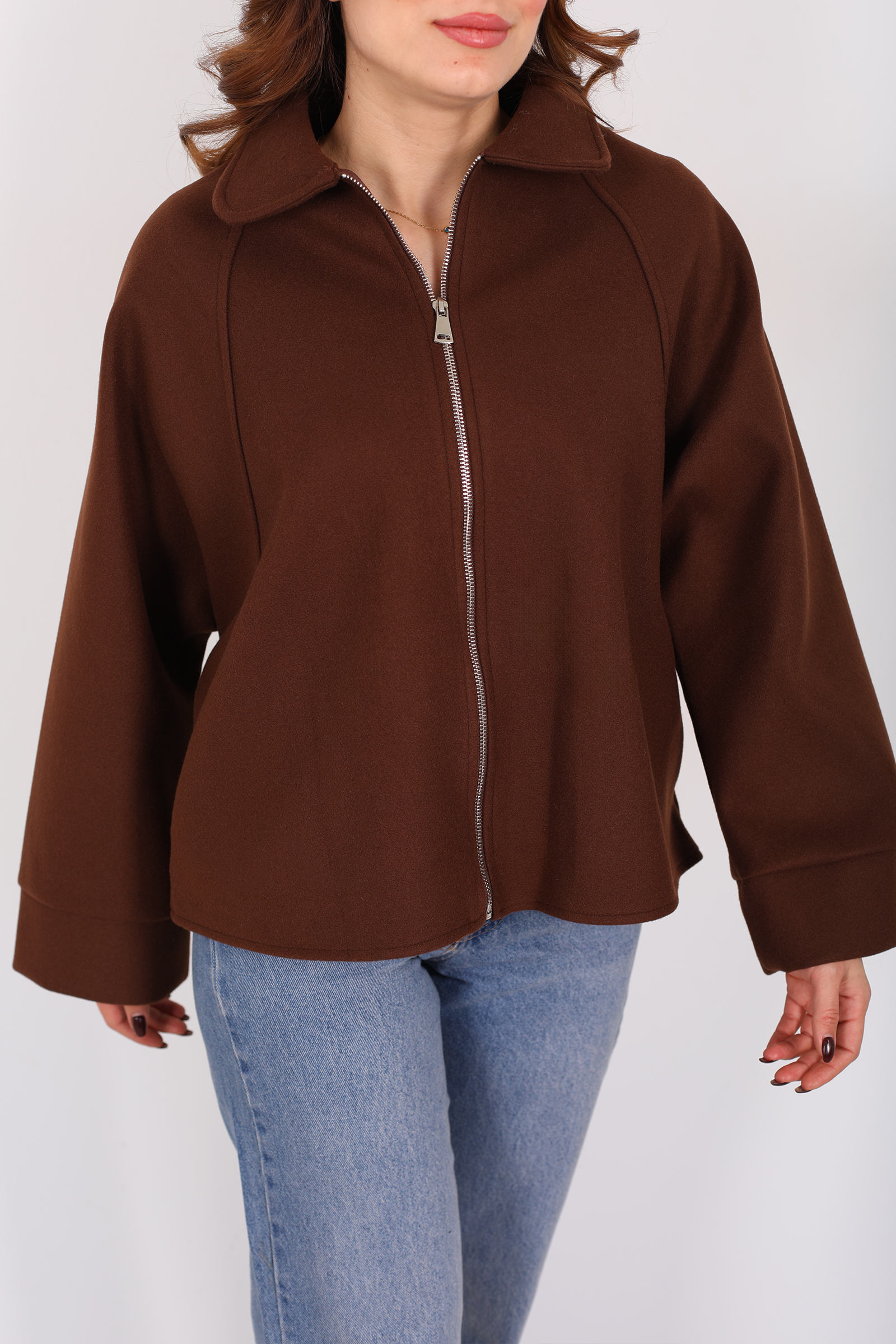 Kahverenginin sıcak tonuyla hayat bulan bu kaşe ceket, yarasa kol kesimiyle stilinize akıcı ve dinamik bir hava katıyor. Fermuar kapama, klasik dış giyim anlayışını güncel bir detayla buluştururken görünümünüzde sportif bir ritim oluşturur. Yumuşak kaşe dokusu soğuk günlerde ihtiyaç duyduğunuz sıcaklığı sağlar ve günlük kullanıma uyumlu konfor sunar. Bu ceket, jean’den kumaş pantolona kadar farklı alt giyimlerle dengeli bir uyum kurarak casual’dan smart casual’a pek çok kombinde yer alabilir. Sadelikten vazgeçmeyen ama detaylarla fark yaratmak isteyenler için ideal bir dış giyim parçası.