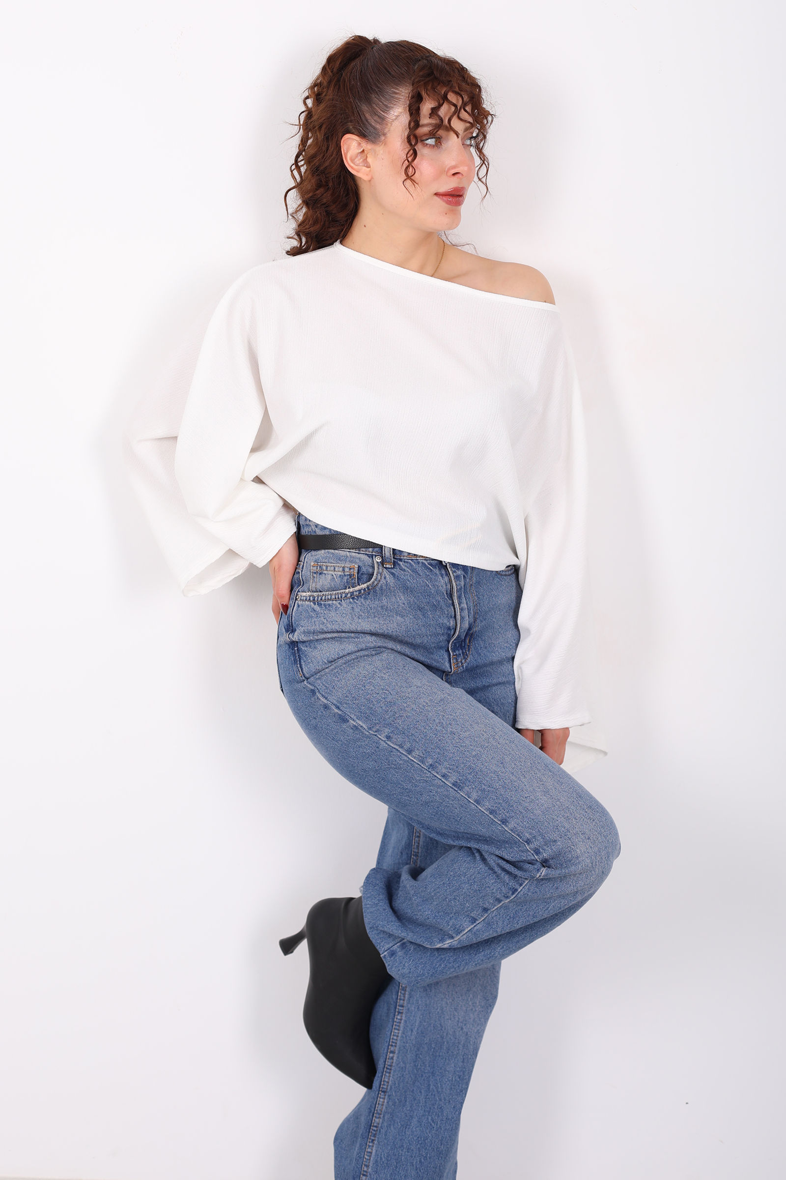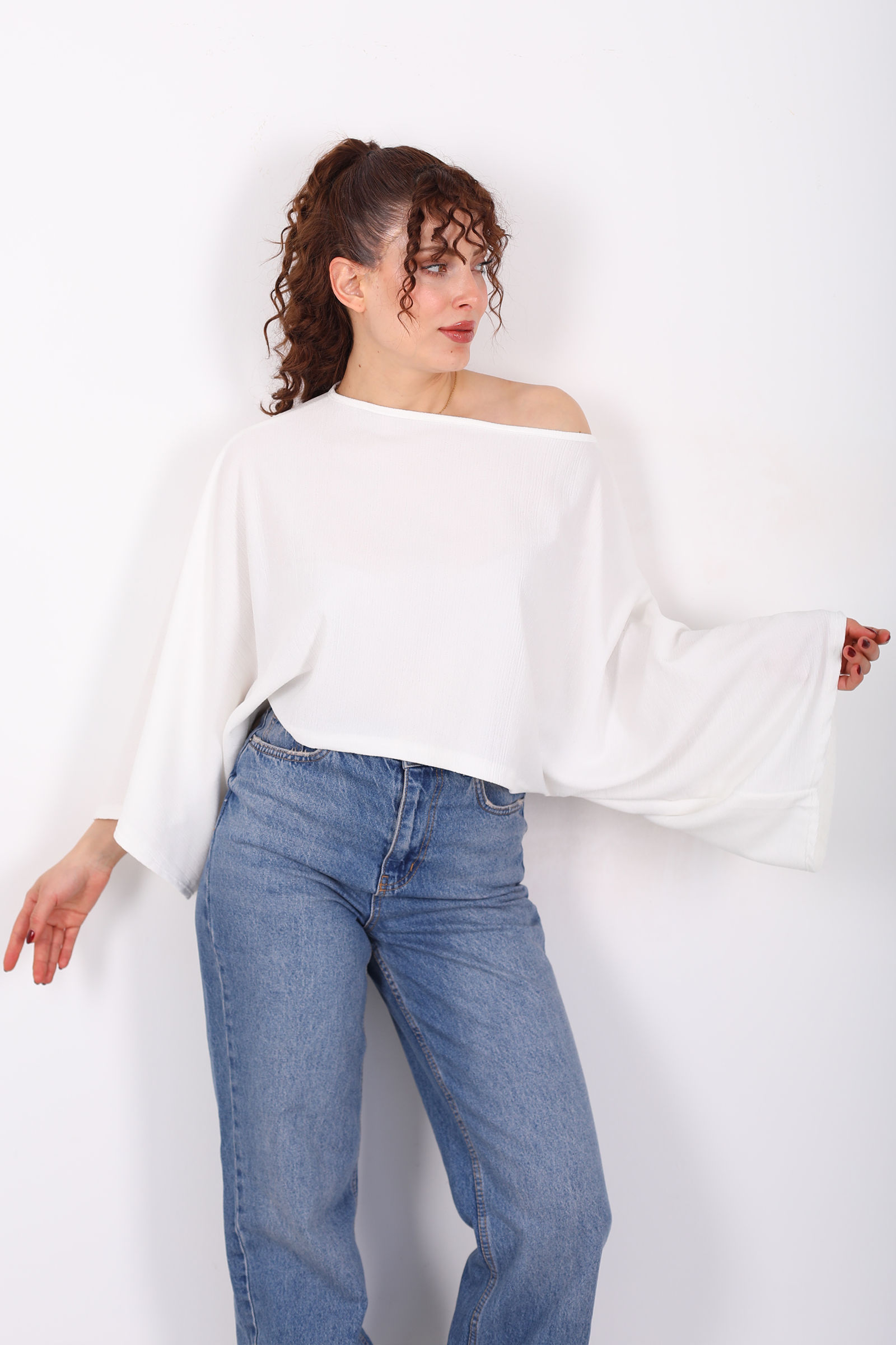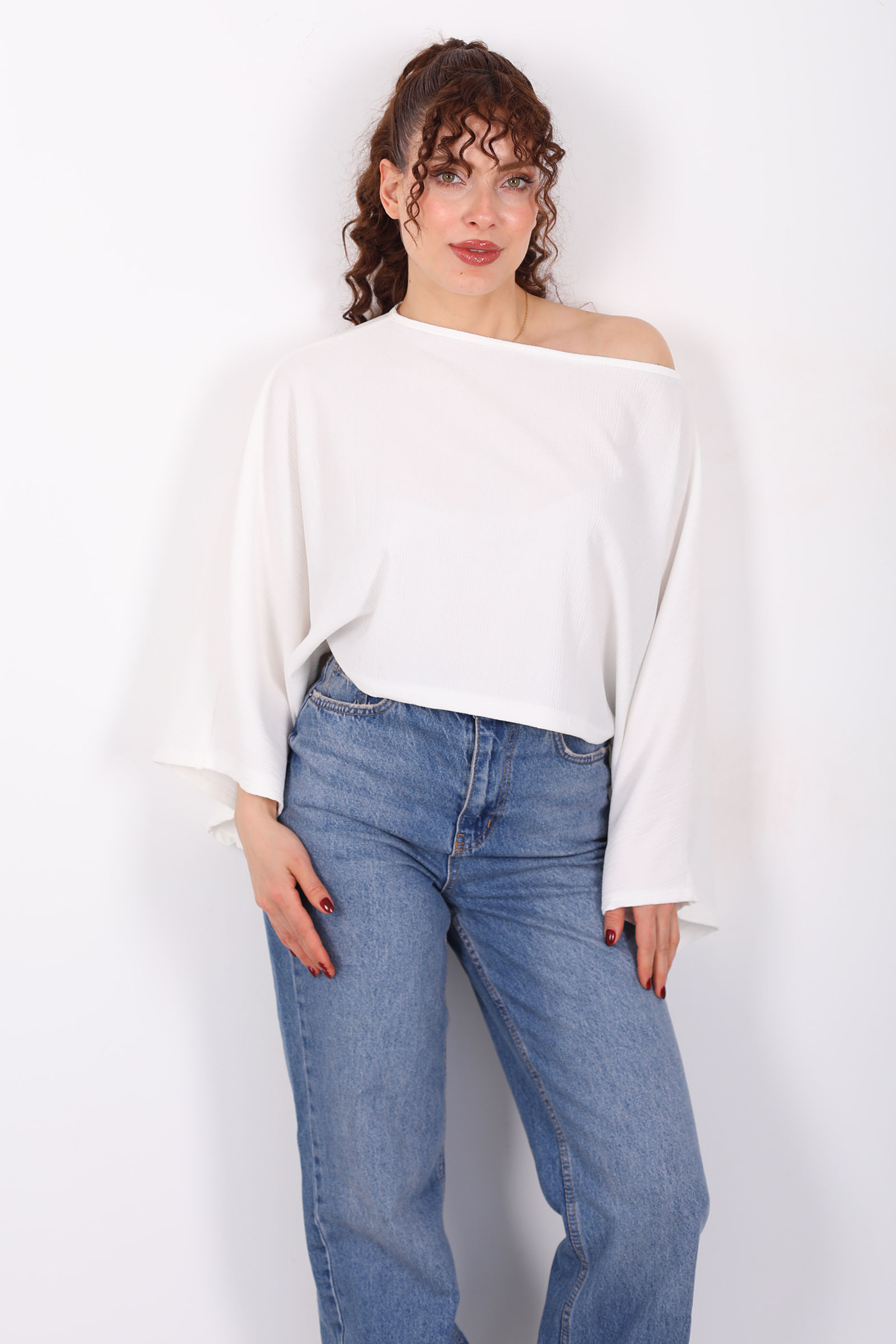 Yarasa Kol Ribana Beyaz Kadın Bluz