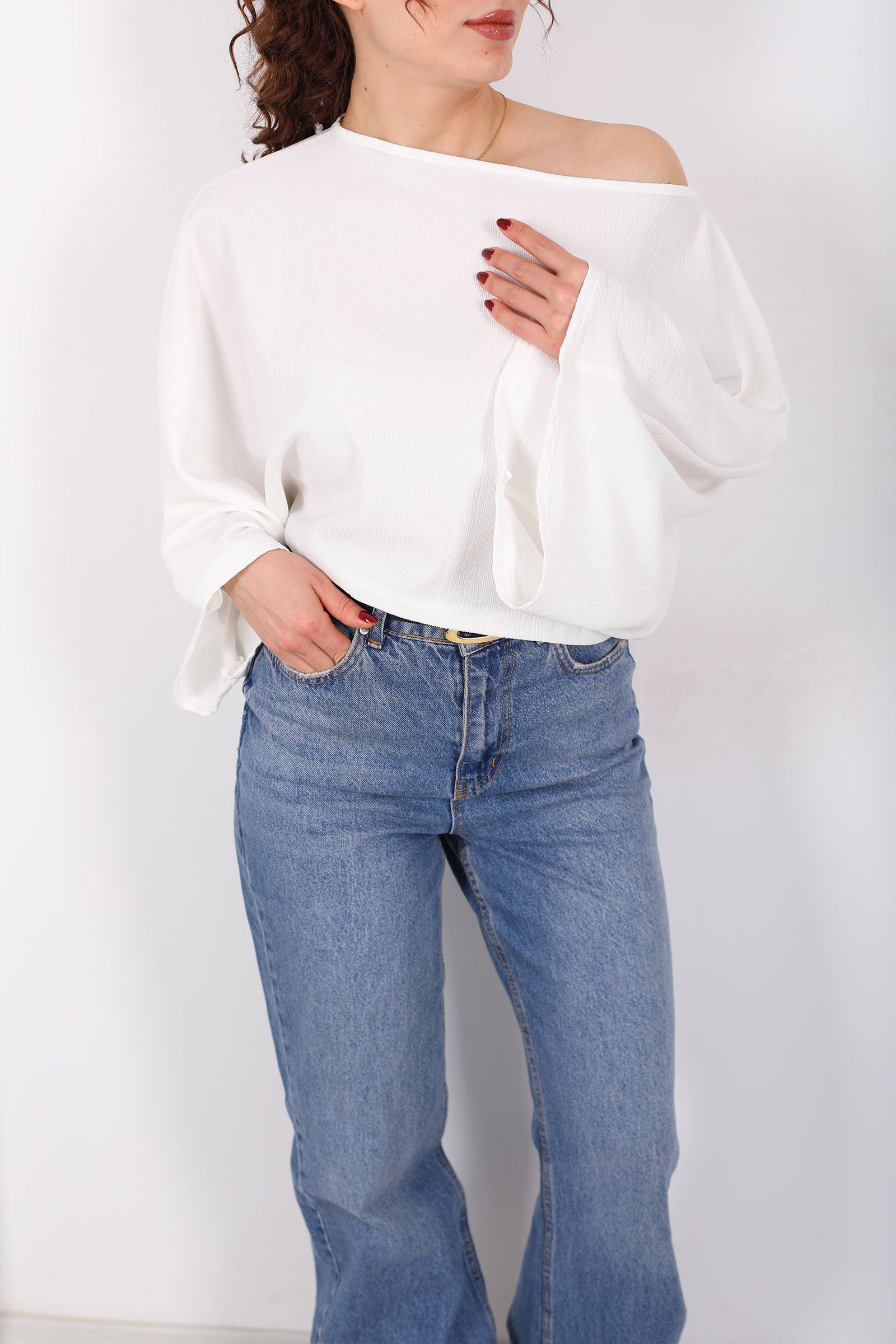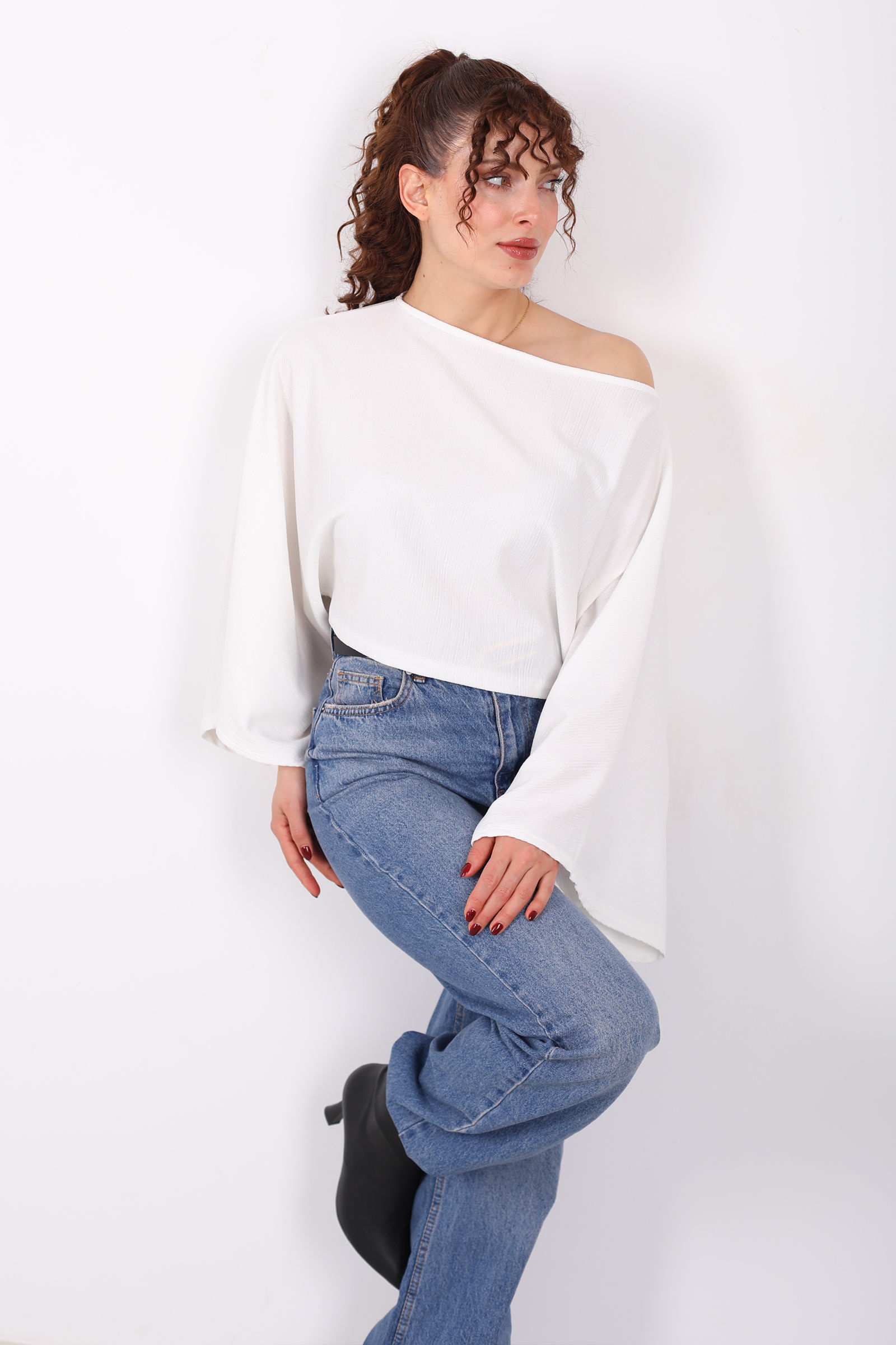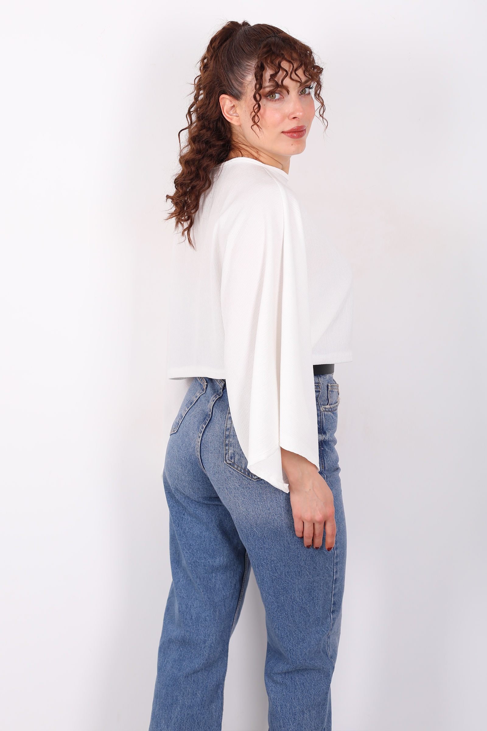 Yarasa Kol Ribana Beyaz Kadın Bluz