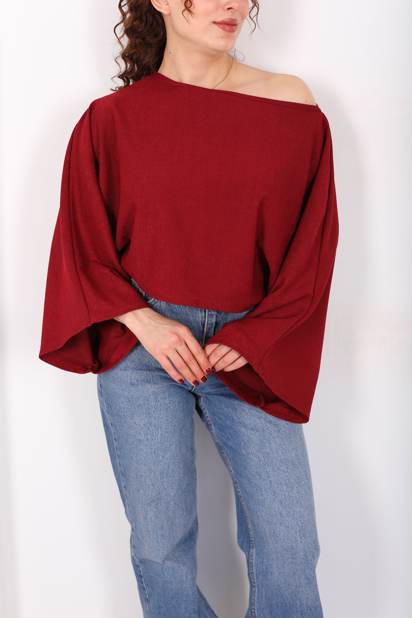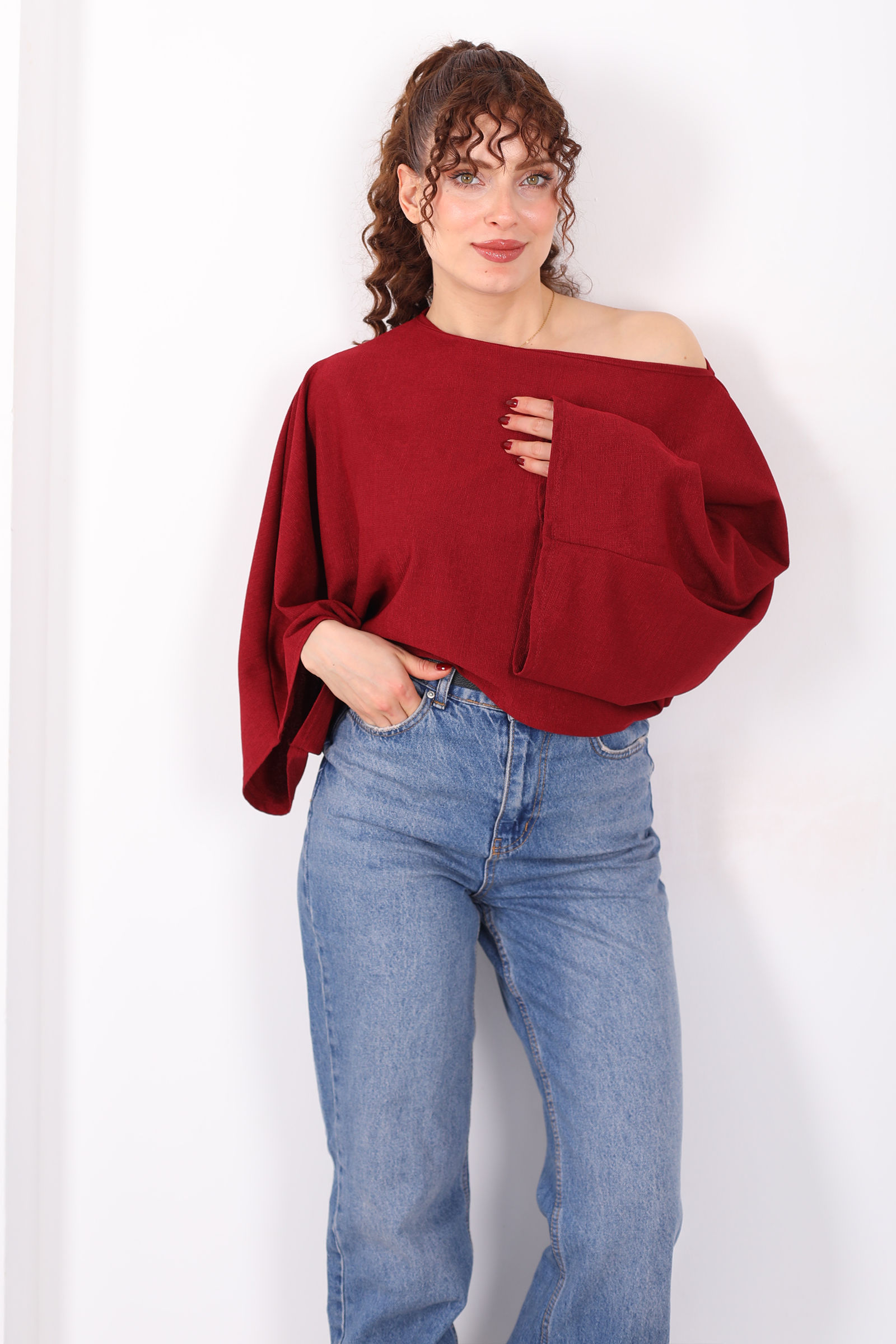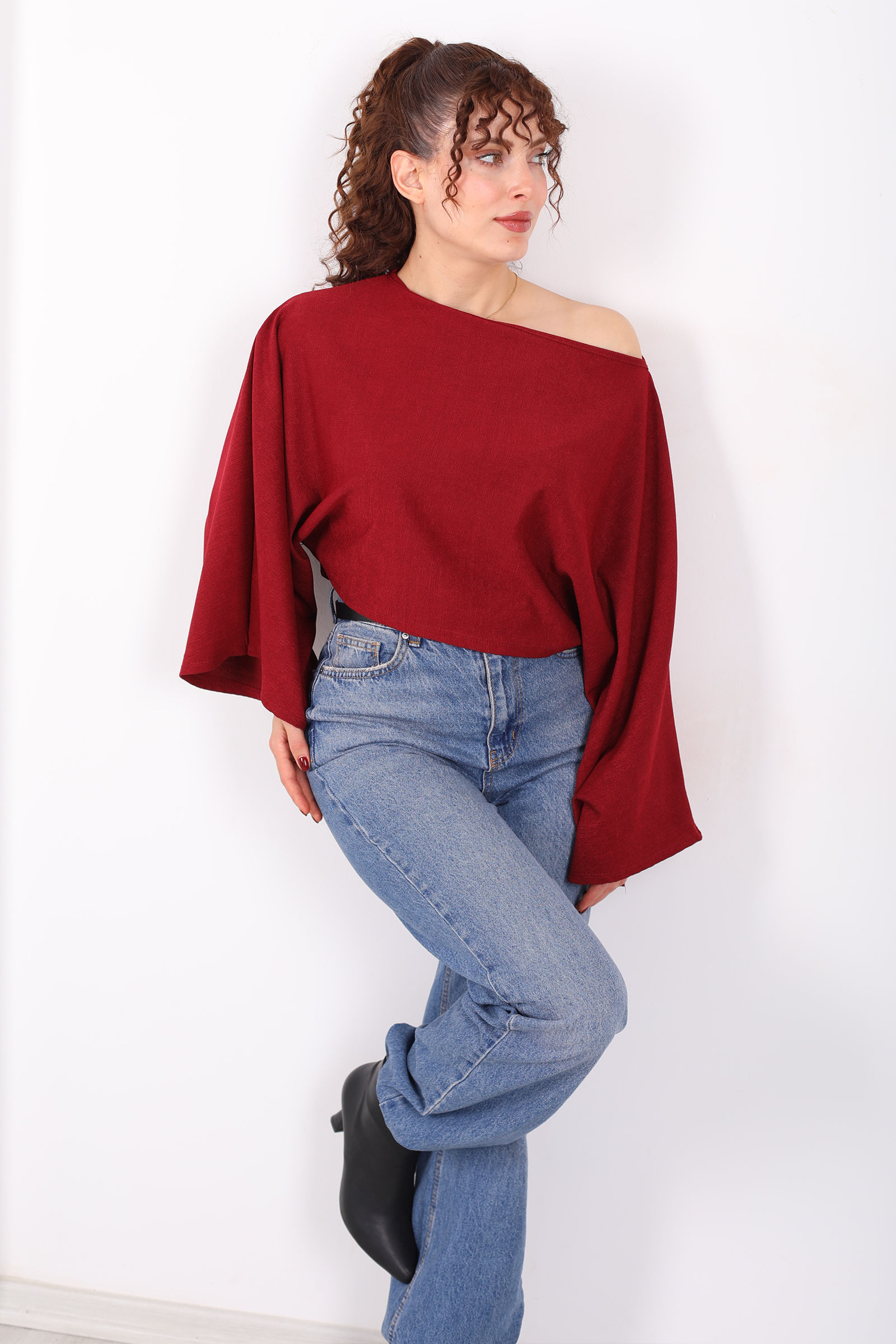 Yarasa Kol Ribana Bordo Kadın Bluz