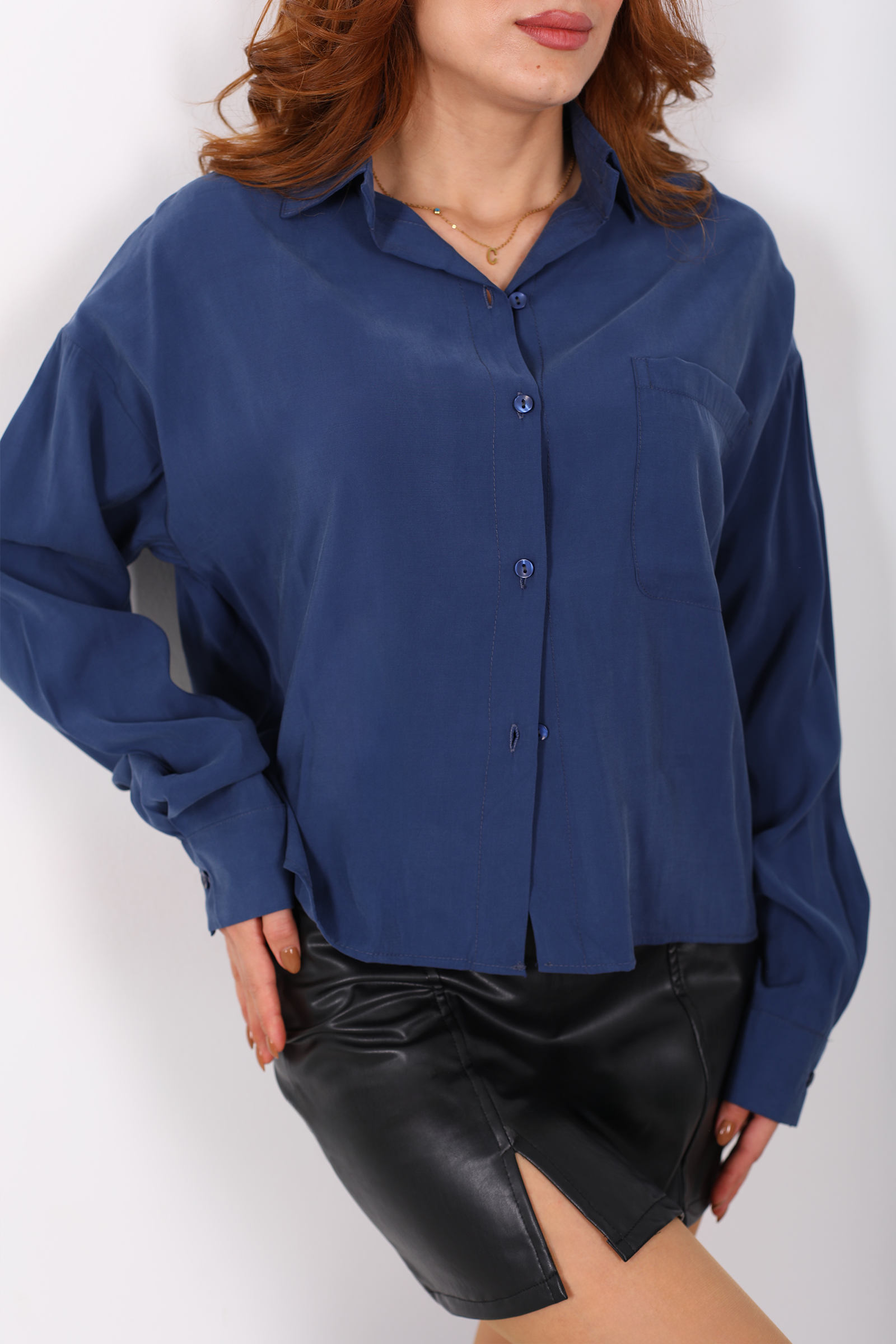 Yarasa Kol Tek Cepli Lacivert Kadın Gömlek