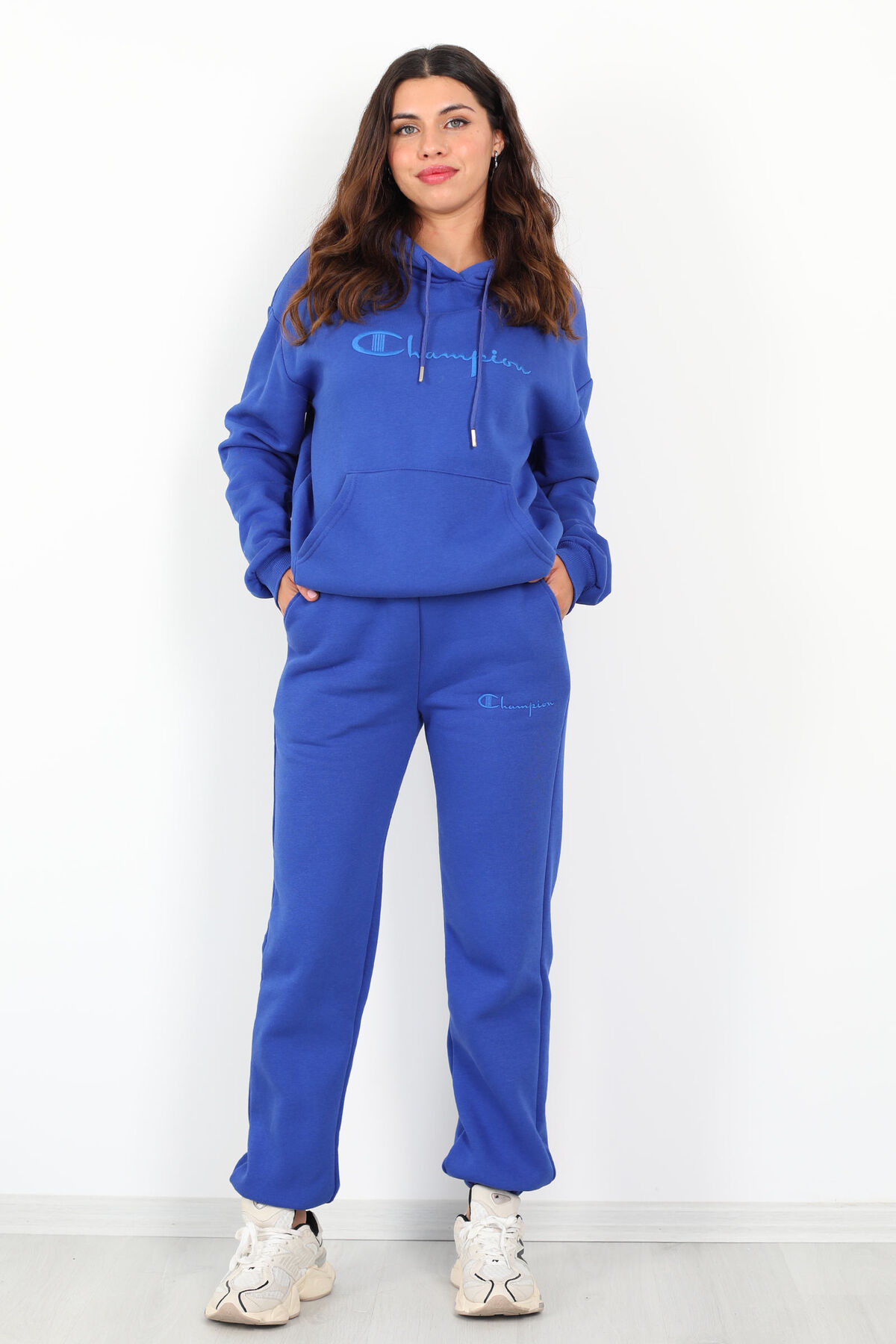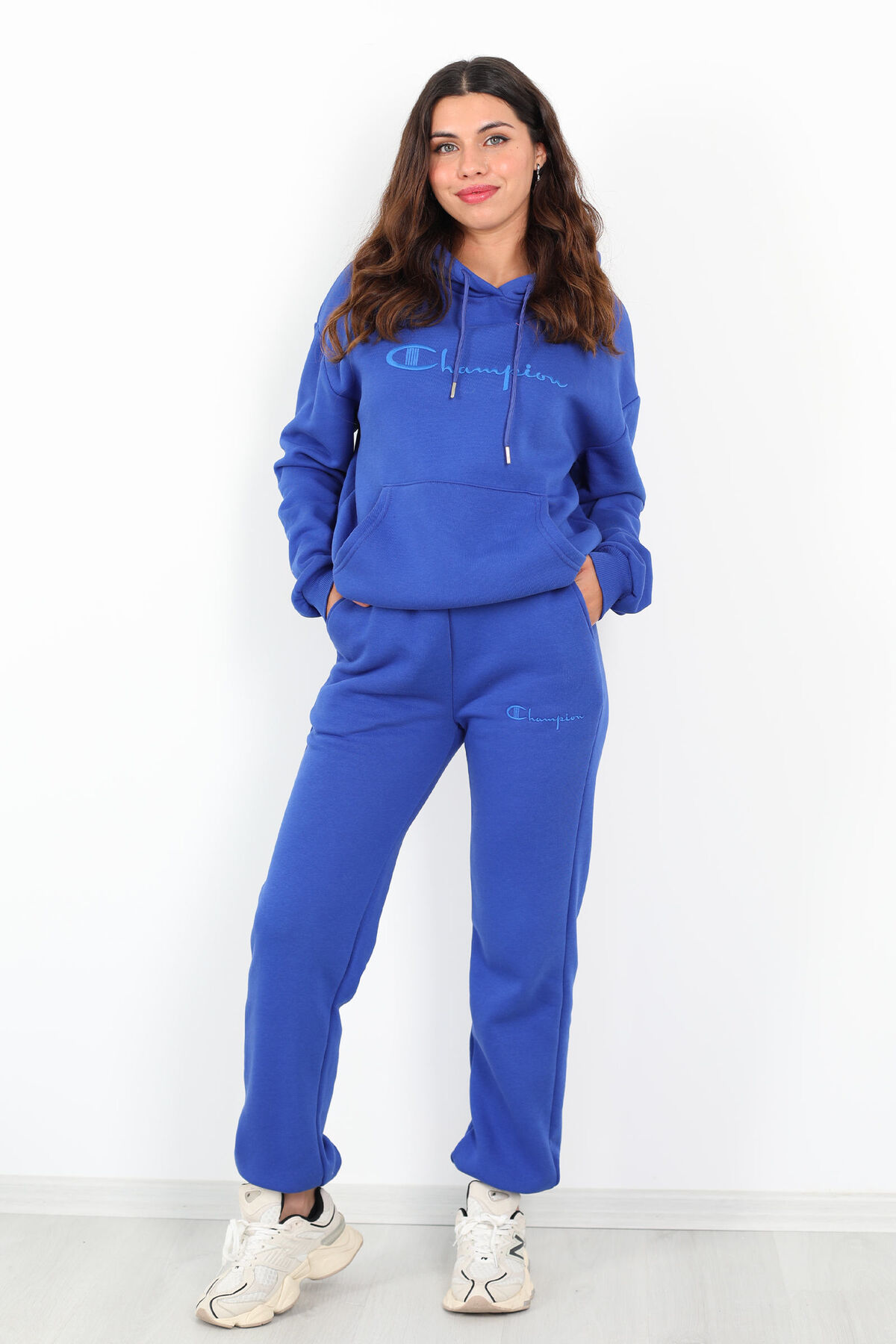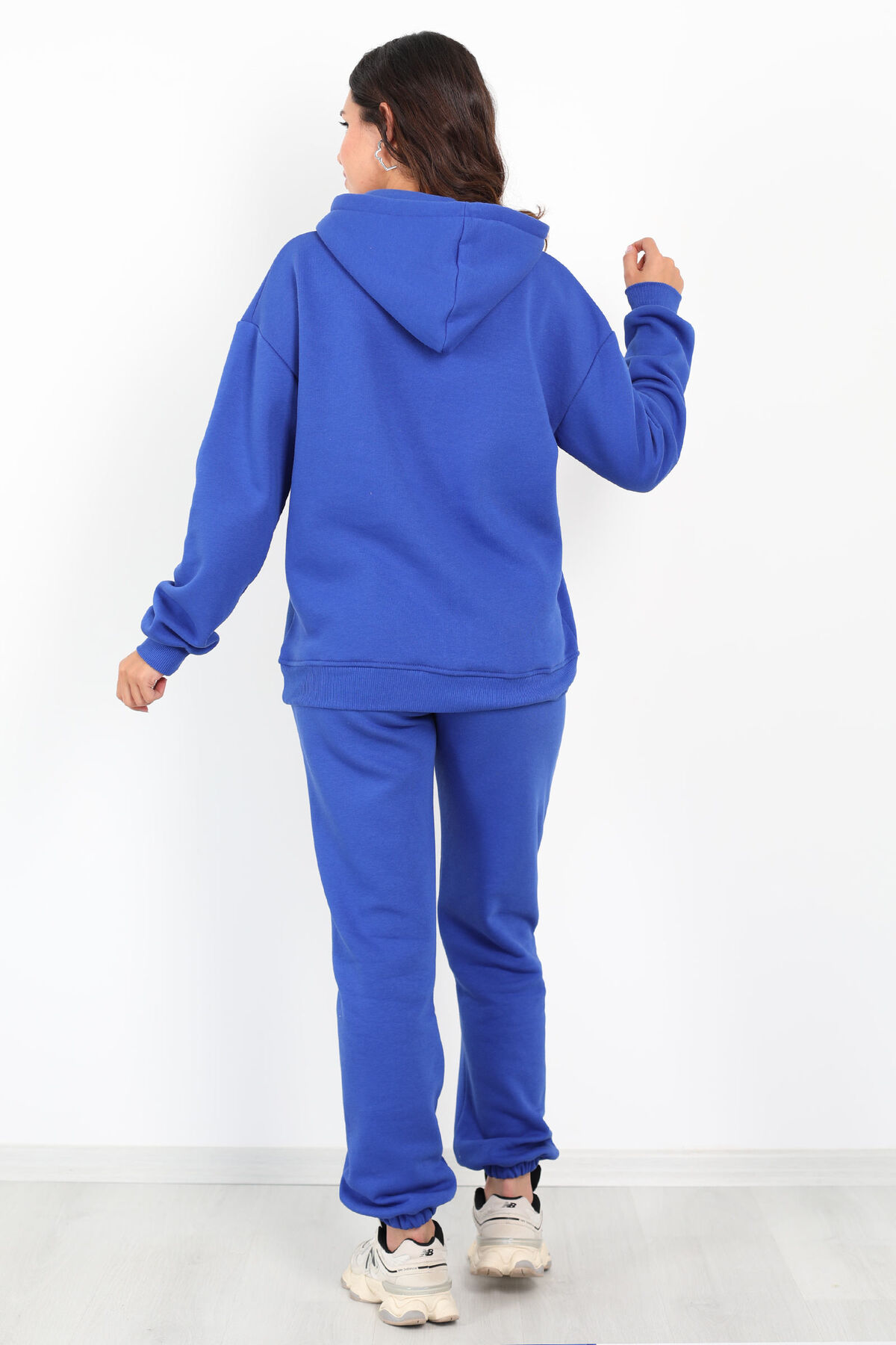 Saks mavisinin canlı tonuyla stilini vurgulamak isteyenler için ideal bir seçenek: Yazı nakışlı, kanguru cepli ve üç iplik kumaşıyla bu eşofman takımı, hem şıklığı hem de rahatlığı bir arada sunuyor. Soğuk günlerde sıcak tutarken, günlük kombinlerinde fark yaratmanı sağlıyor. Saks mavisinin enerjik tonu; yazı nakış detayları ve kanguru cepleriyle modern bir dokunuş.